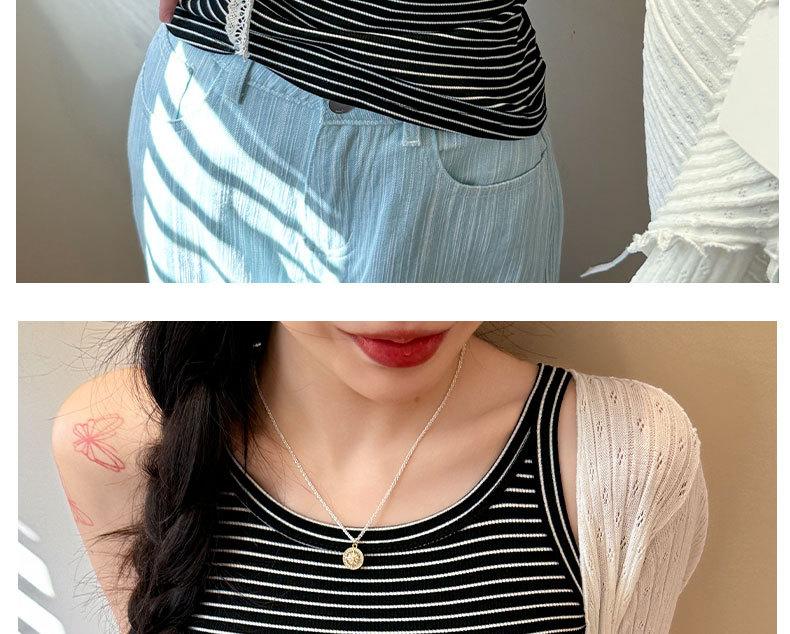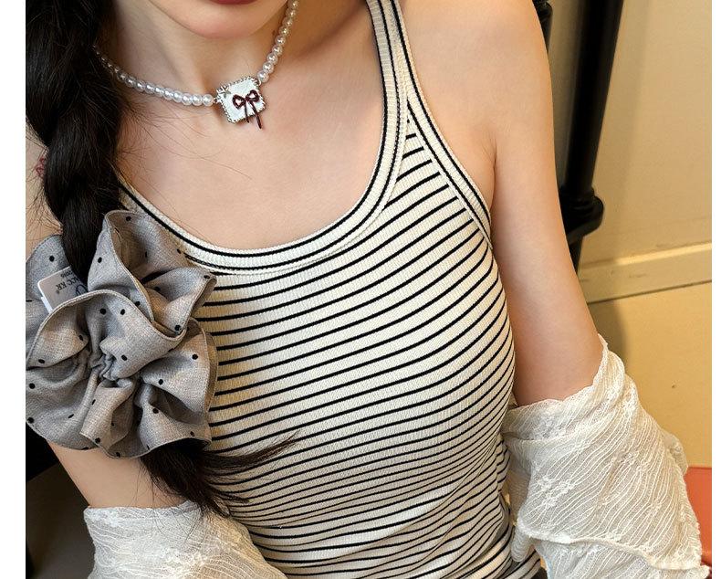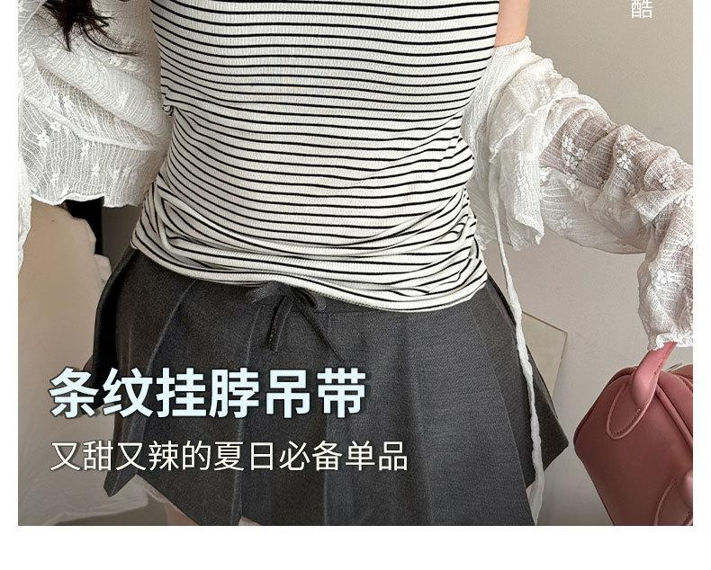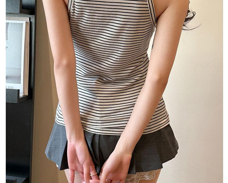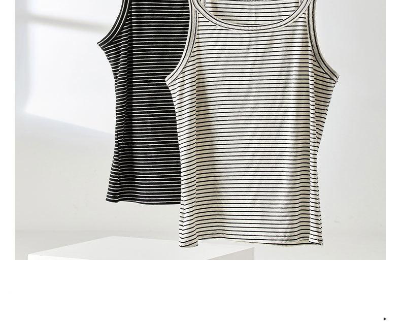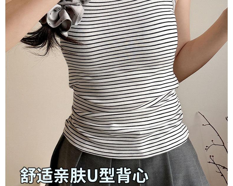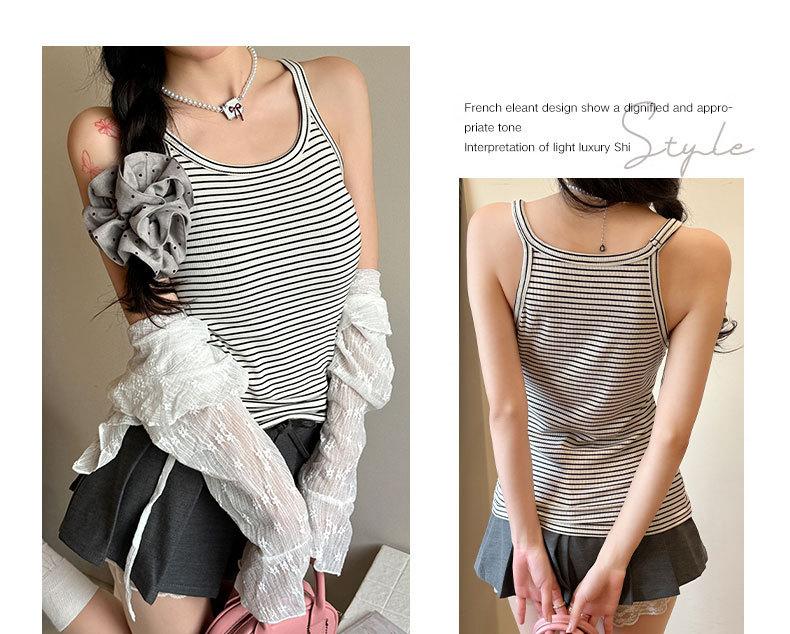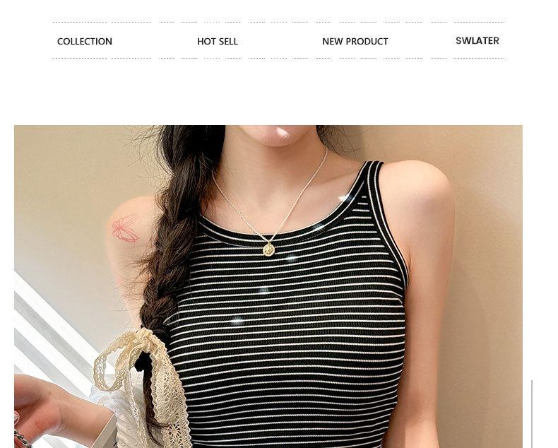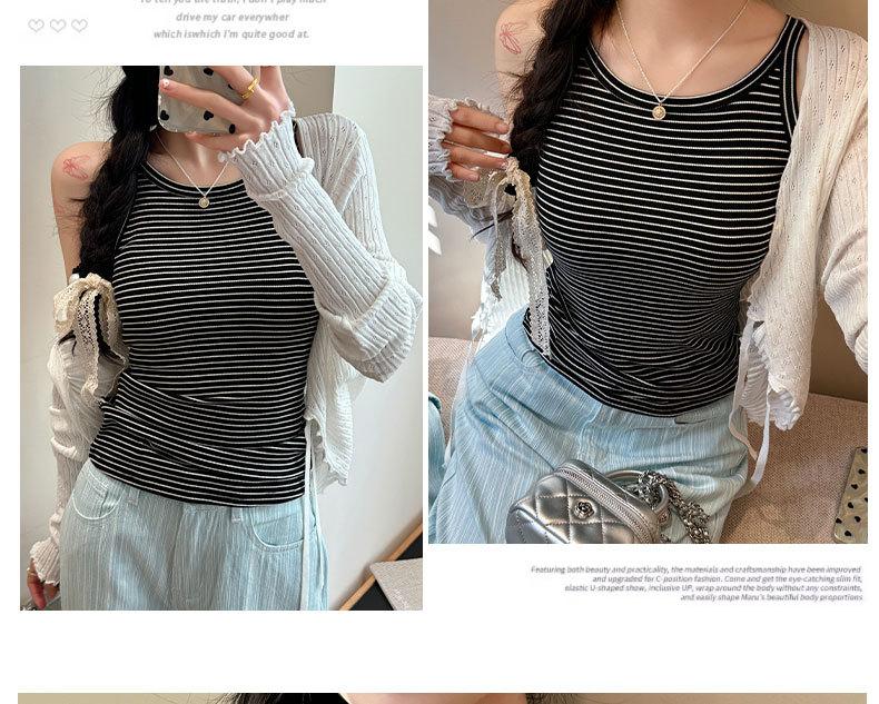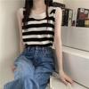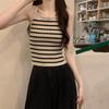 Camisola a Rayas para Mujer Verano Nuevo Diseño Ajuste Slim Sin Mangas Interior Fondo Cuello Redondo Top