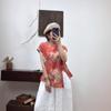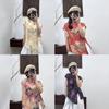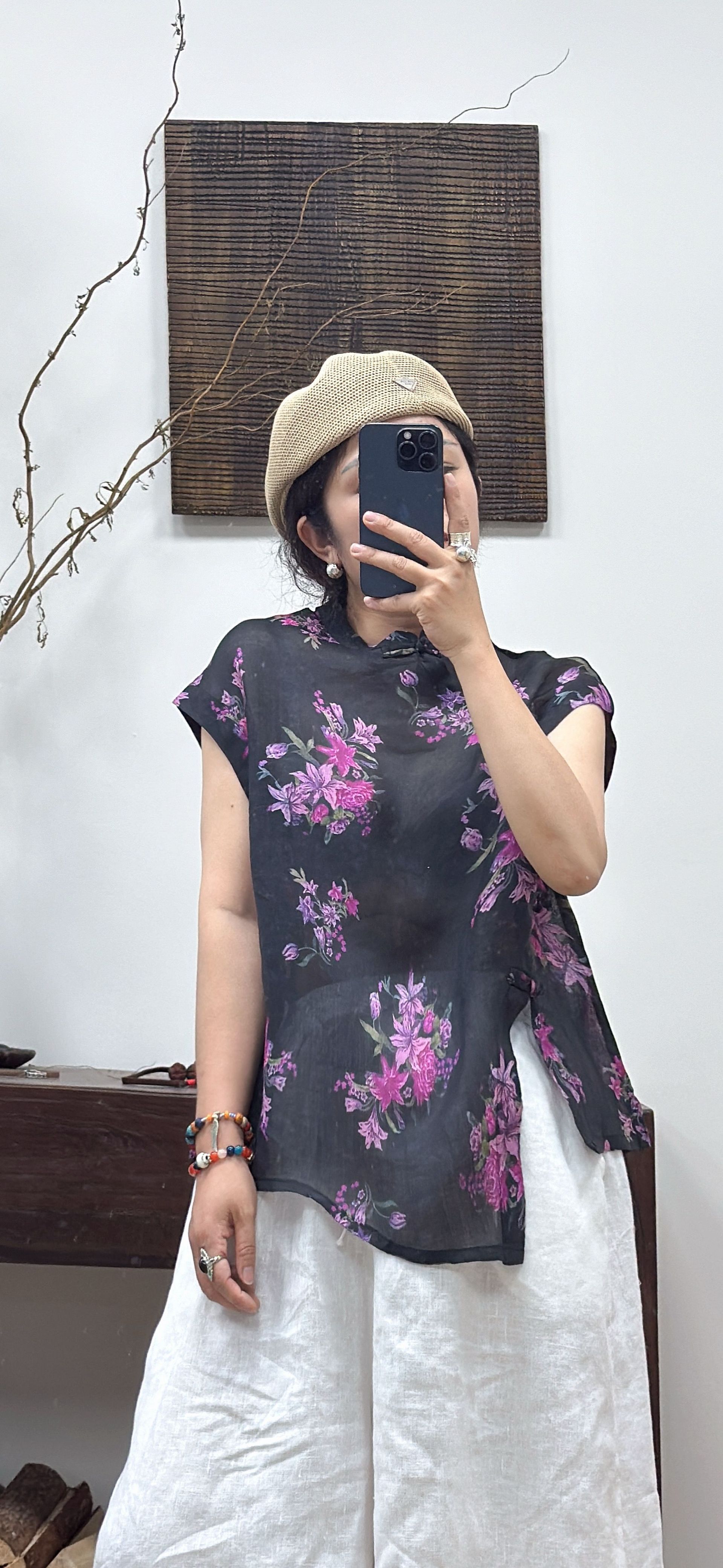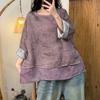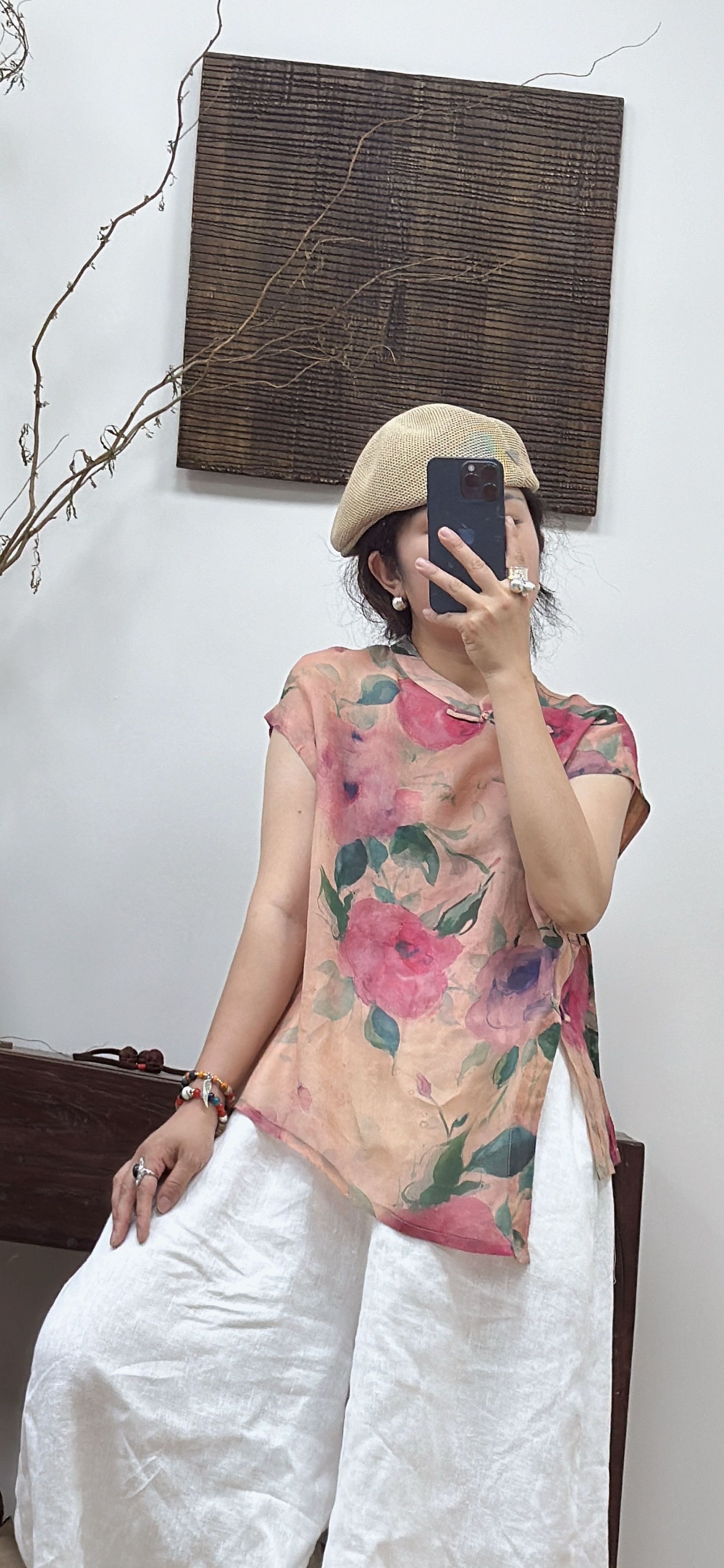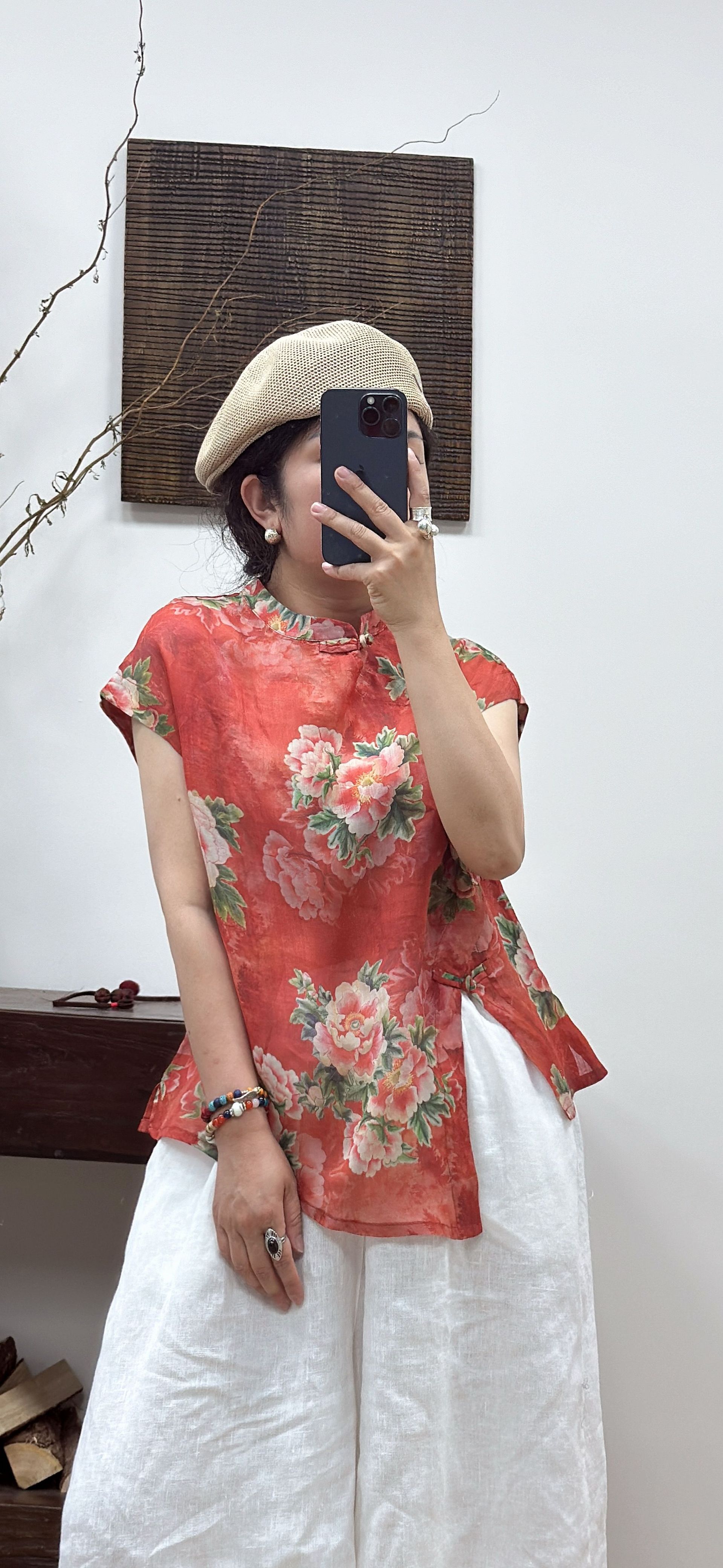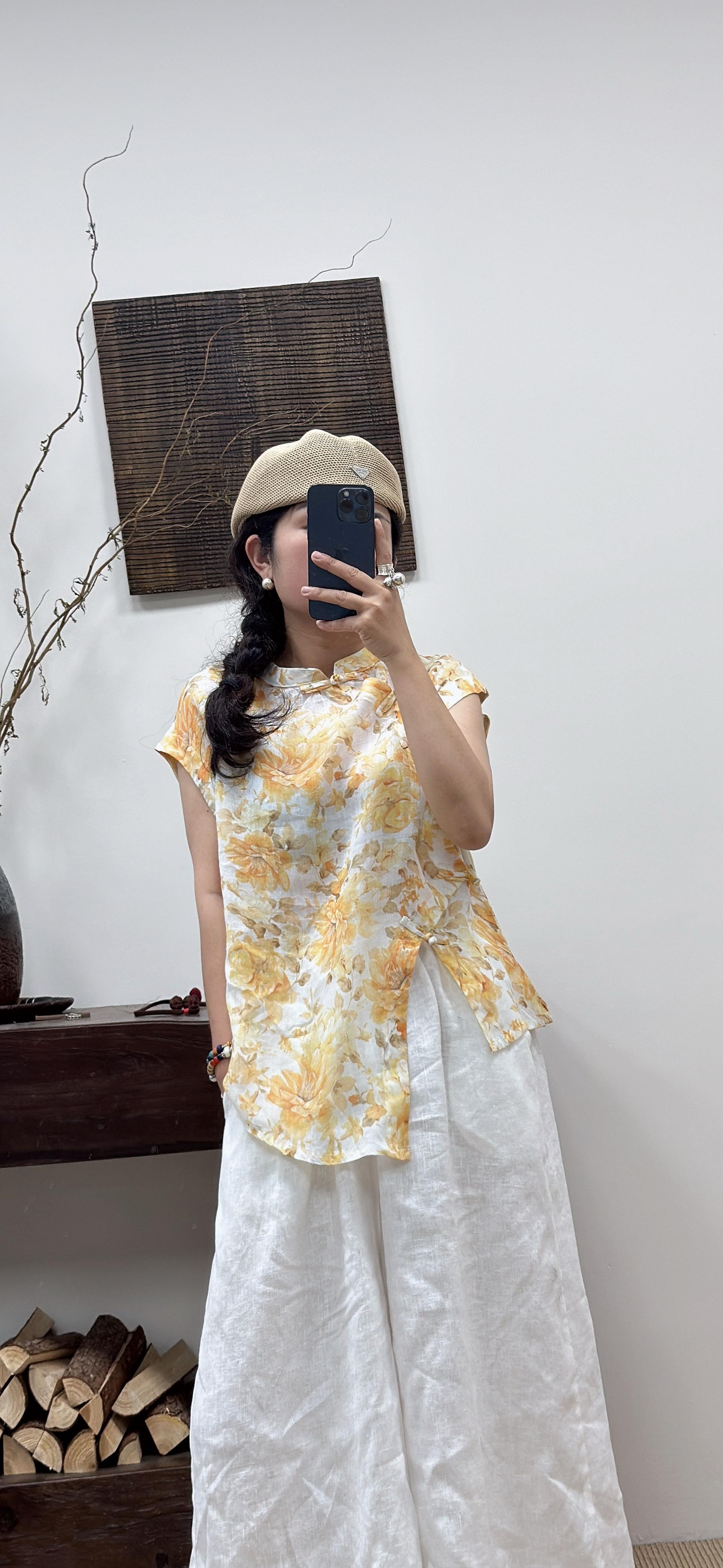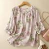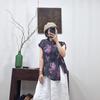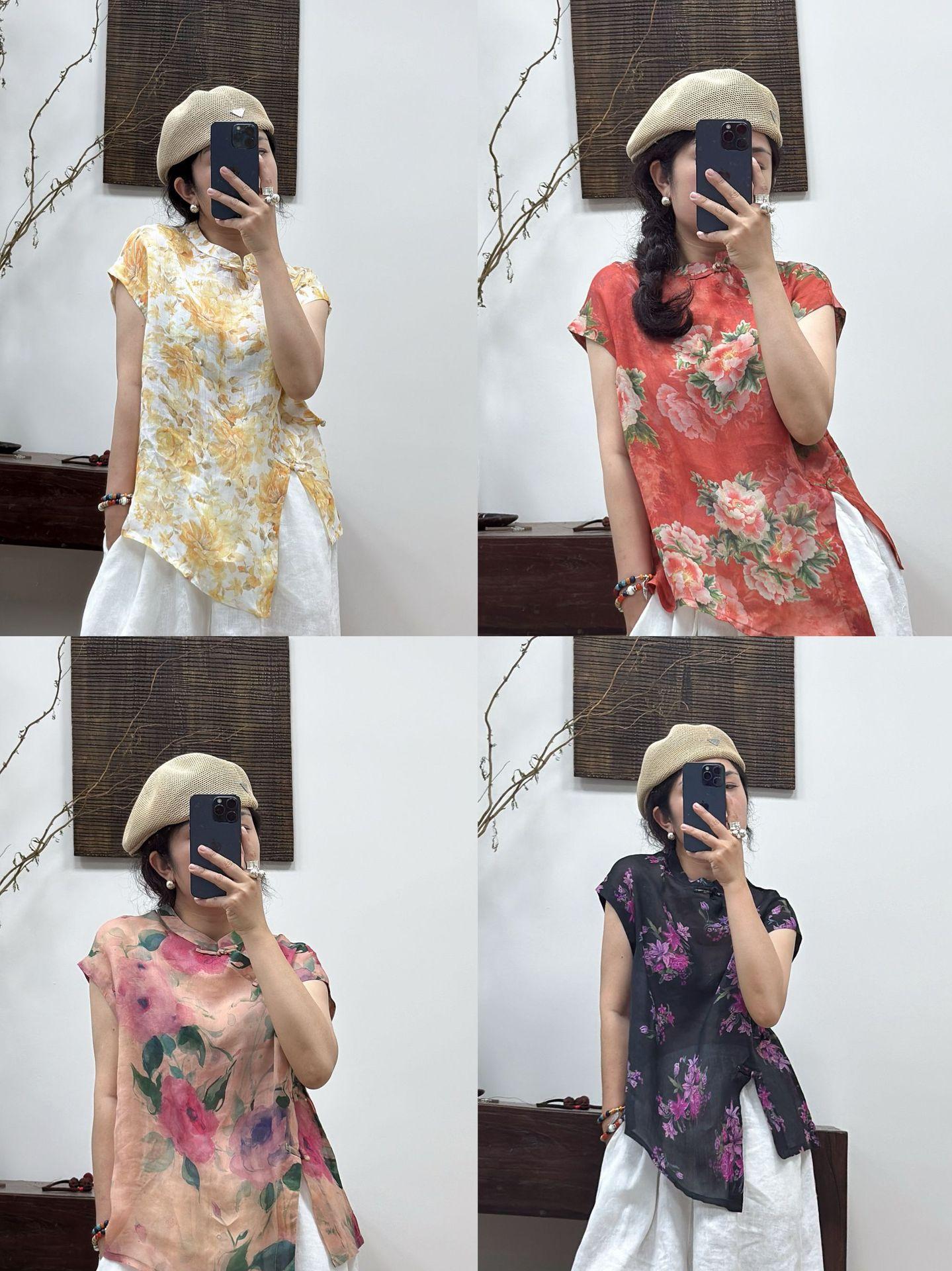 2025 Nuevo Estilo de Verano Estilo Artístico Cuello Mao Camisa de Ramio Asimétrica Holgada de Manga Corta