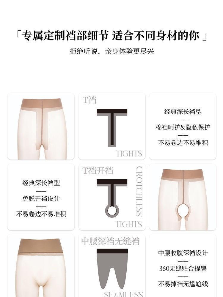 Medias sin costuras en la entrepierna 360 "Sedosas 0.01" Medias sin costuras de cintura alta Medias de seda negra de talla grande para mujer