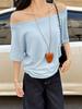 Blusa Azul de Hombros Descubiertos de Manga Corta para Mujer Verano 2025 Nuevo Abrigo Suelto Sexy de Media Manga Camiseta Algodón Puro Top de un Hombro