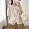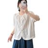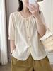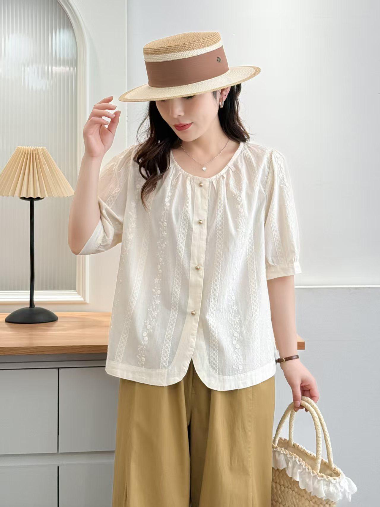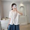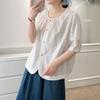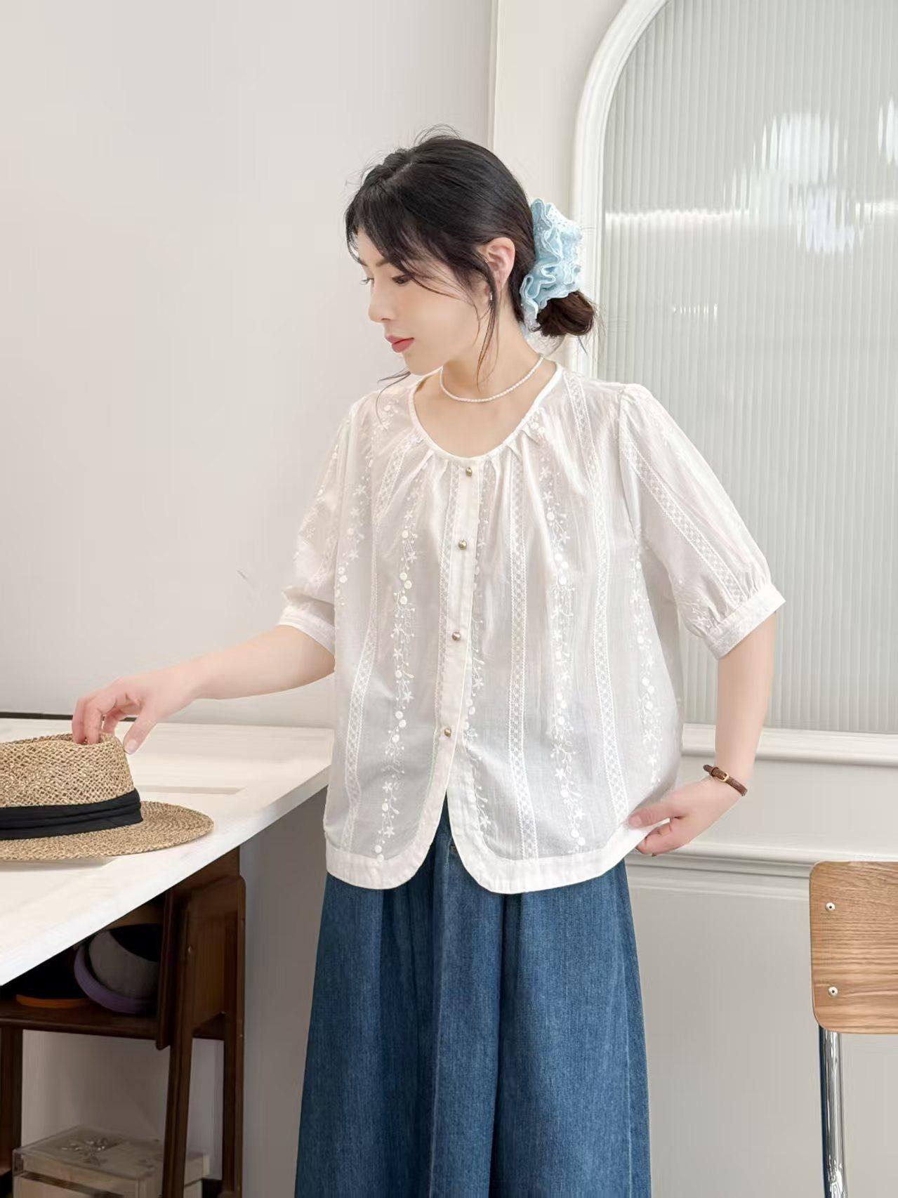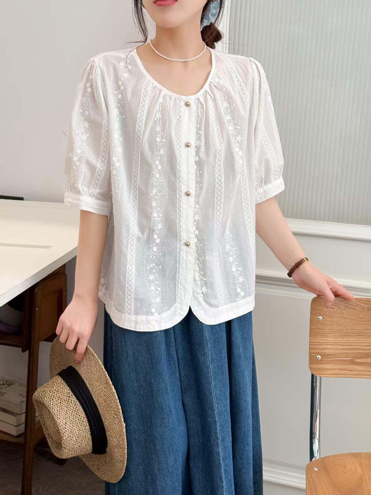 Camisa Bordada Diseño para Mujer Nicho Top de Manga Corta Verano 2025 Nuevo Coreano Cuello Redondo Holgada Ajustada