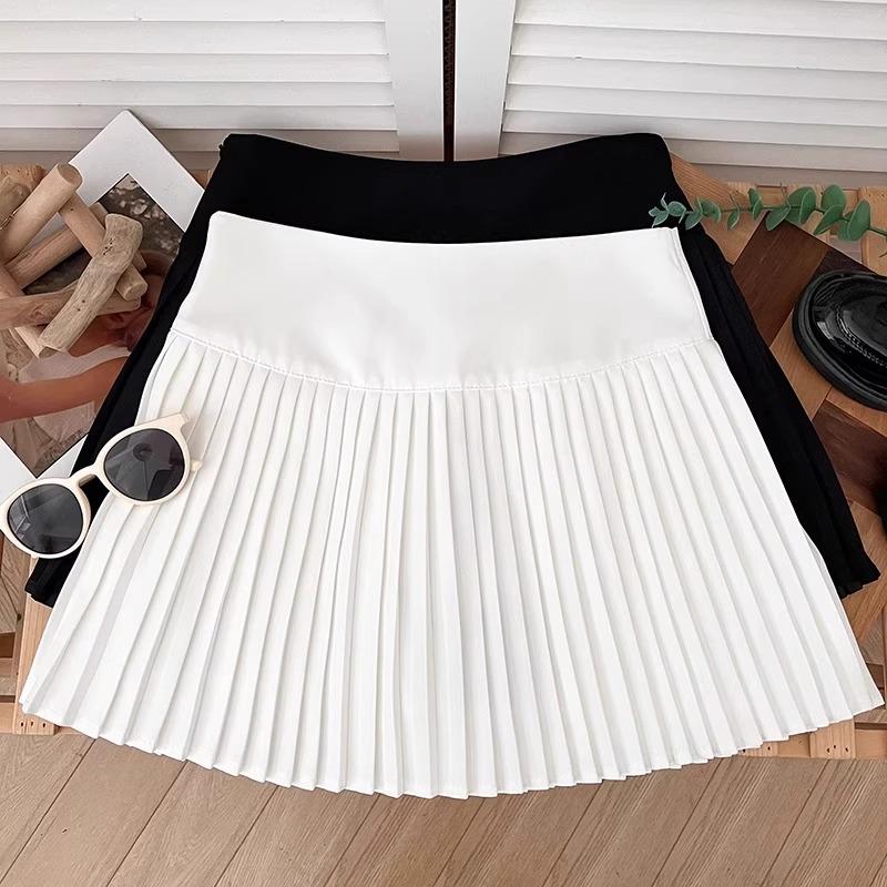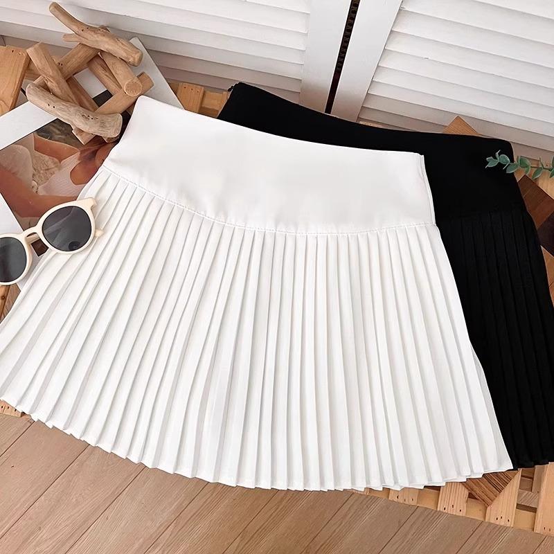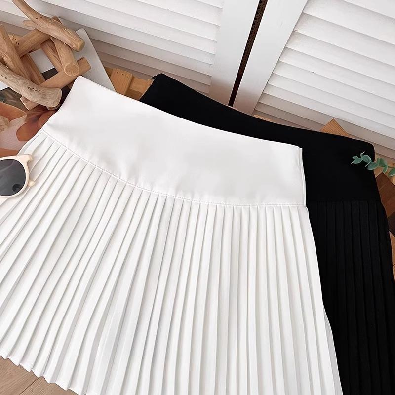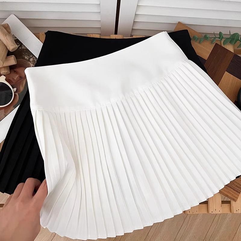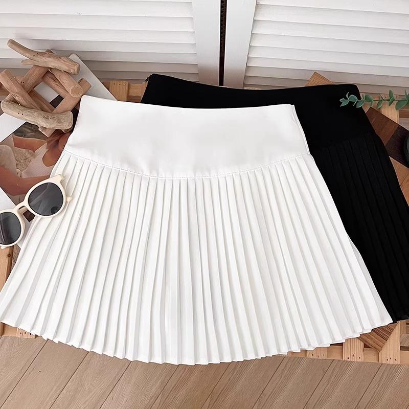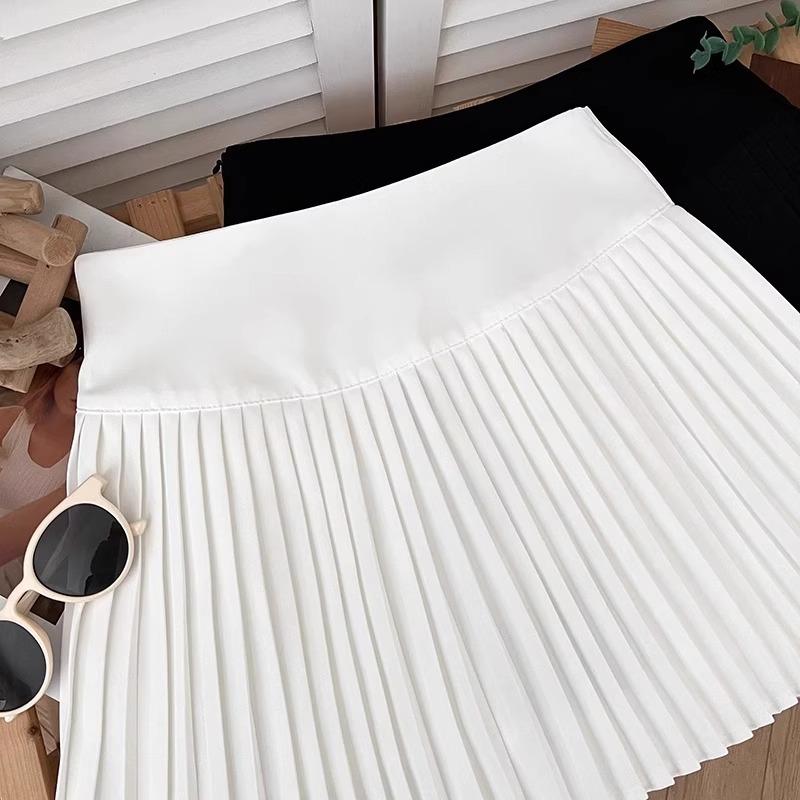 Falda Blanca Plisada para Mujer Verano 2025 Nueva Aspecto Adelgazante de Cintura Alta Antiexposición Falda Versátil Línea A Pantalones Cortos