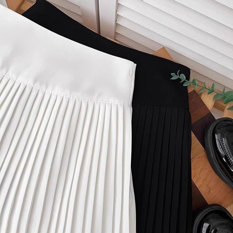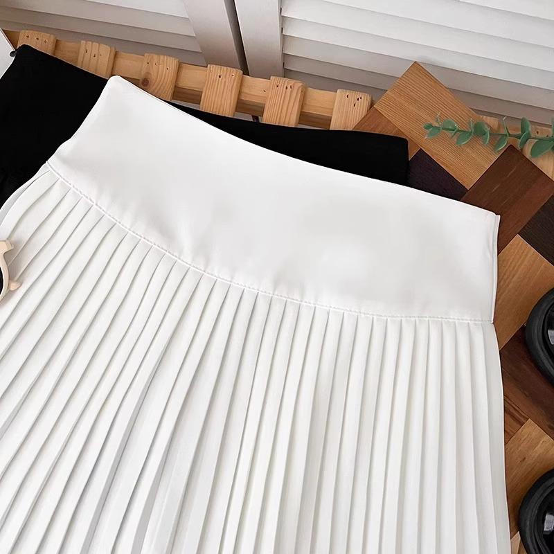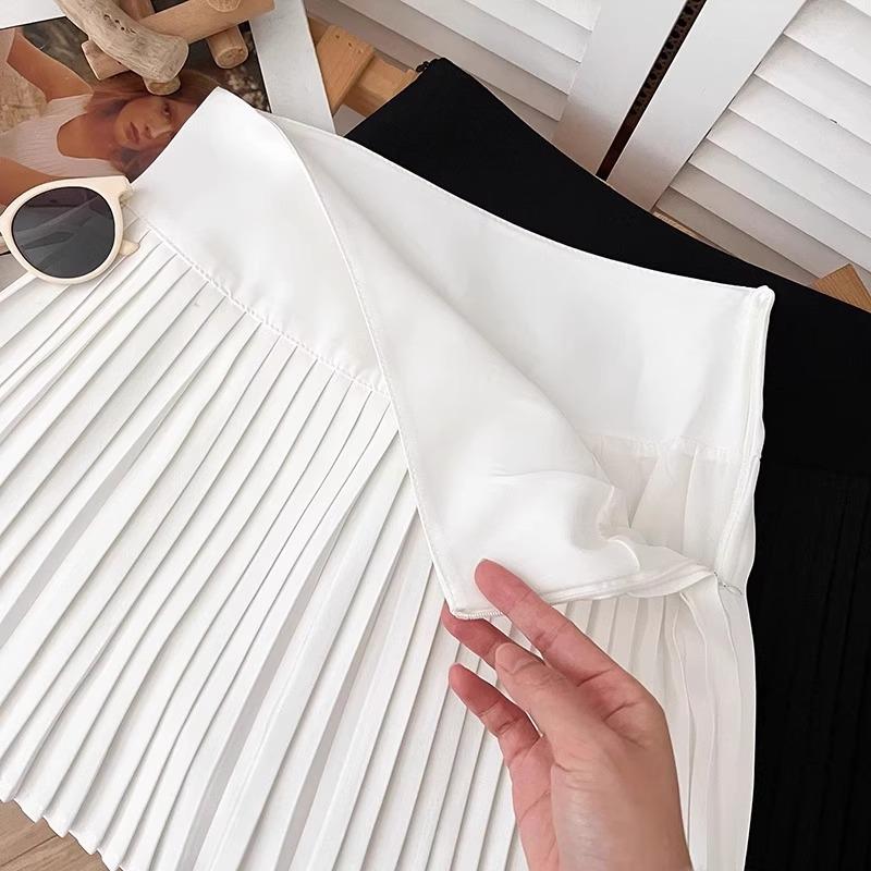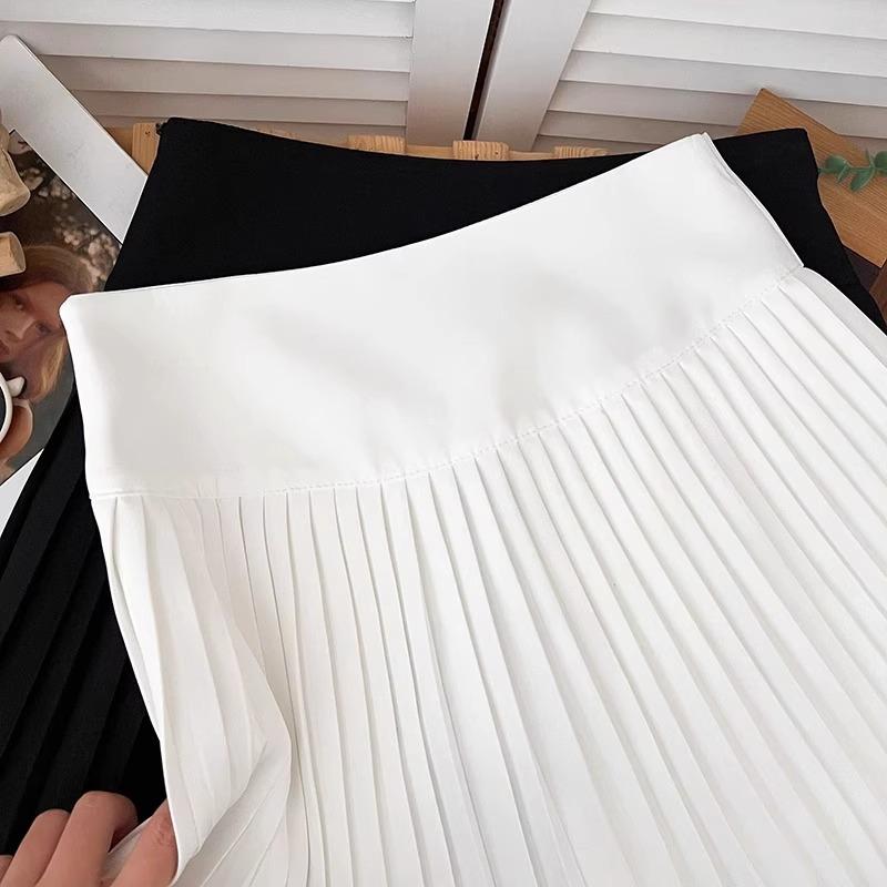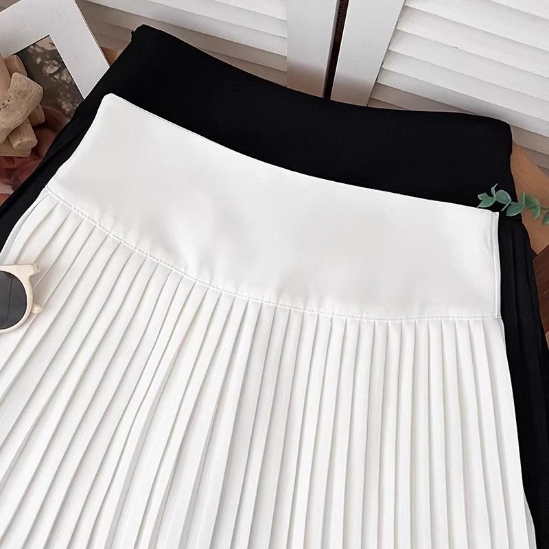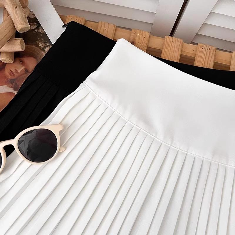 Falda Blanca Plisada para Mujer Verano 2025 Nueva Aspecto Adelgazante de Cintura Alta Antiexposición Falda Versátil Línea A Pantalones Cortos