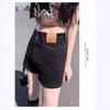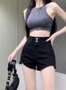 Shorts de mezclilla negros para mujer 2024 verano nuevo estilo pequeños cintura alta adelgazantes abertura chica hot ajustados línea A pantalones cortos