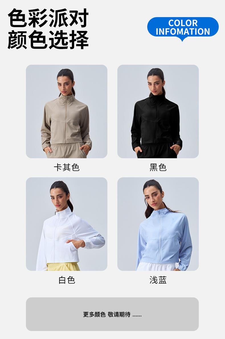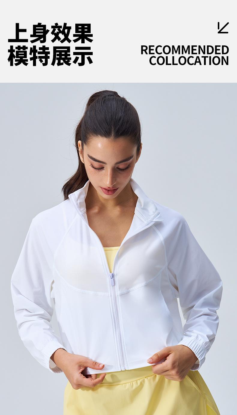 Ropa de Verano Fresca para Protección Solar para Mujer, Suelta Casual Fitness Manga Larga Cremallera Anti-UV Cuello Alto Transpirable Chaqueta de Protección Solar