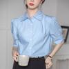 Camisa Blanca Estilo Francés para Mujer 2025 Verano Nuevo Diseño Nicho Commuter Profesional Camisa Top de Manga Corta