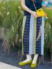 Falda Larga de Verano para Mujer a la Moda Estilo Miyazaki a Cuadros Vintage Color-block Recta de Un Paso con Pliegues Ropa de Mujer