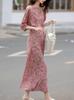 Elegante Vestido Vintage Estampado para la Hora del Té para Mujer 2025 Verano Nueva Llegada Tirantes Descubiertos Cintura Vestido Largo