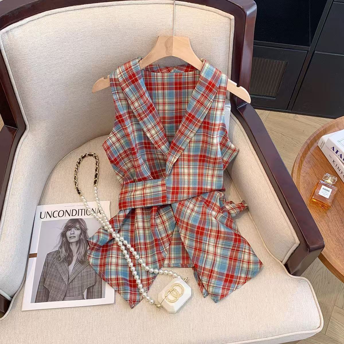 Traje de dos piezas para mujer 2025 Verano Nuevo Moda Artística Diseño que Reduce la Edad Camisa con Cuello en V Versátil Pantalones de Pierna Ancha de Cintura Alta