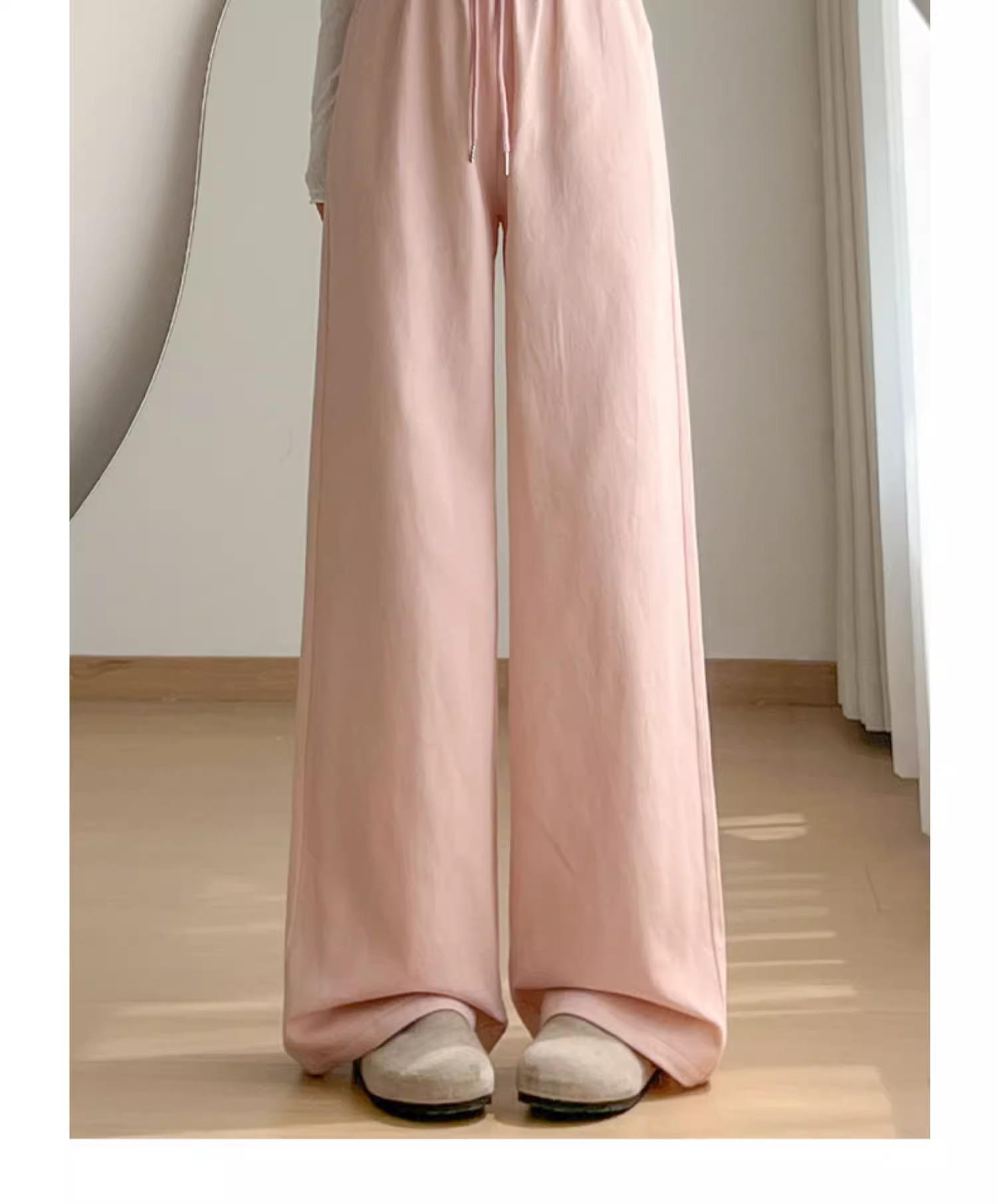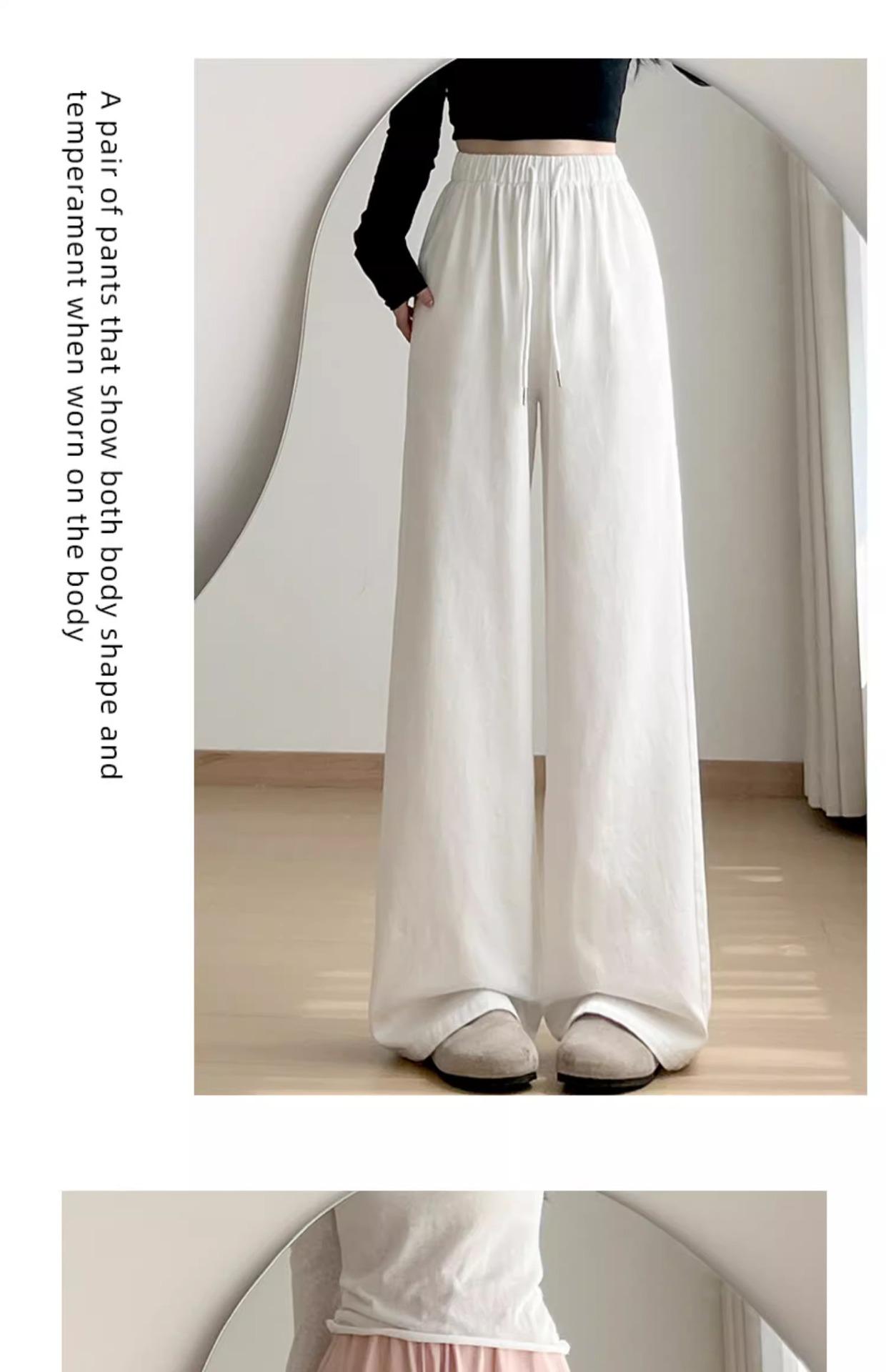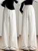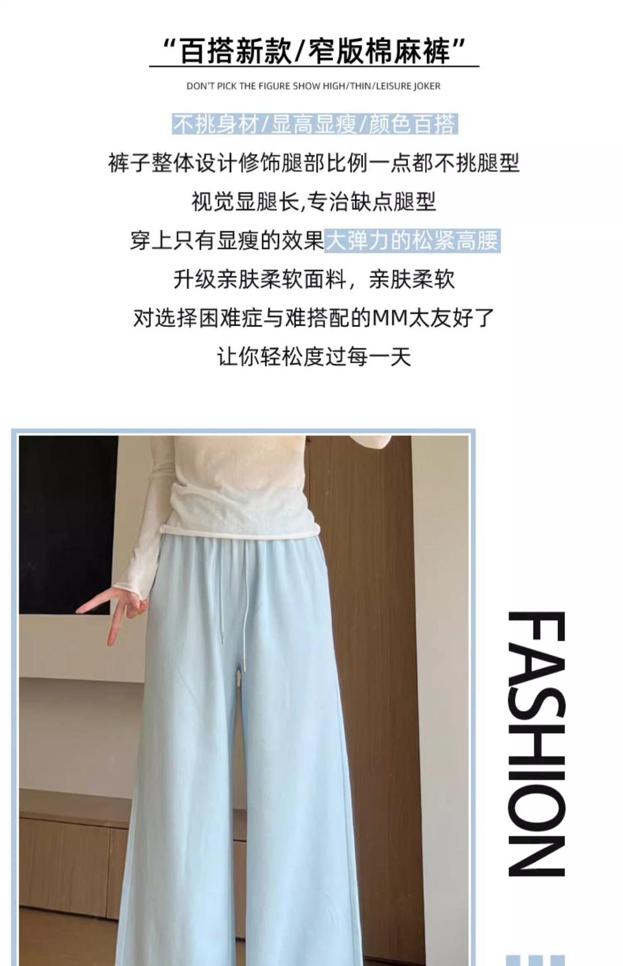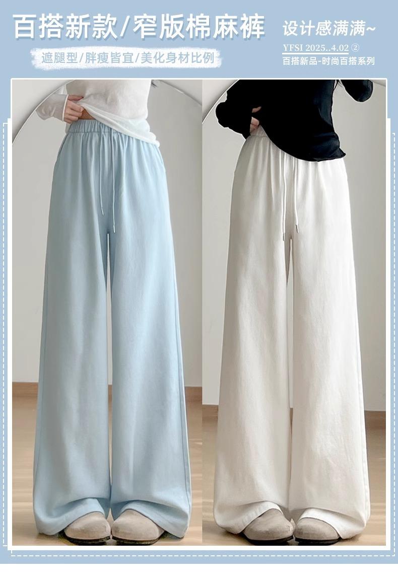Pantalones blancos de lino y algodón de pierna ancha para mujer Verano 2025 Nuevo Cintura alta Recto Suelto Estilo holgazán Pantalones casuales estrechos Finos