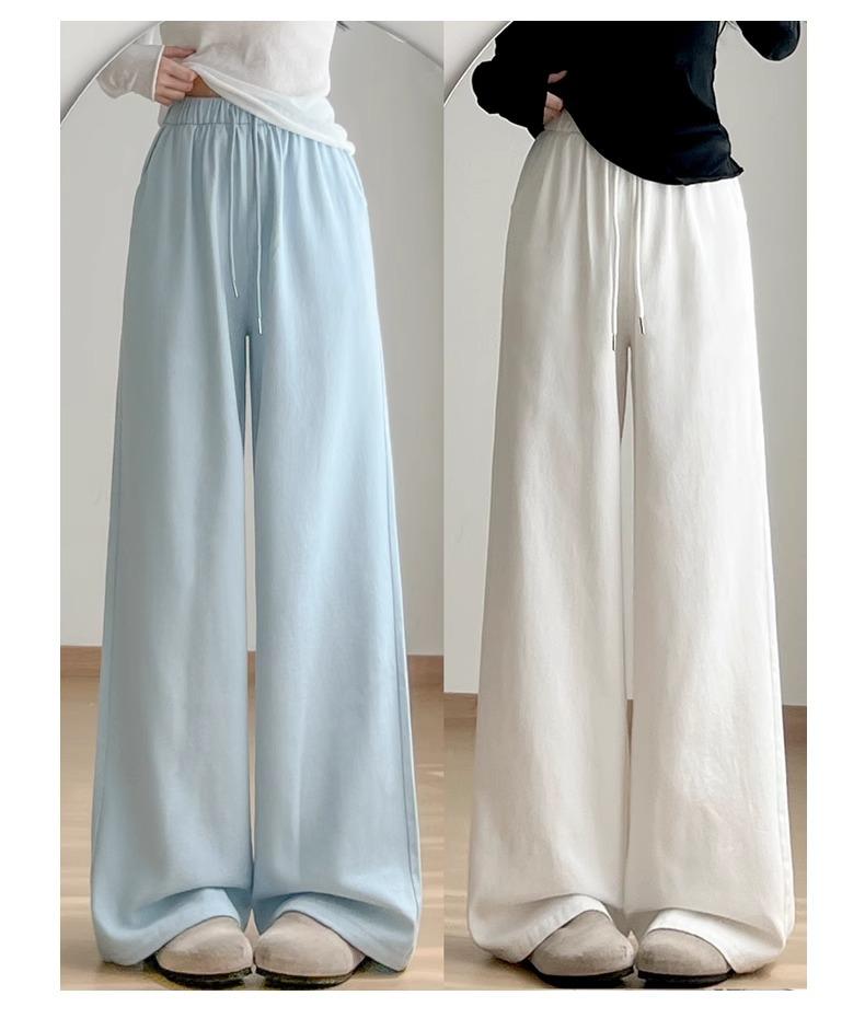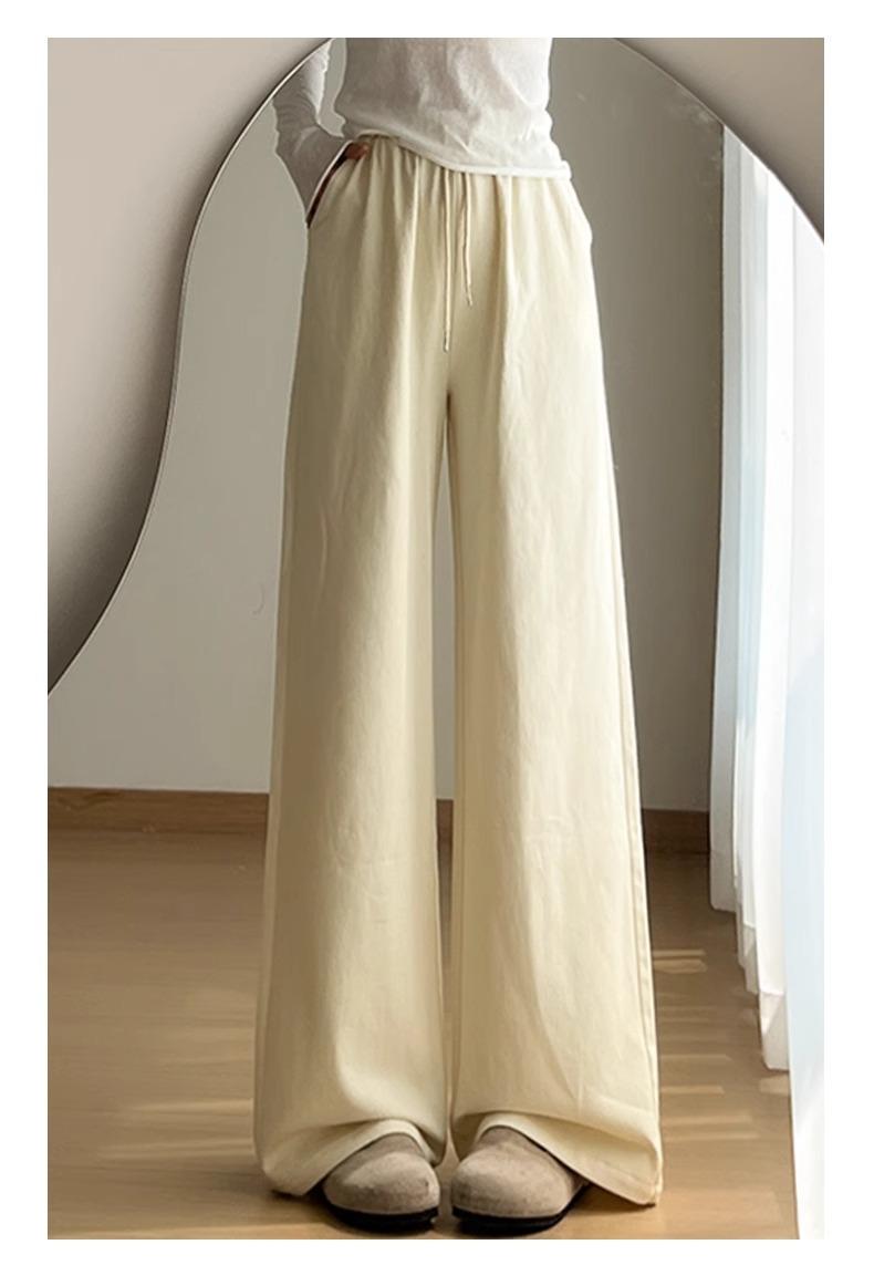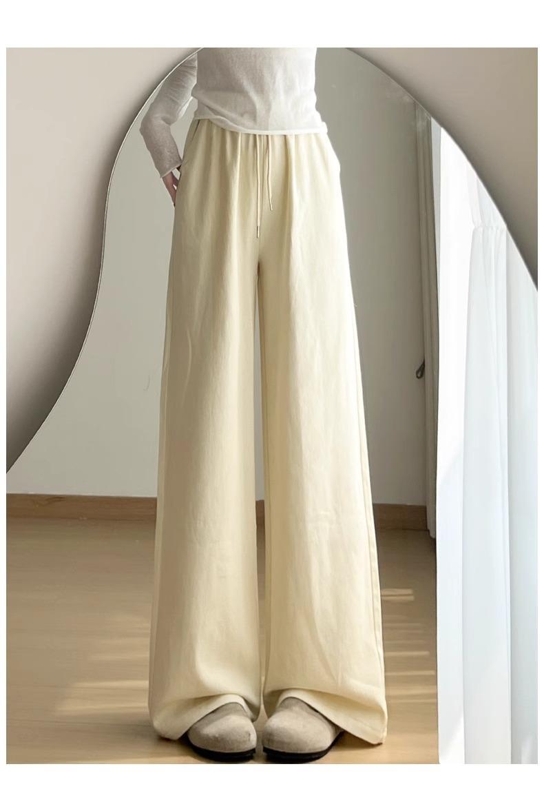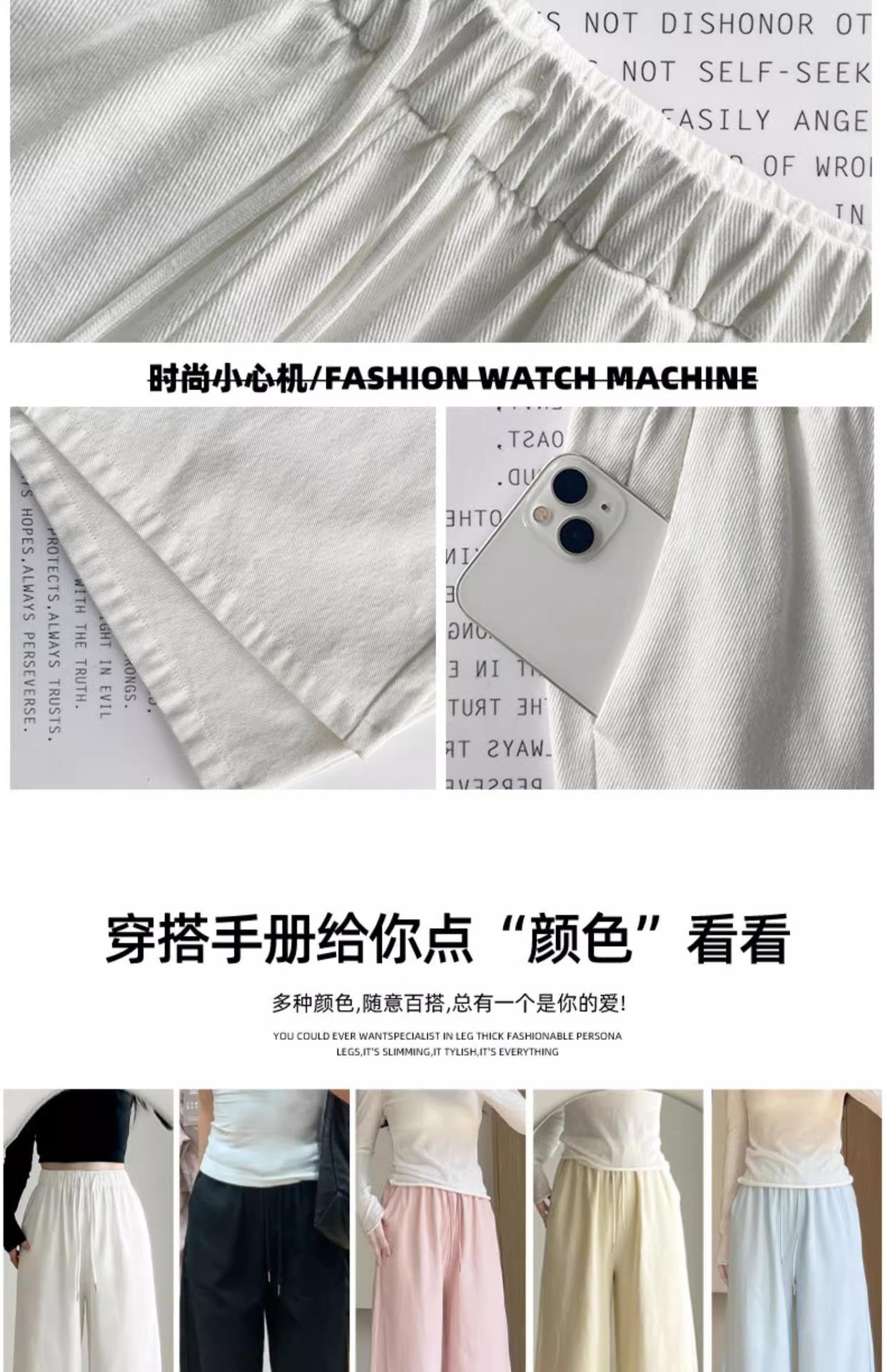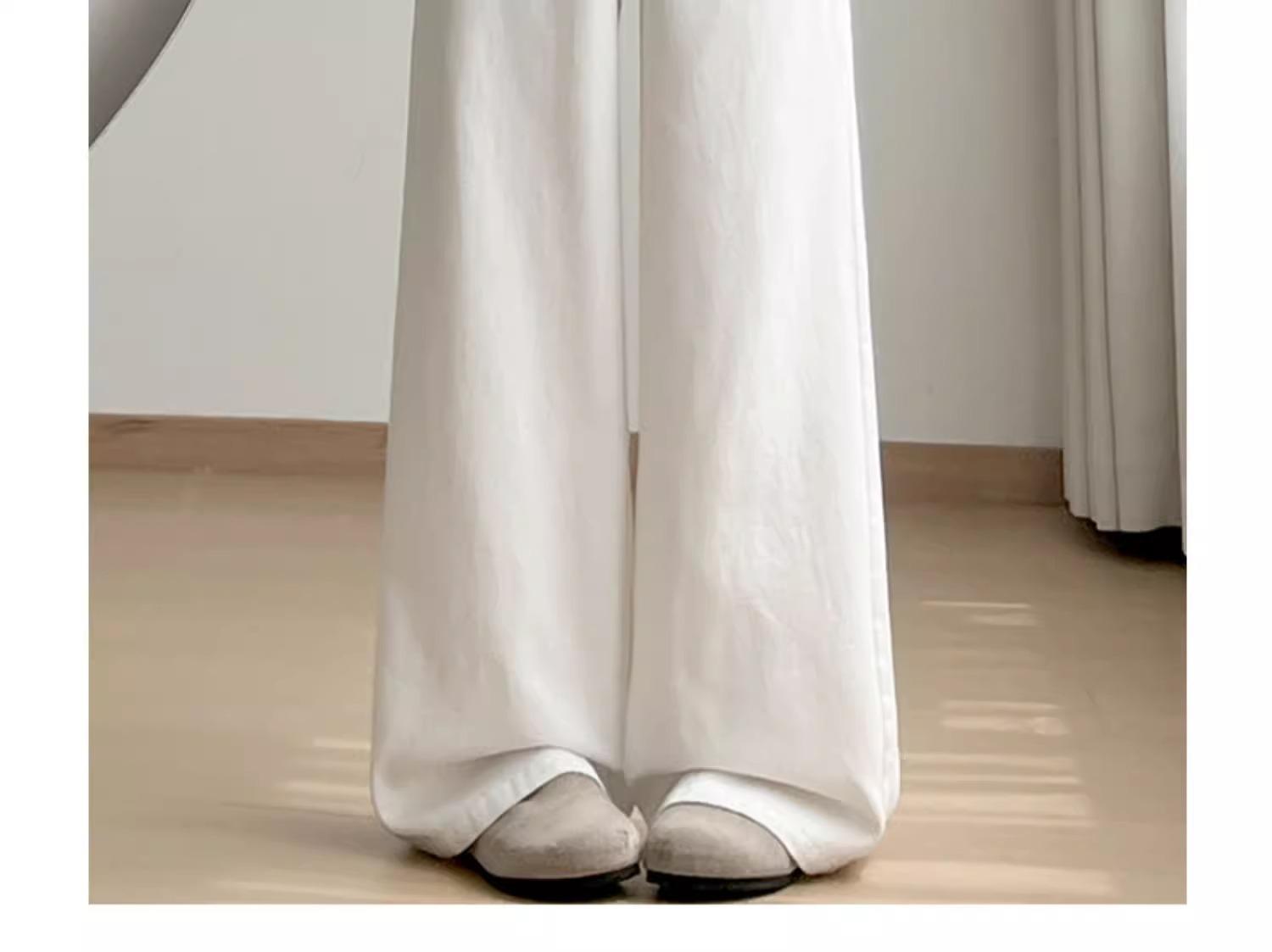 Pantalones blancos de lino y algodón de pierna ancha para mujer Verano 2025 Nuevo Cintura alta Recto Suelto Estilo holgazán Pantalones casuales estrechos Finos
