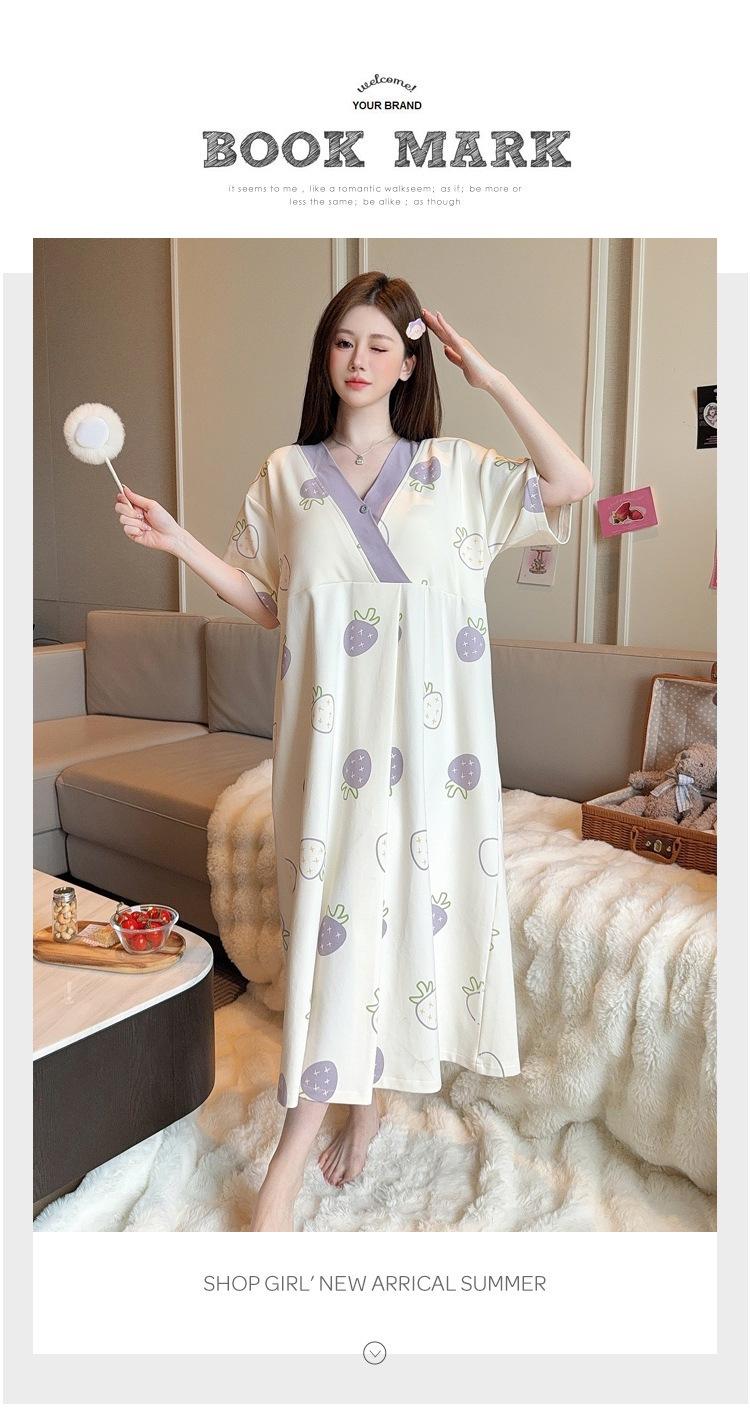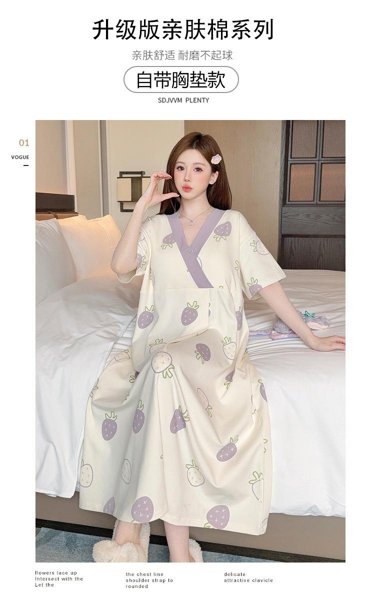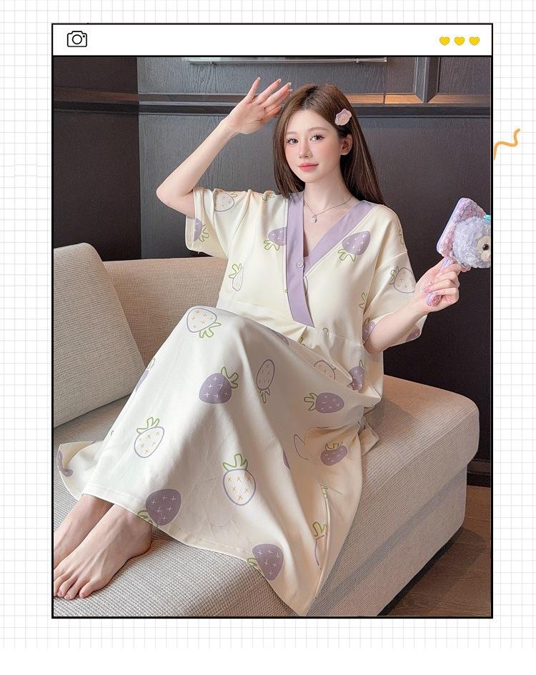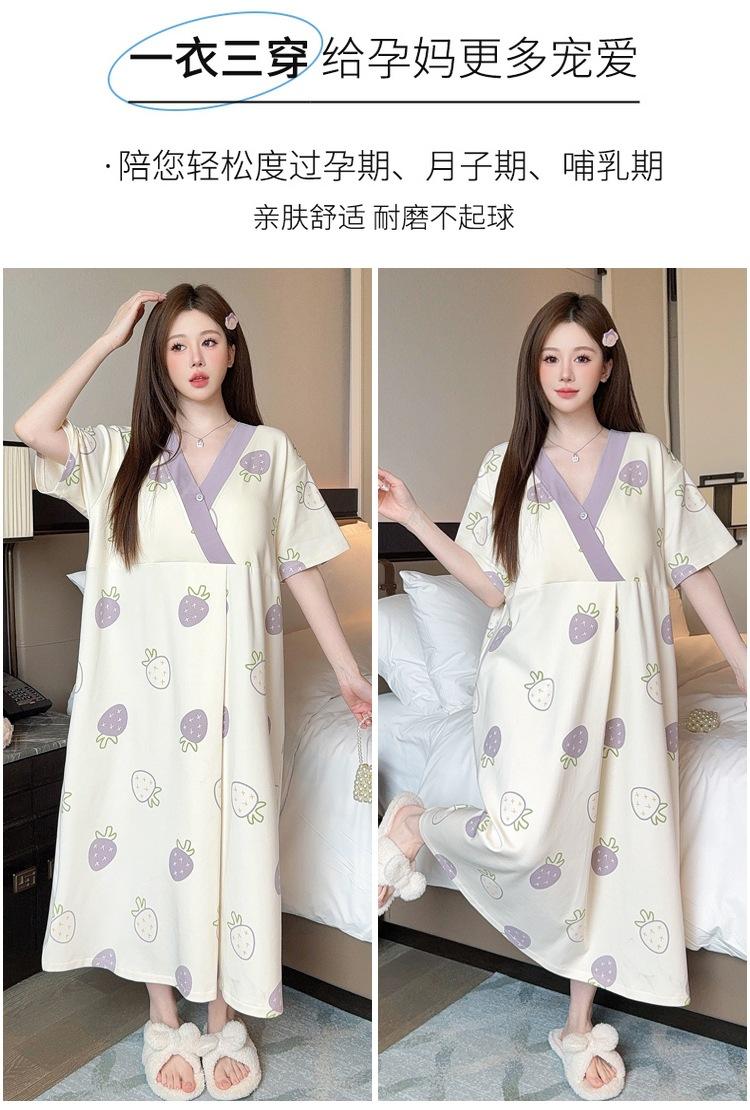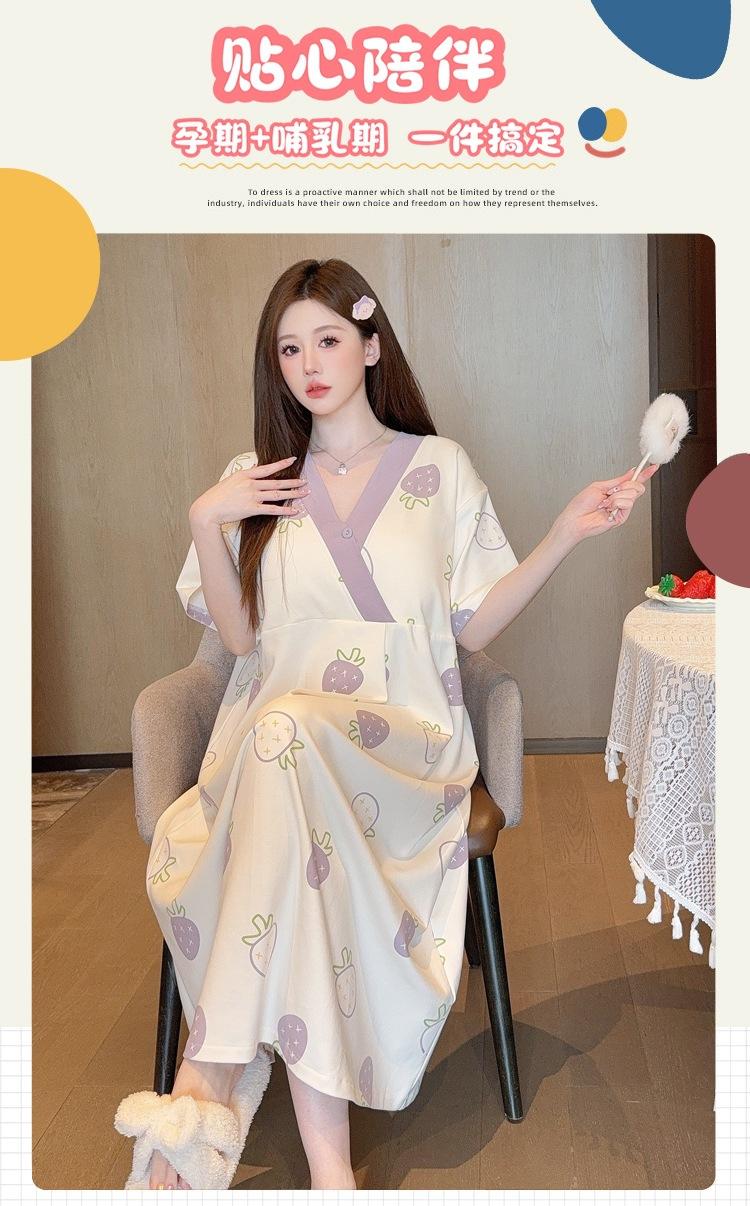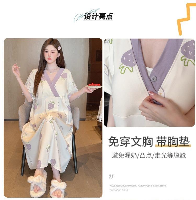 Nuevo Estilo en Stock con Almohadilla en el Pecho, Vestido de Maternidad Desmontable de Algodón Hielo Porcelana de Manga Corta, Falda de Maternidad y Pantalón para Dormir, Disponible para Dropshipping con Envío Gratis