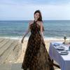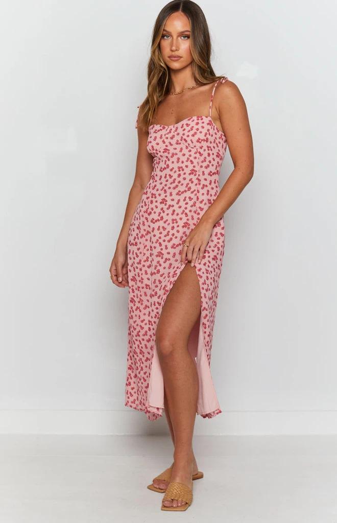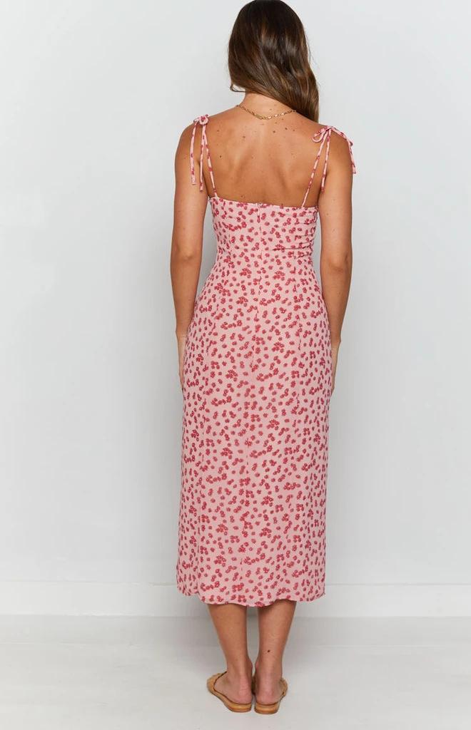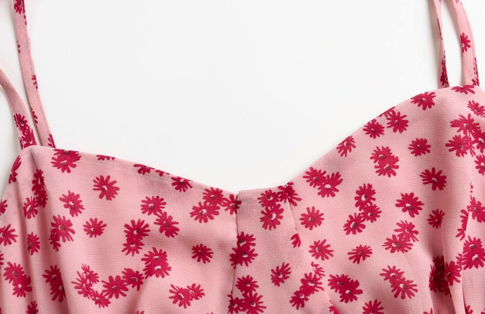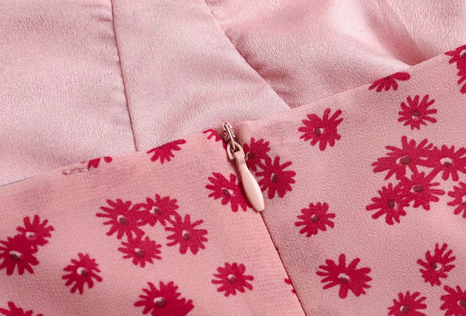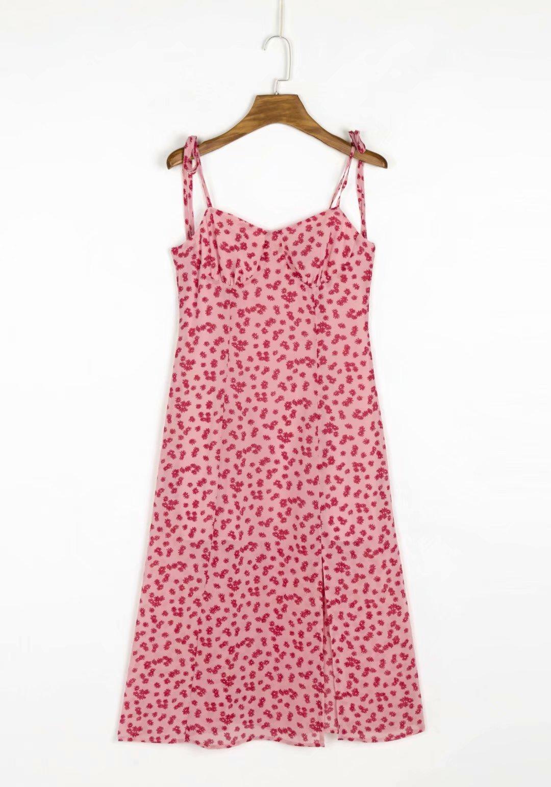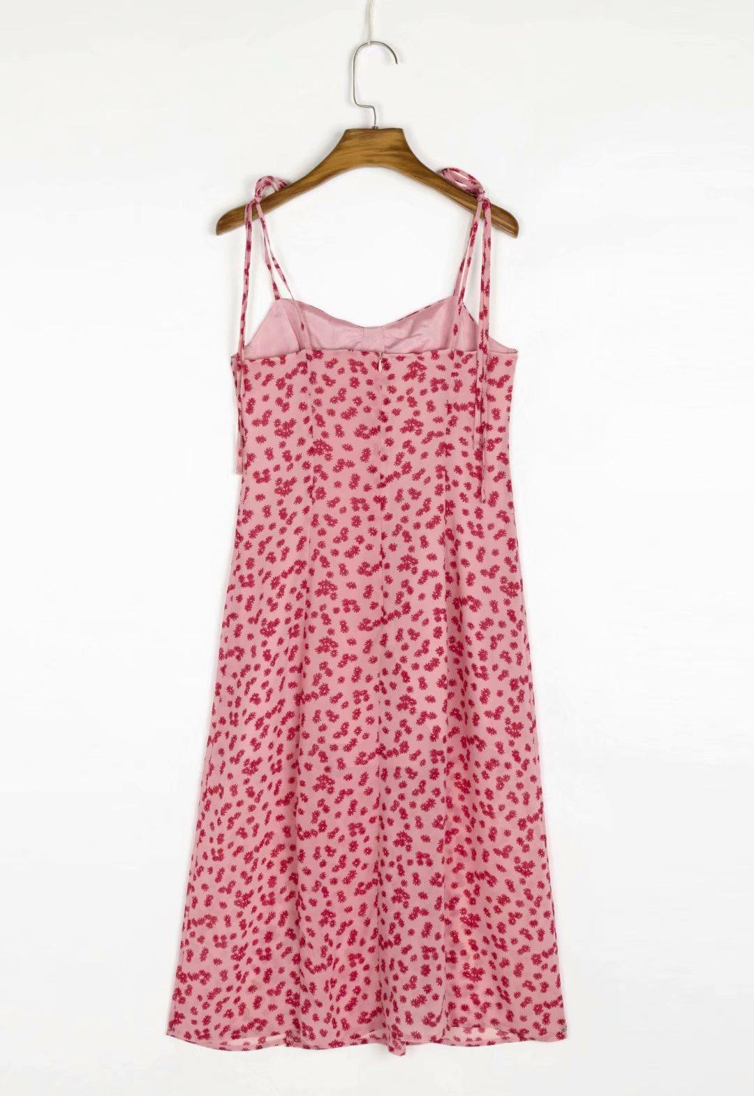 2021 Nueva Falda Midi Elegante Rosa para Viaje al Trabajo de Cintura Alta con Cordones Slip Swing Vestido Sexy Estampado
