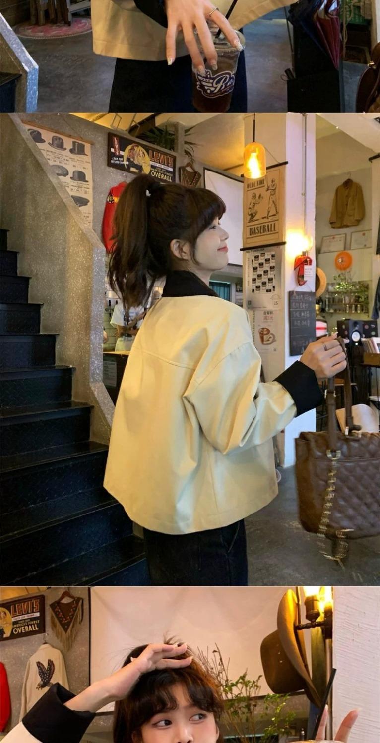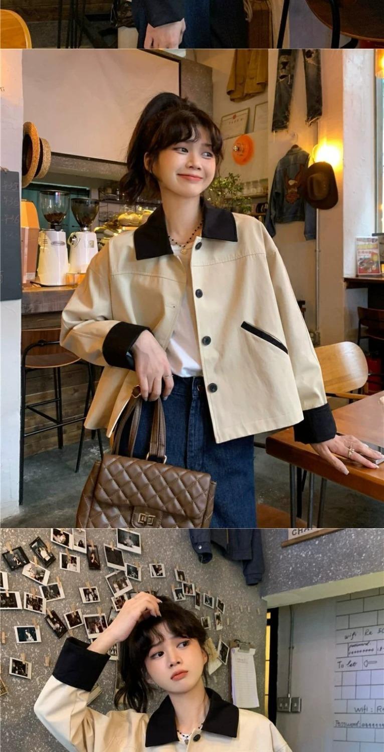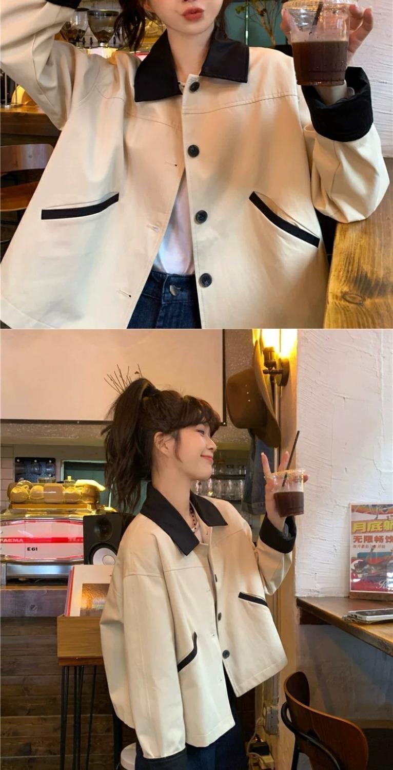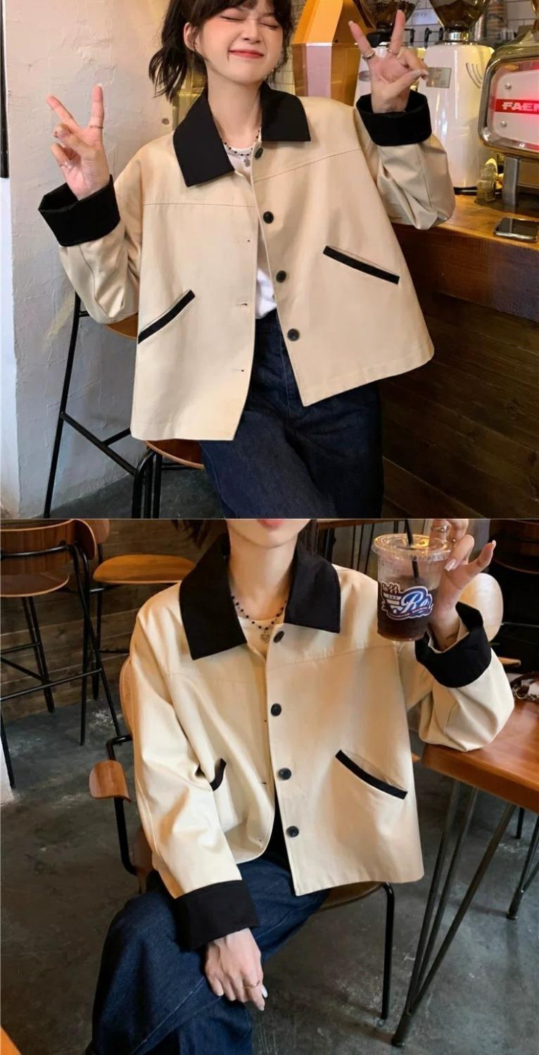 Shanli Dadi Abrigo de Solapa con Costuras en Contraste de Color para Mujer, Abrigo Casual Holgado de Primavera y Otoño