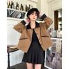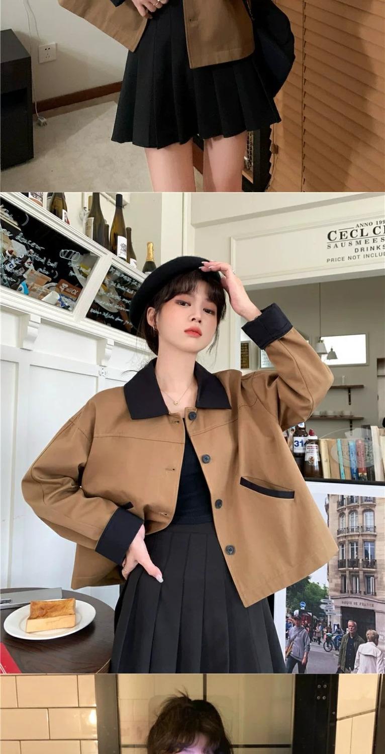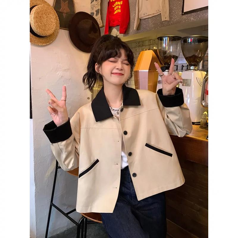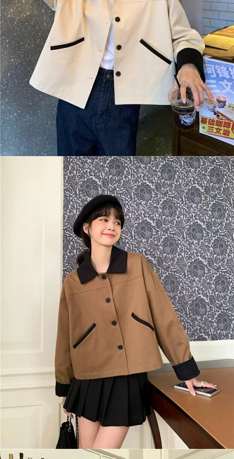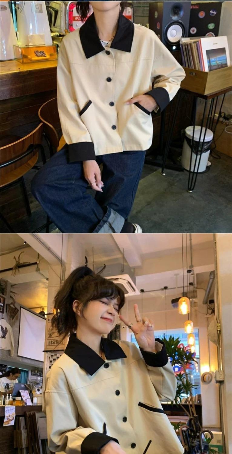 Shanli Dadi Abrigo de Solapa con Costuras en Contraste de Color para Mujer, Abrigo Casual Holgado de Primavera y Otoño