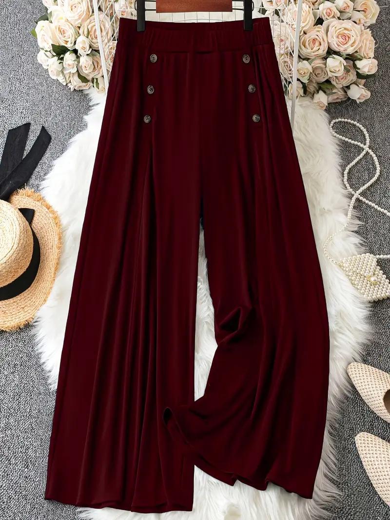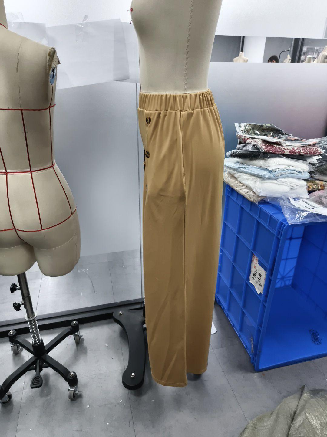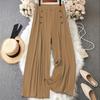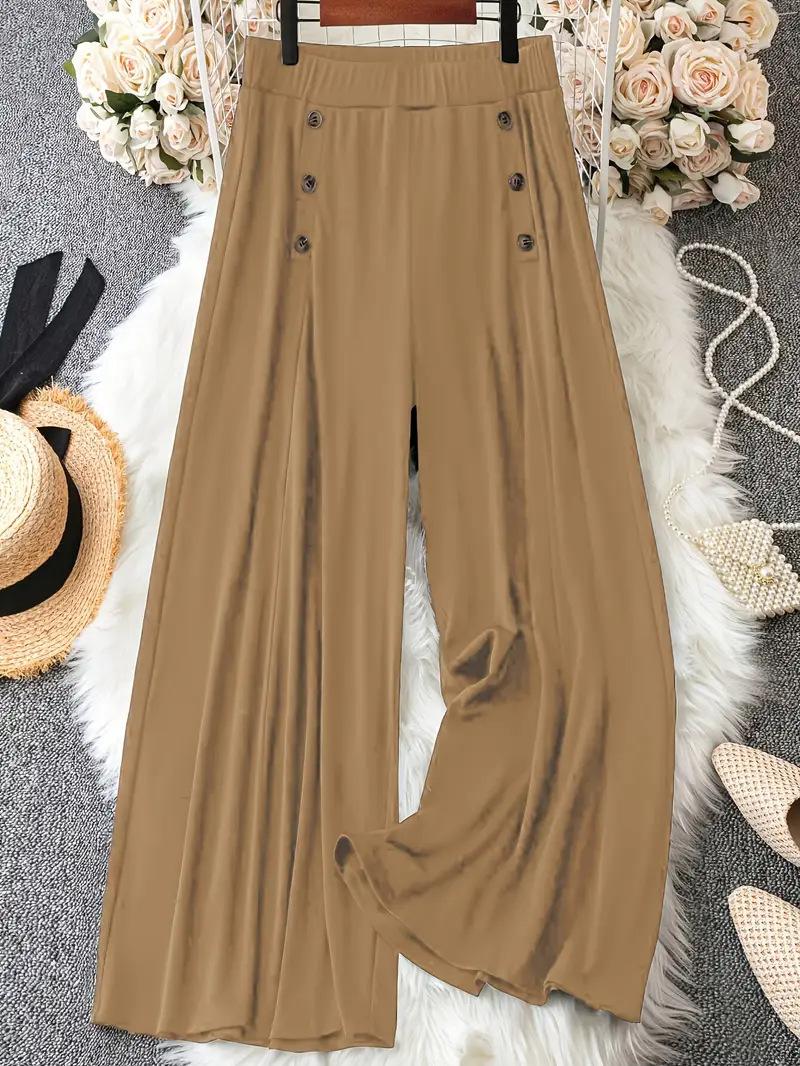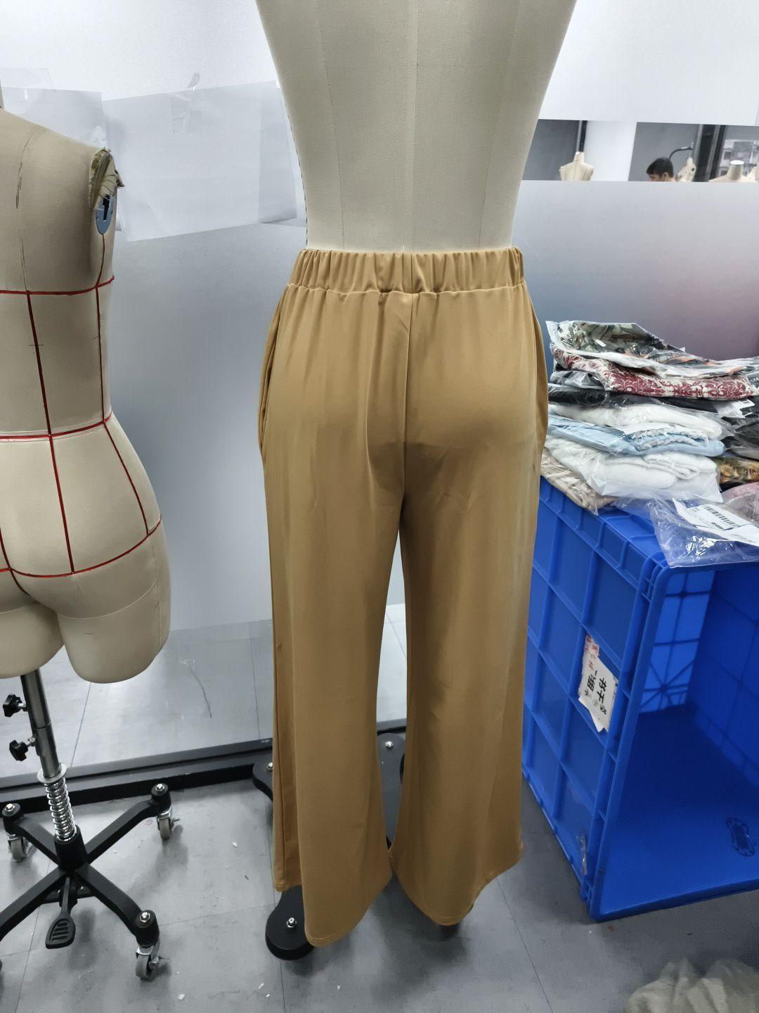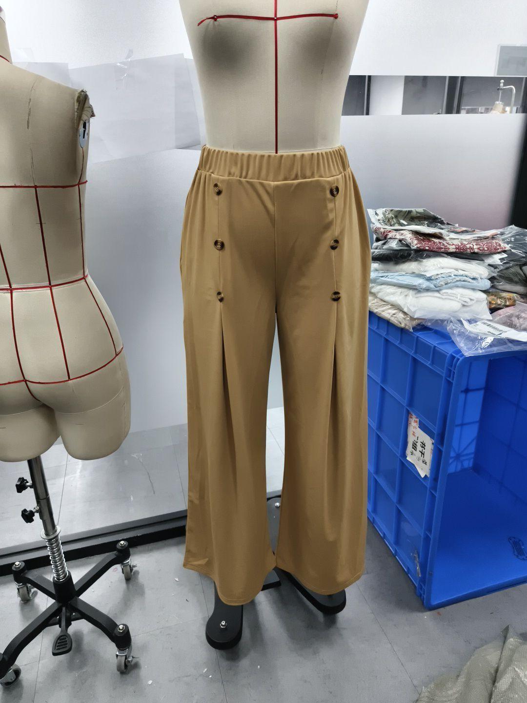 2025 Nuevo Amazon Transfronterizo Moda Europea y Americana Botón Falso Color Sólido Elegante Primavera y Verano Casual Pantalones de Pierna Ancha