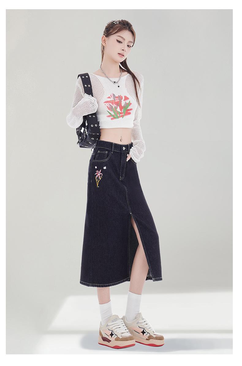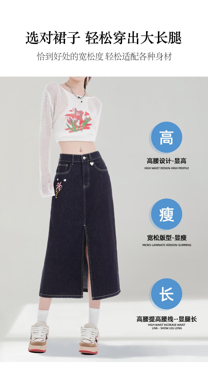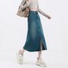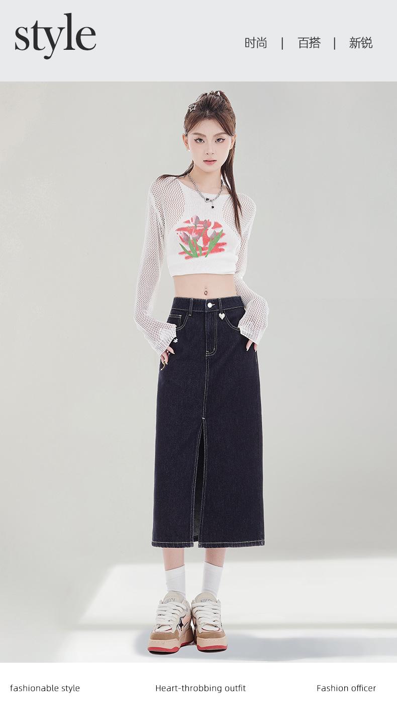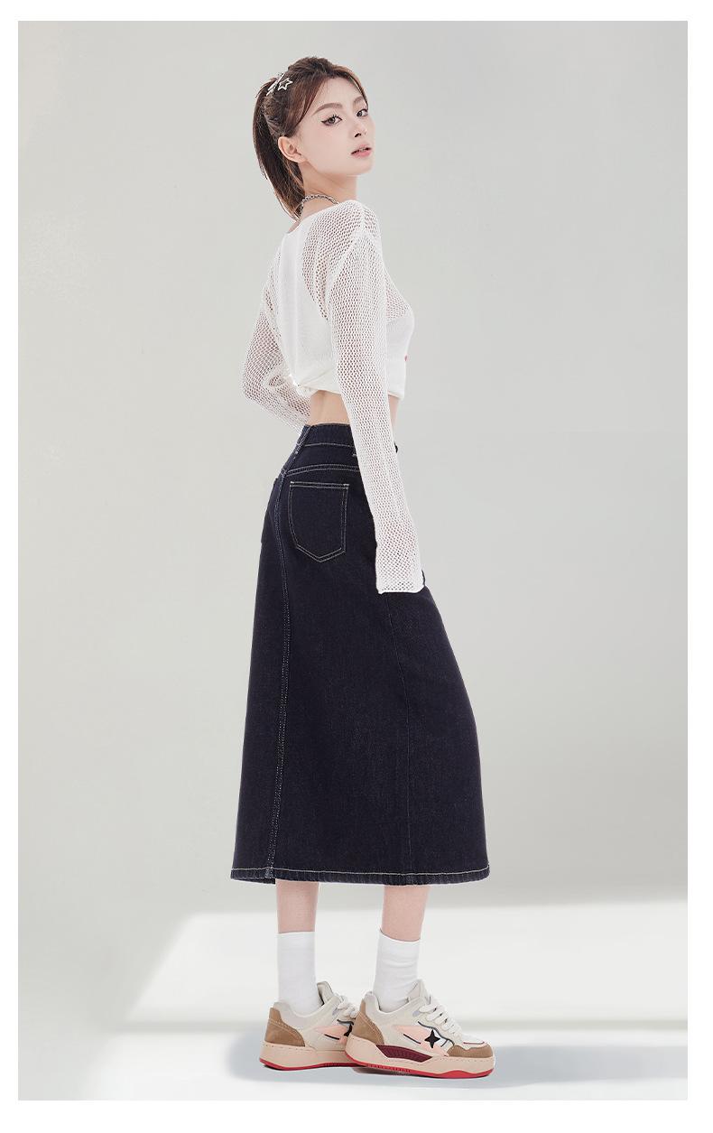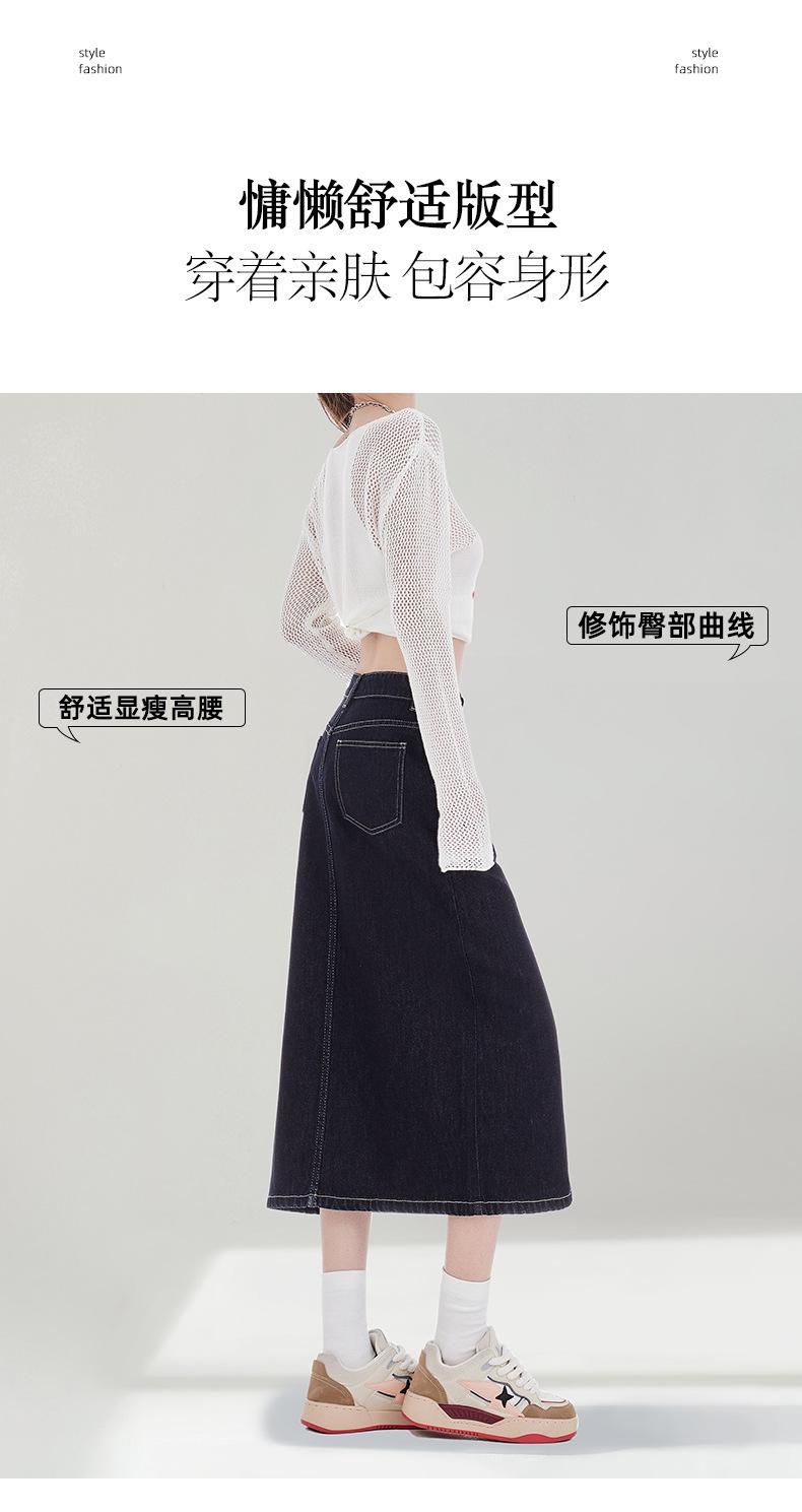 Falda de Mezclilla Negra para Mujer 2025 Verano Nueva Cintura Alta Adelgazante Media Longitud Abertura Adelgazante Falda Tubo