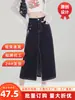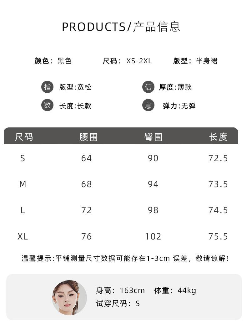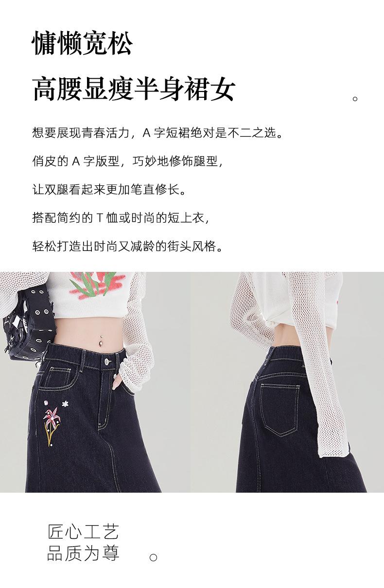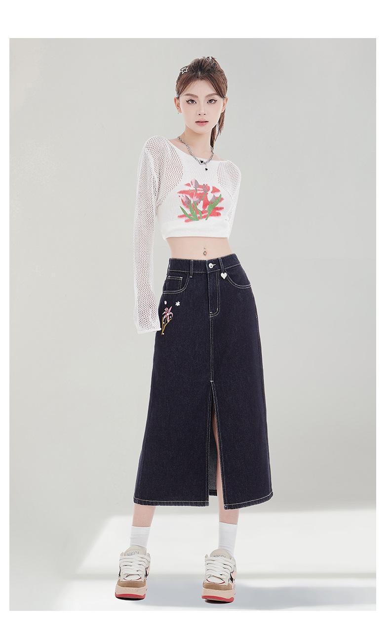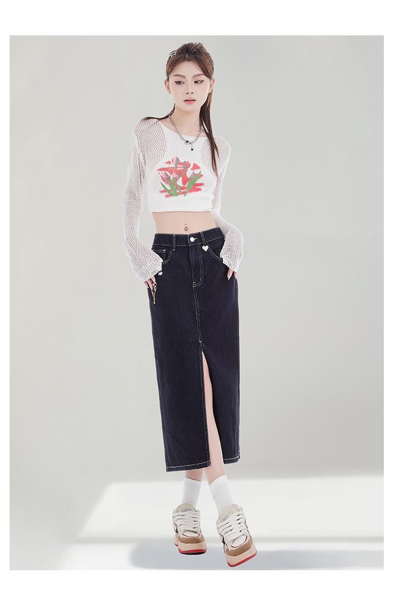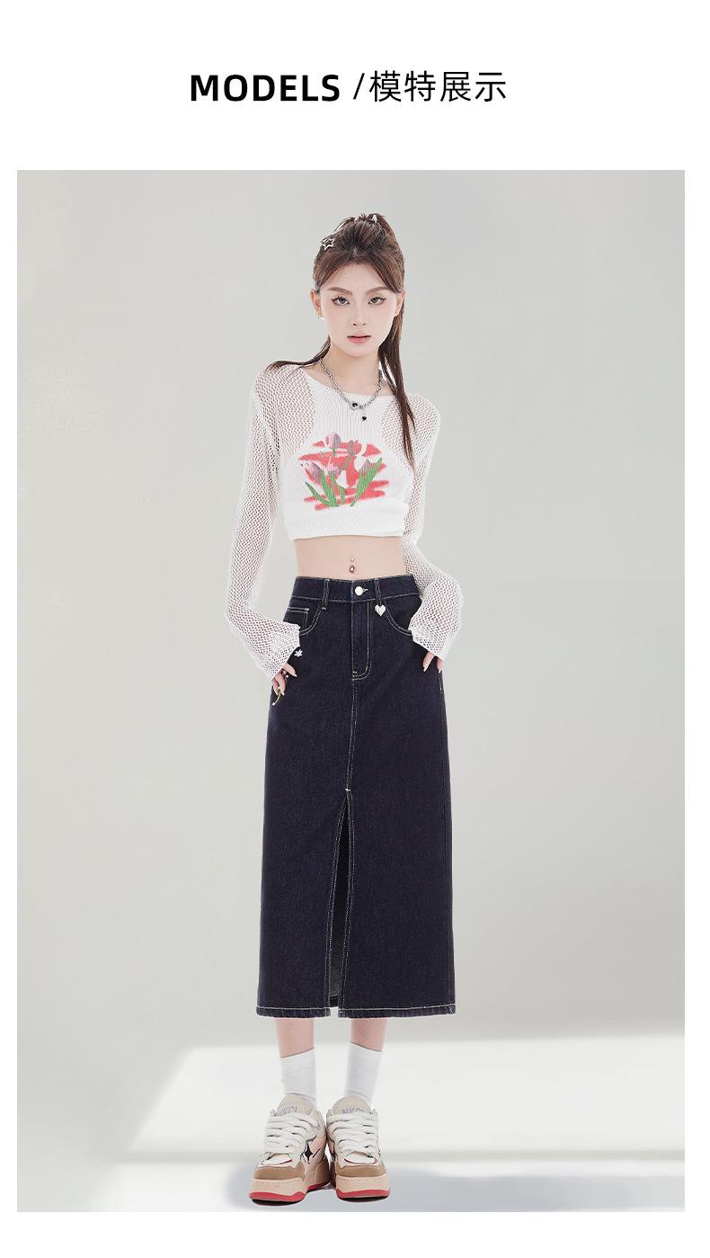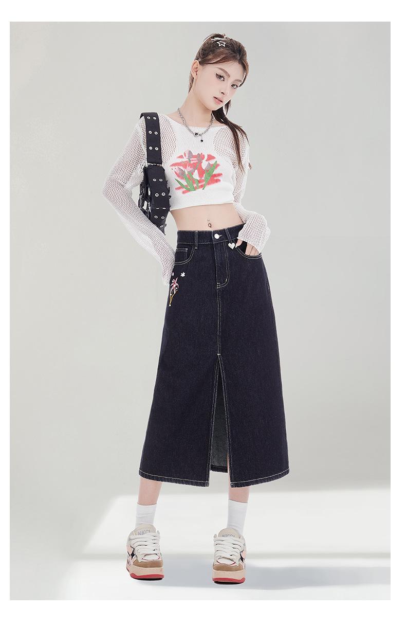 Falda de Mezclilla Negra para Mujer 2025 Verano Nueva Cintura Alta Adelgazante Media Longitud Abertura Adelgazante Falda Tubo