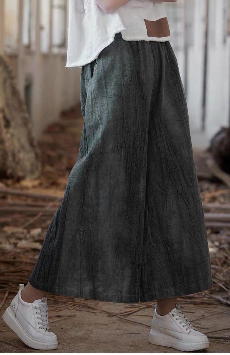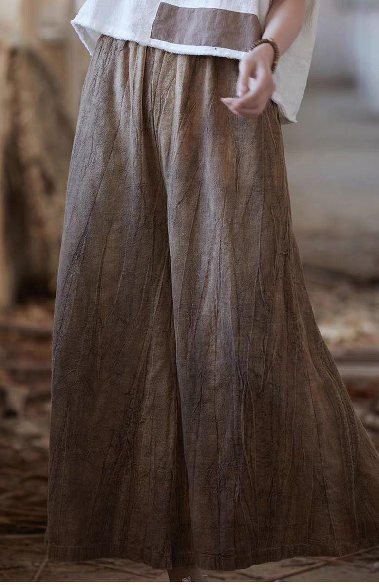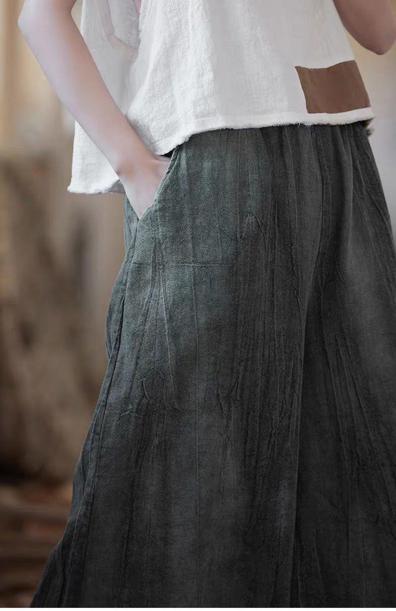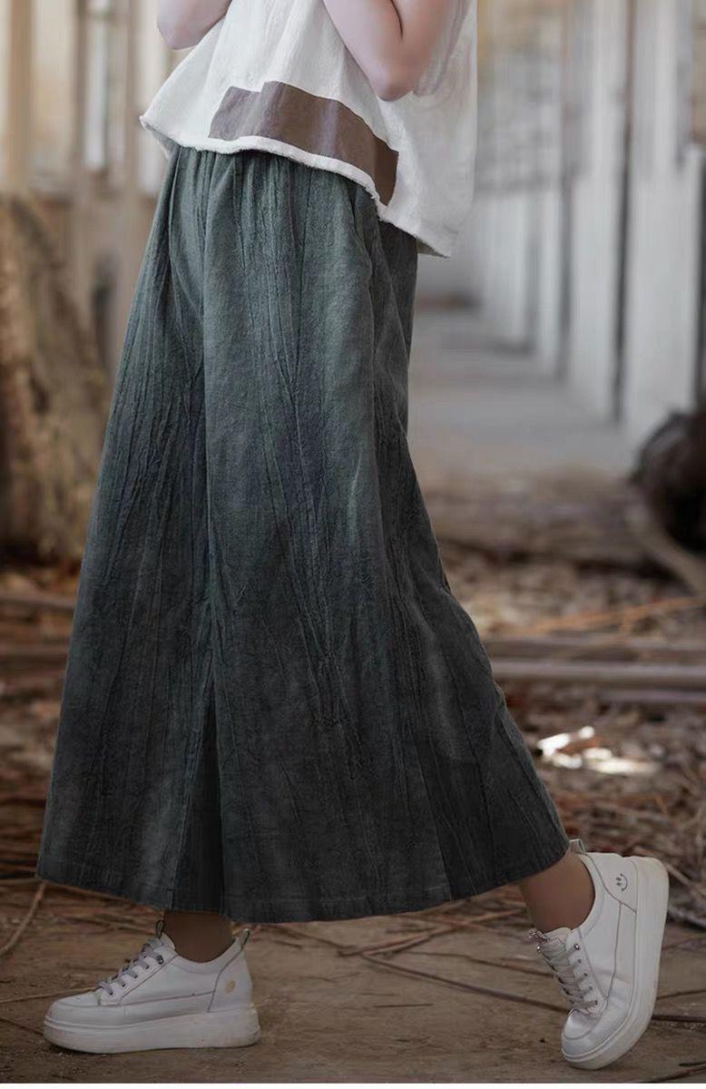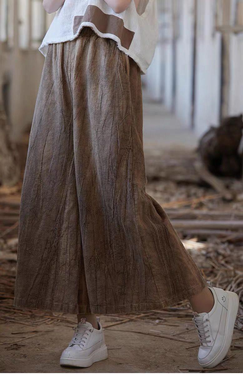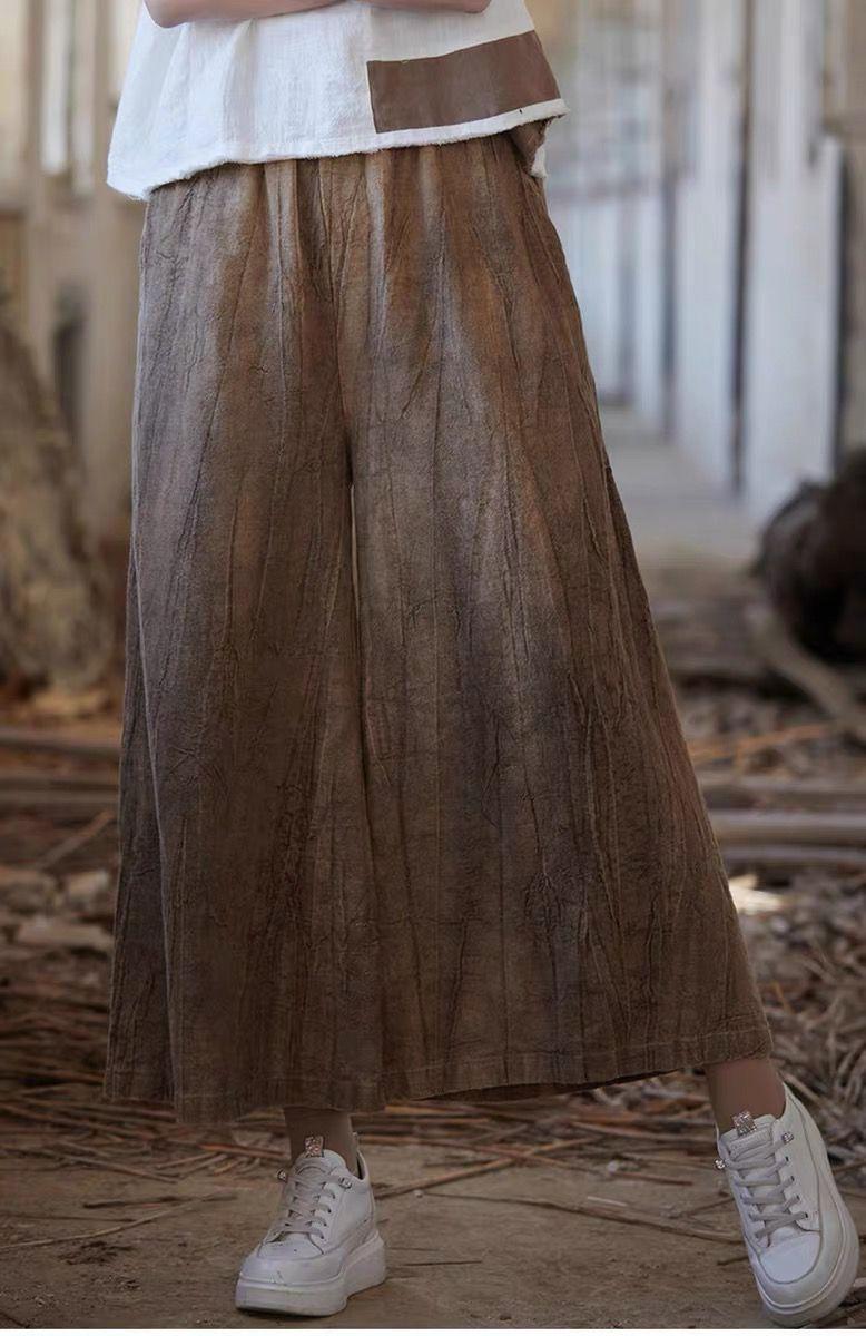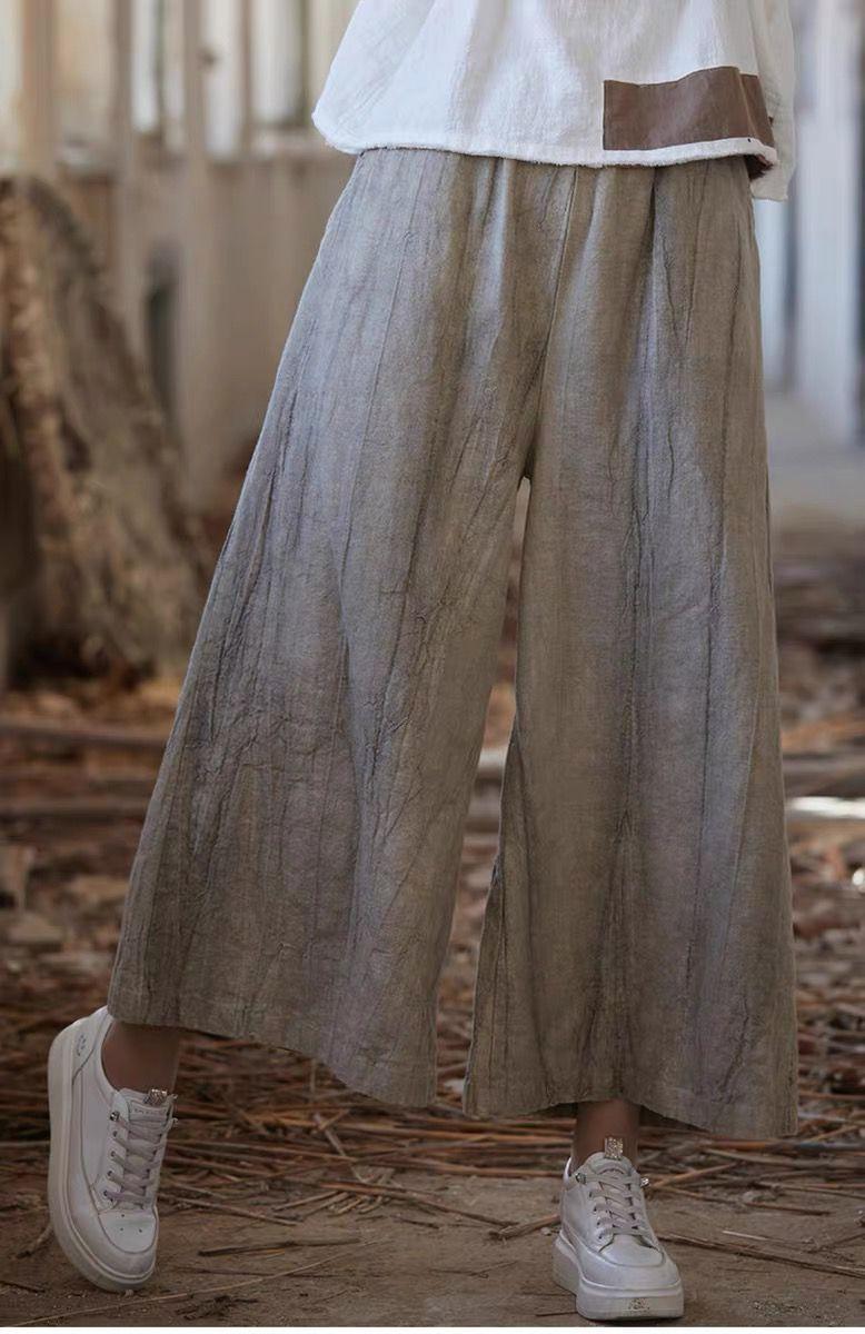 Pantalones Capri de Algodón y Lino para Mujer, Nuevos de Verano Cintura Elástica Adelgazantes Versátiles Casuales Algodón Tie-Dye Pierna Ancha para Mujer