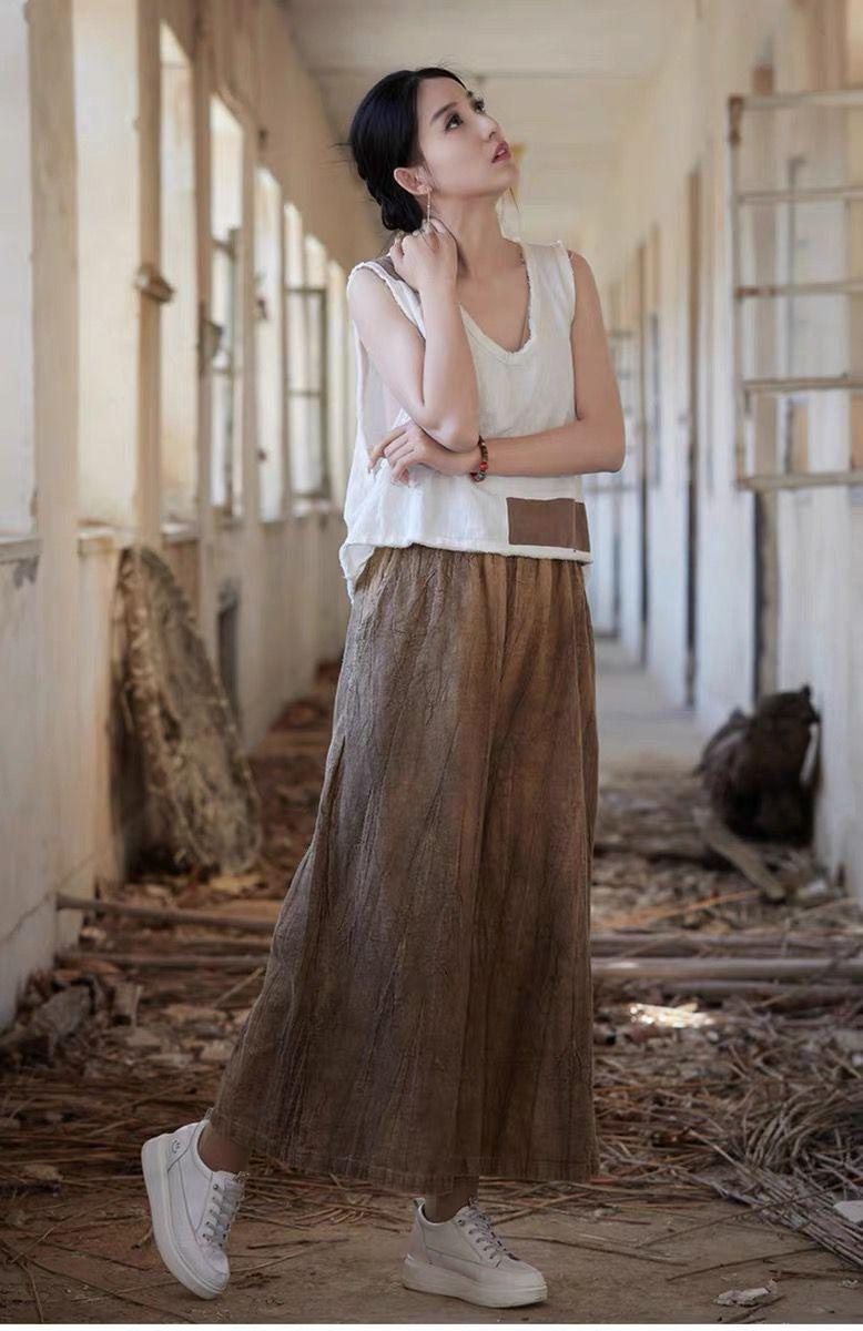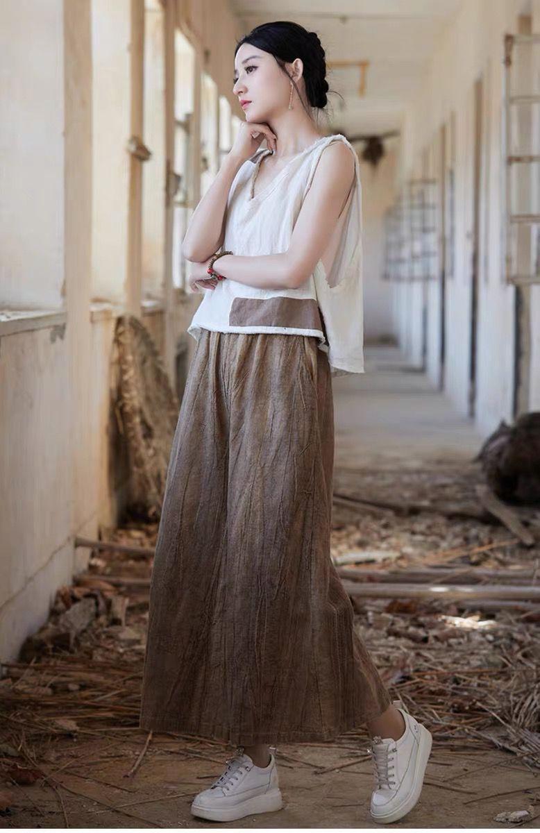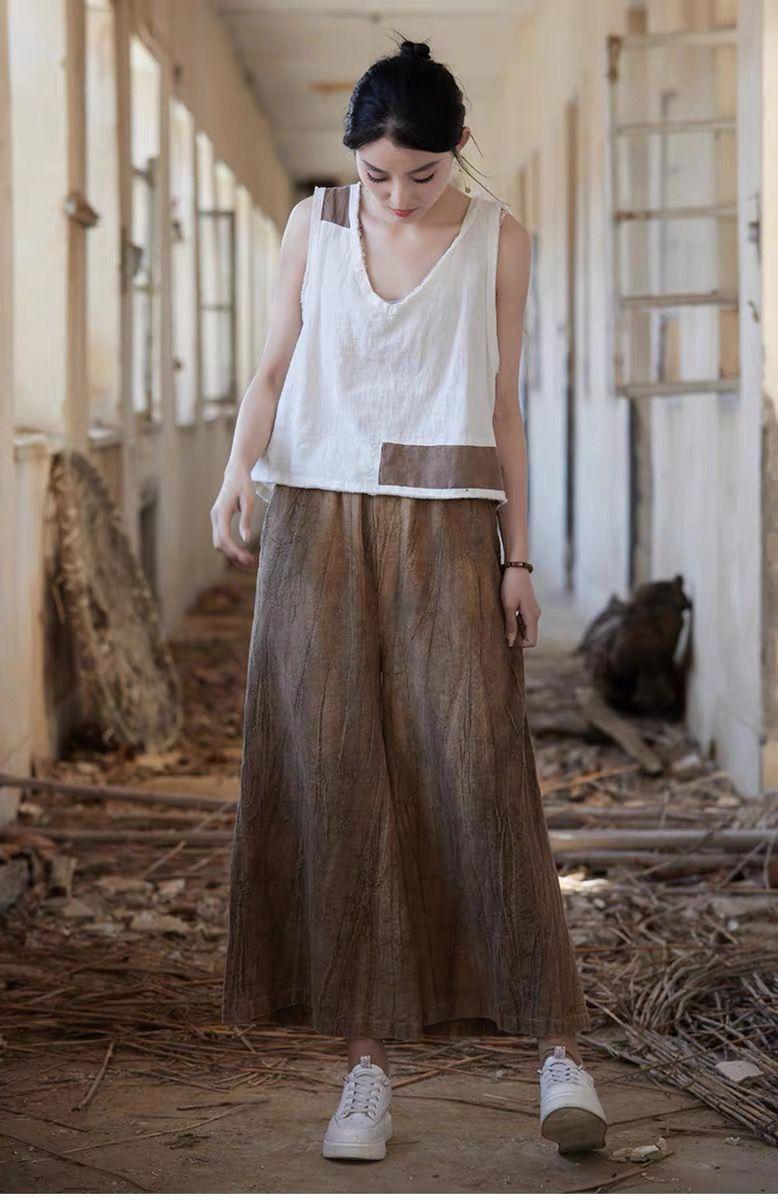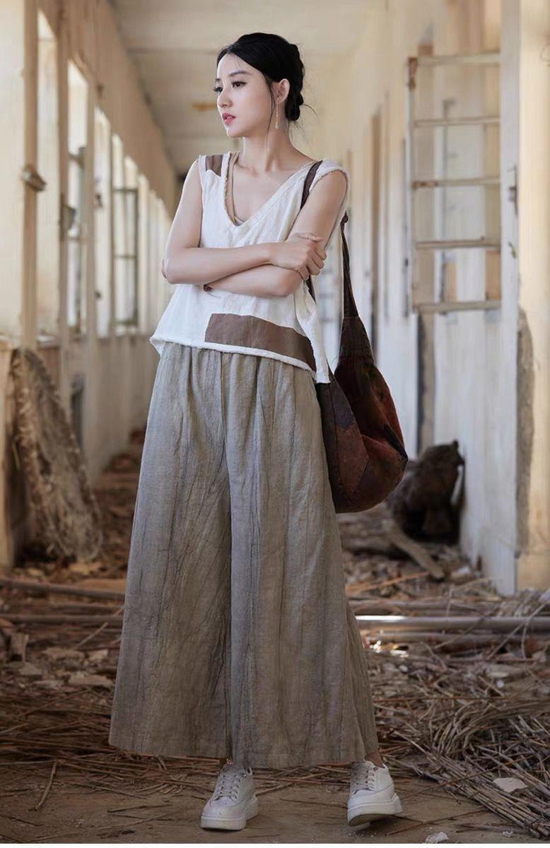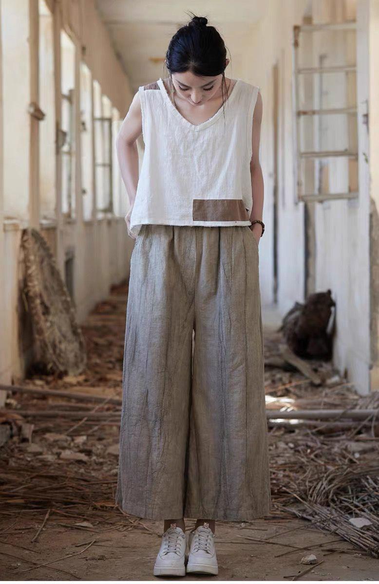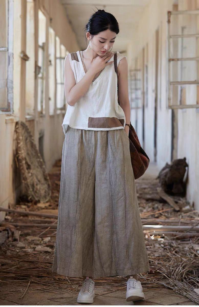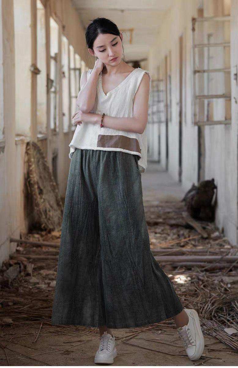 Pantalones Capri de Algodón y Lino para Mujer, Nuevos de Verano Cintura Elástica Adelgazantes Versátiles Casuales Algodón Tie-Dye Pierna Ancha para Mujer