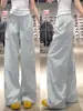 Overol gris de mujer verano 2025 nuevo pantalones de pierna ancha drapeados de cintura alta pantalones deportivos americanos de secado rápido delgados