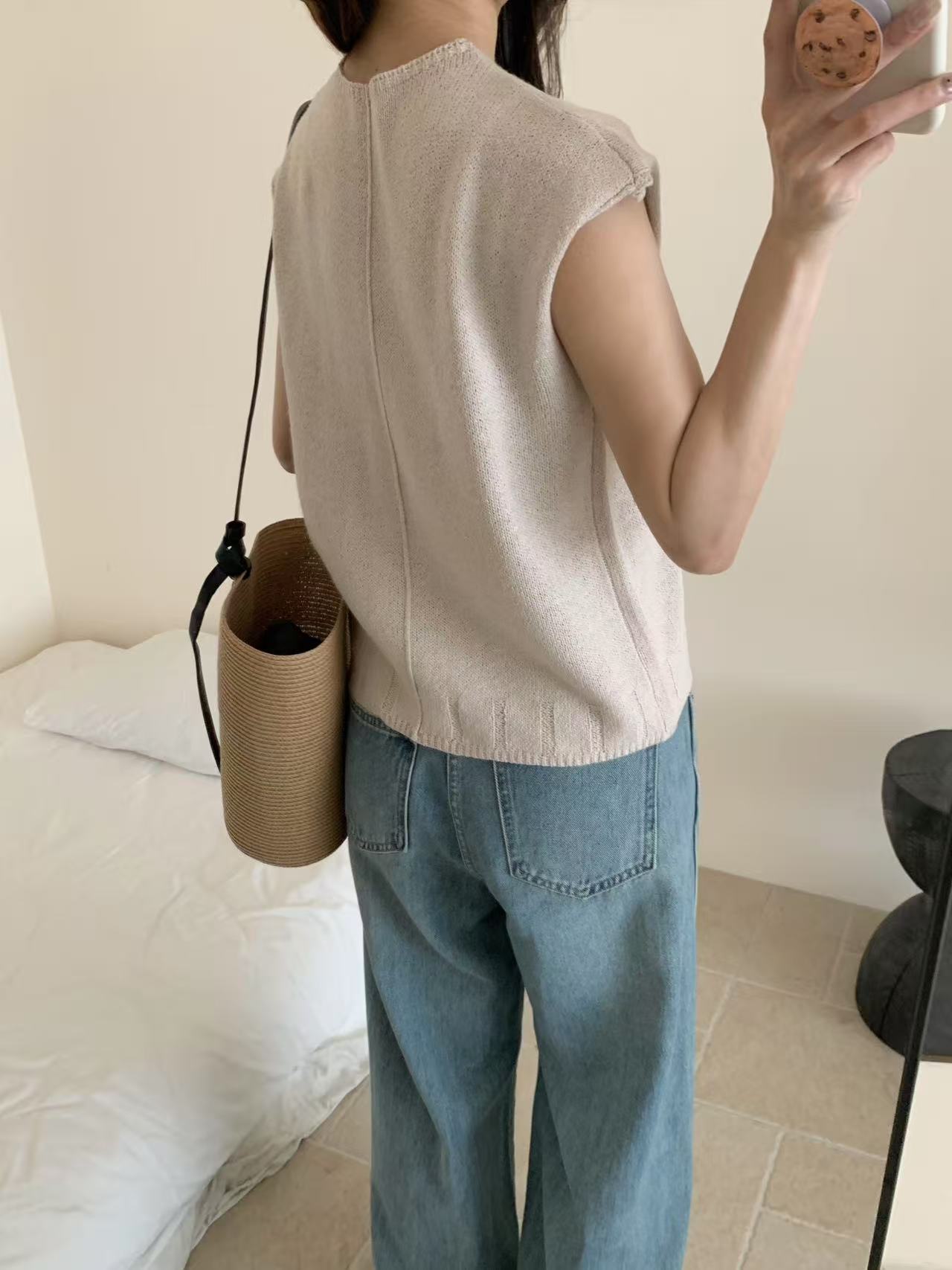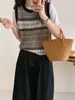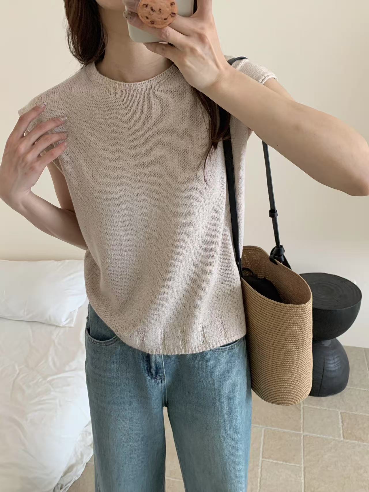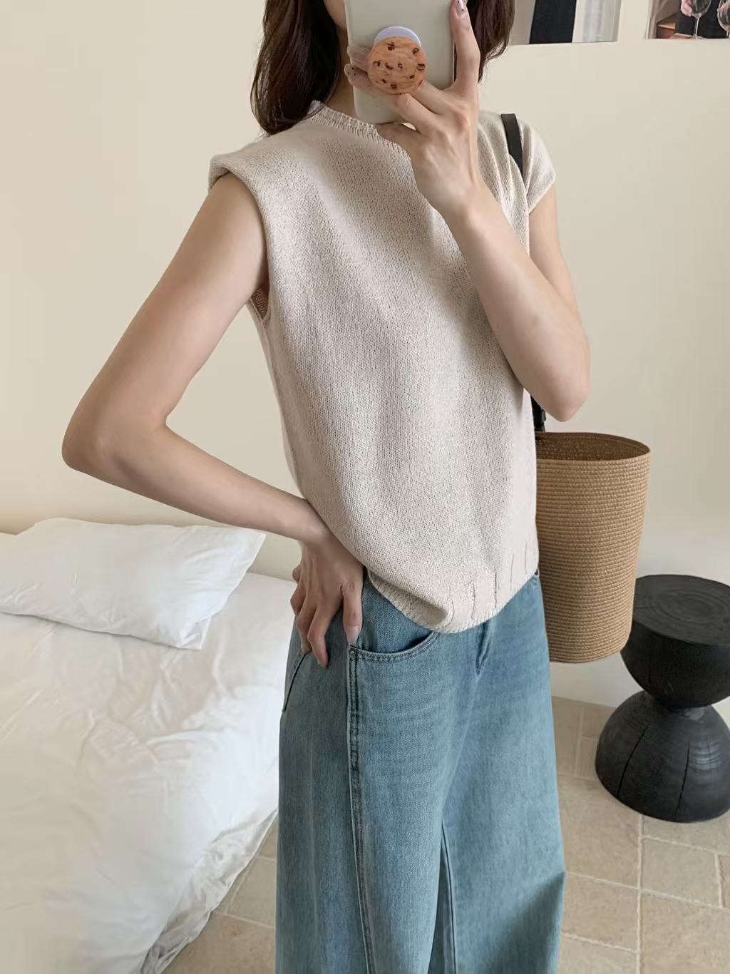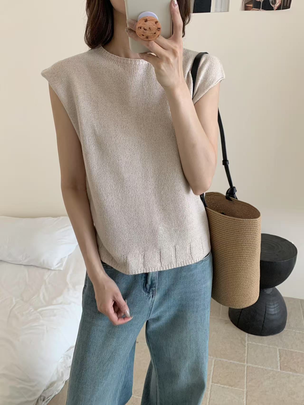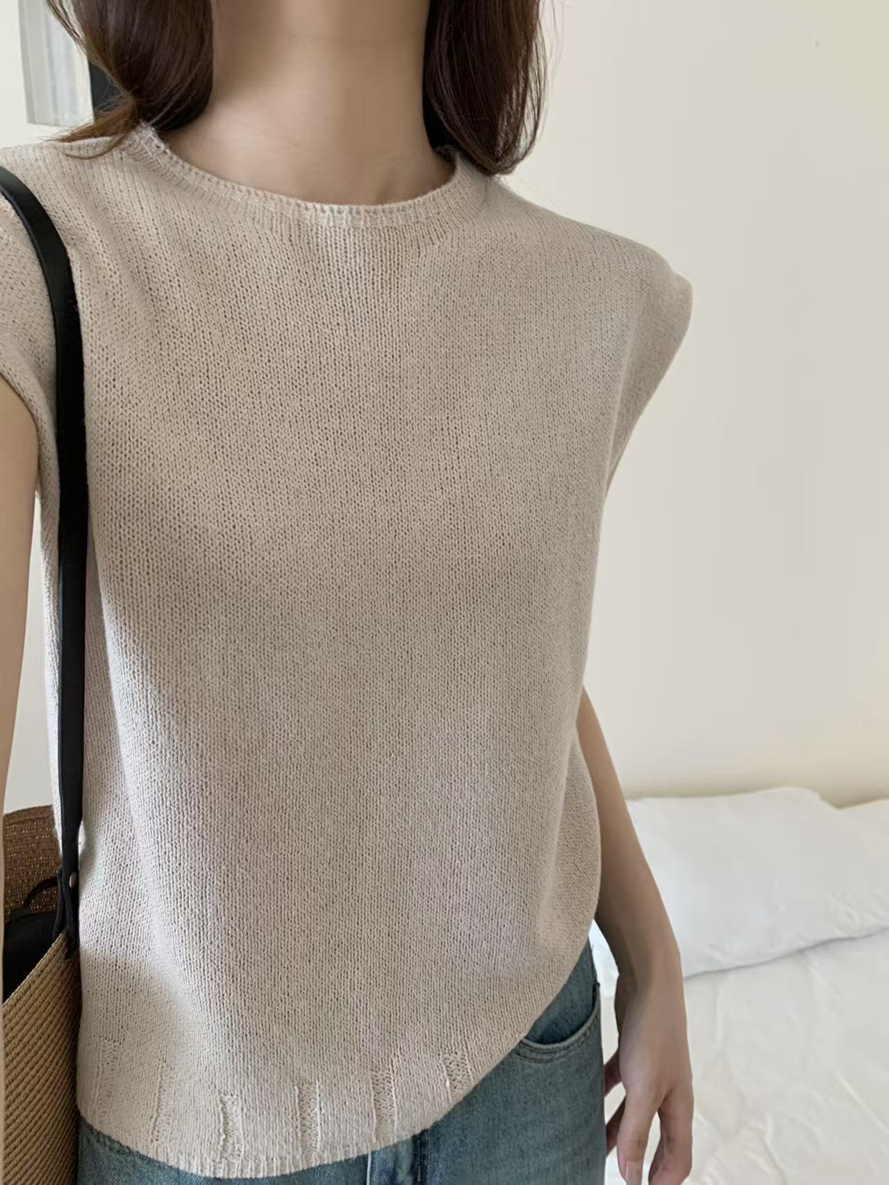 Versión Europea 2025 Nuevo Casual Versátil Albaricoque Cuello Redondo Chaleco Coreano Sin Mangas Punto