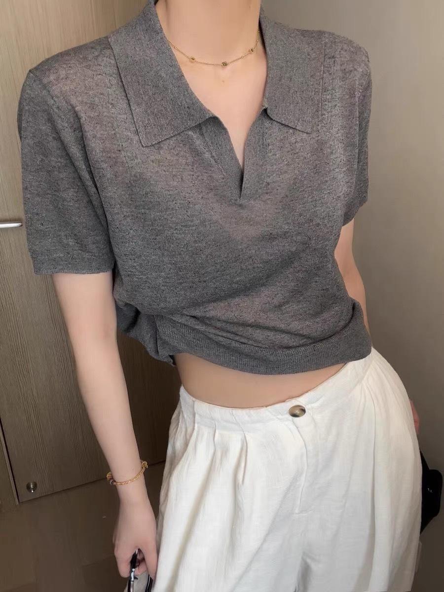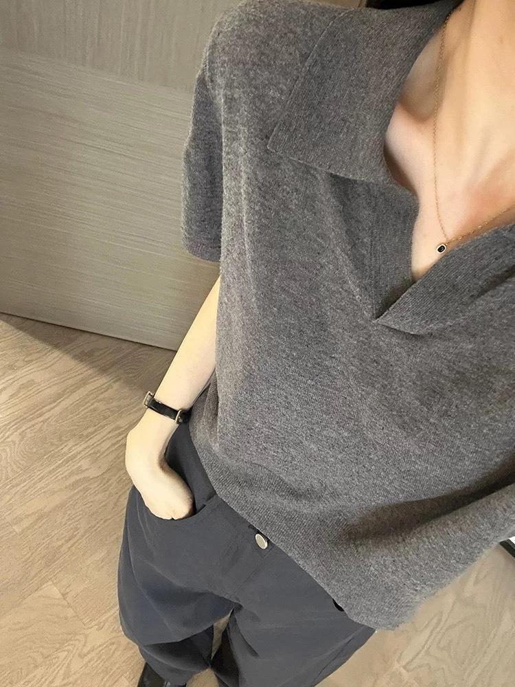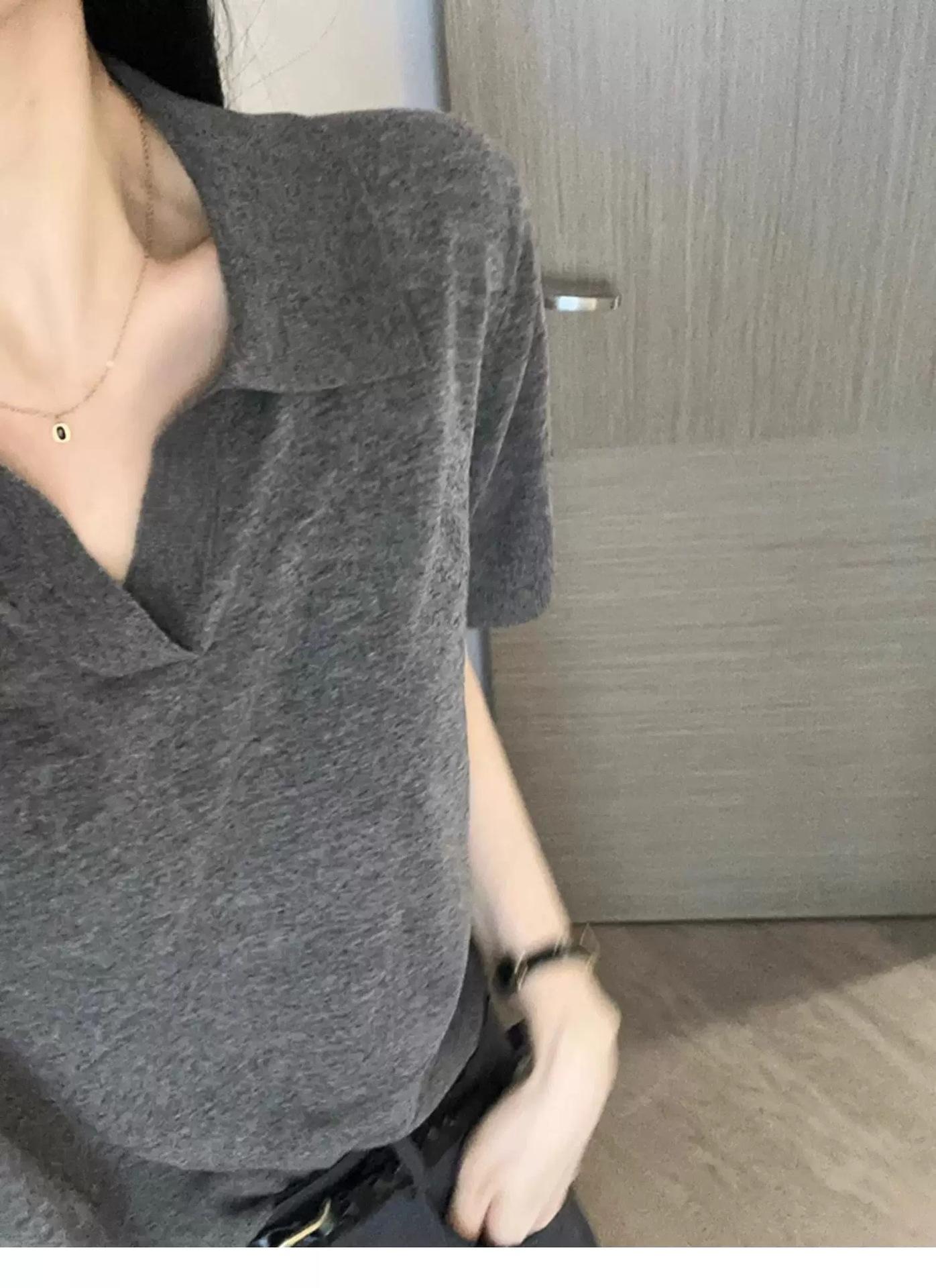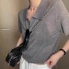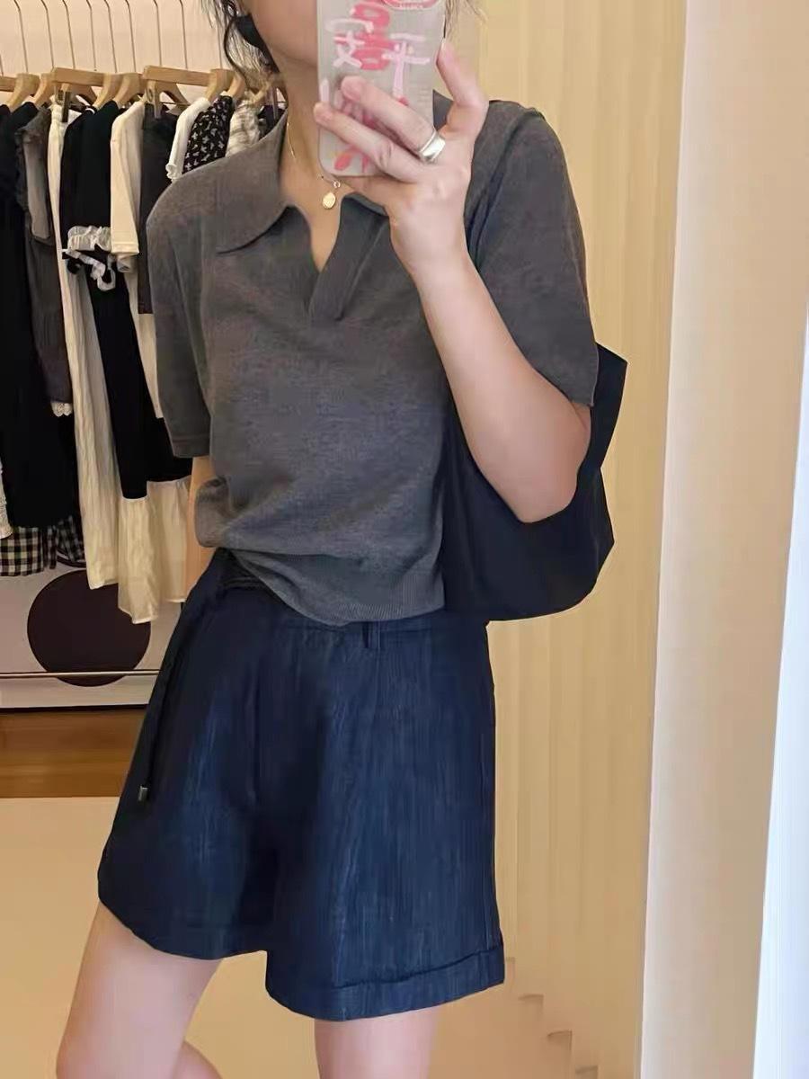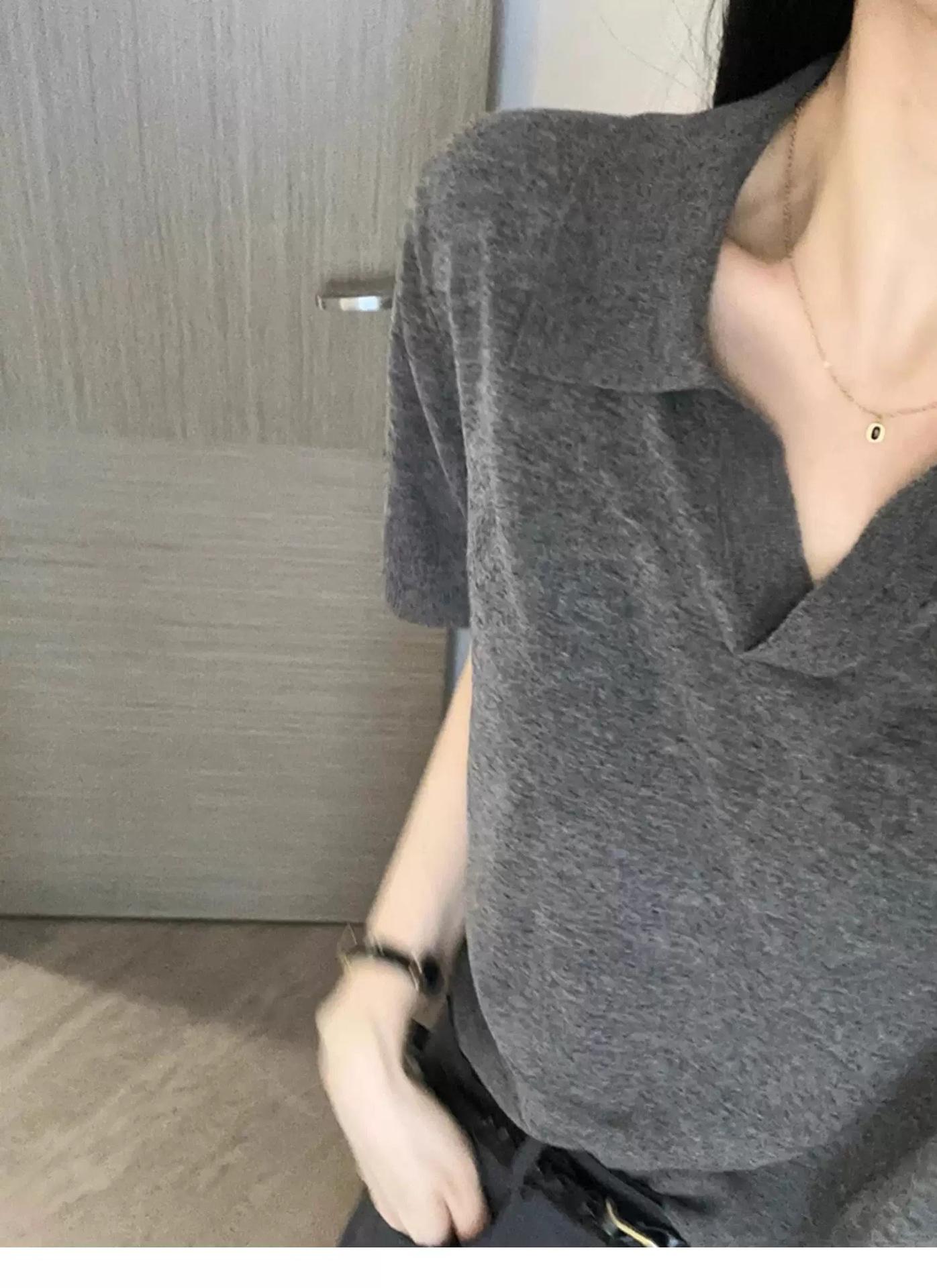 Camiseta de Manga Corta Estilo Francés para Mujer Verano Nuevo Estilo Lana Peinada Cuello Polo Camisa de Manga Corta para Mujer con Solapa Elegante Camisa de Manga Corta