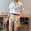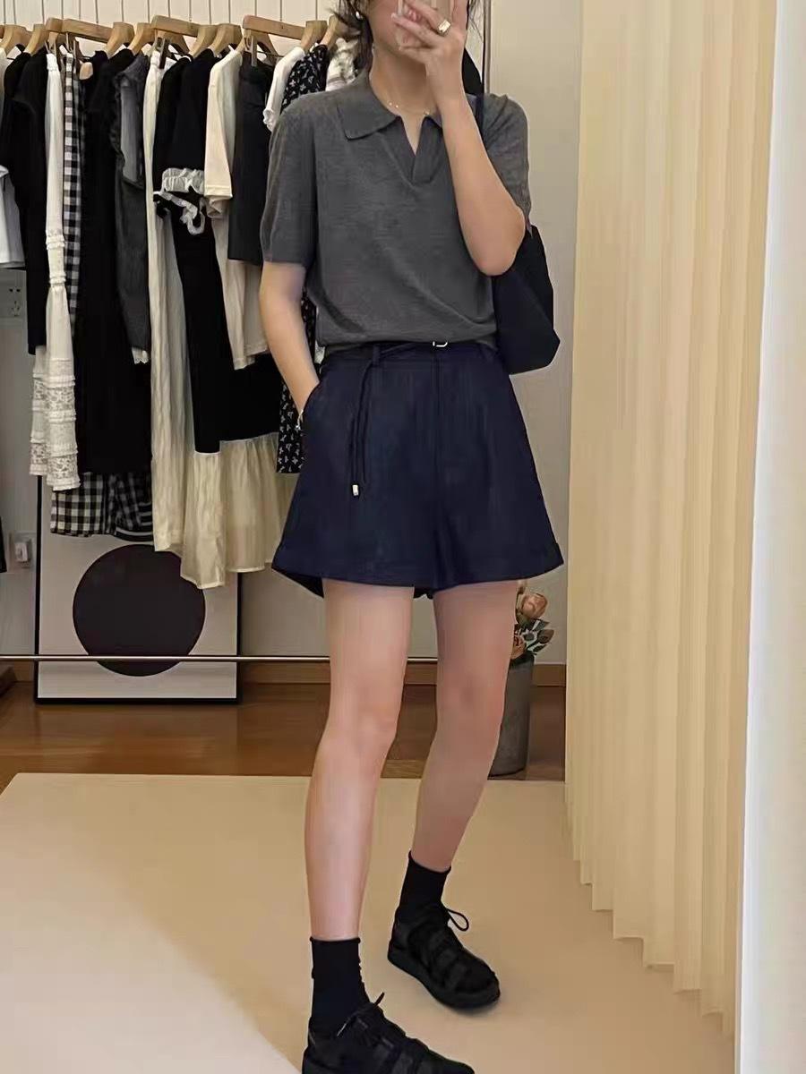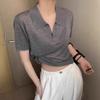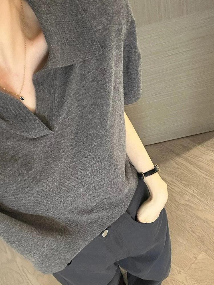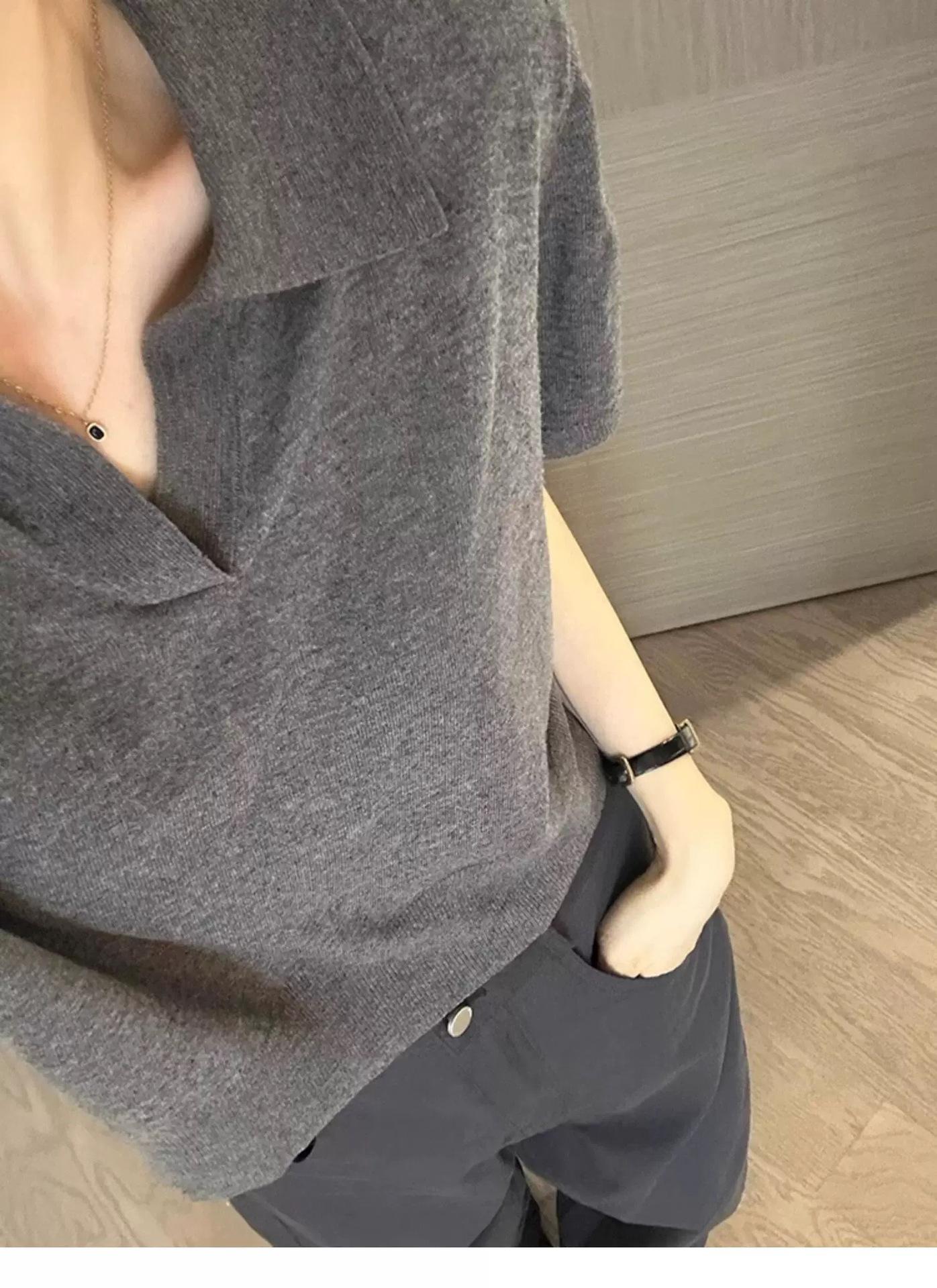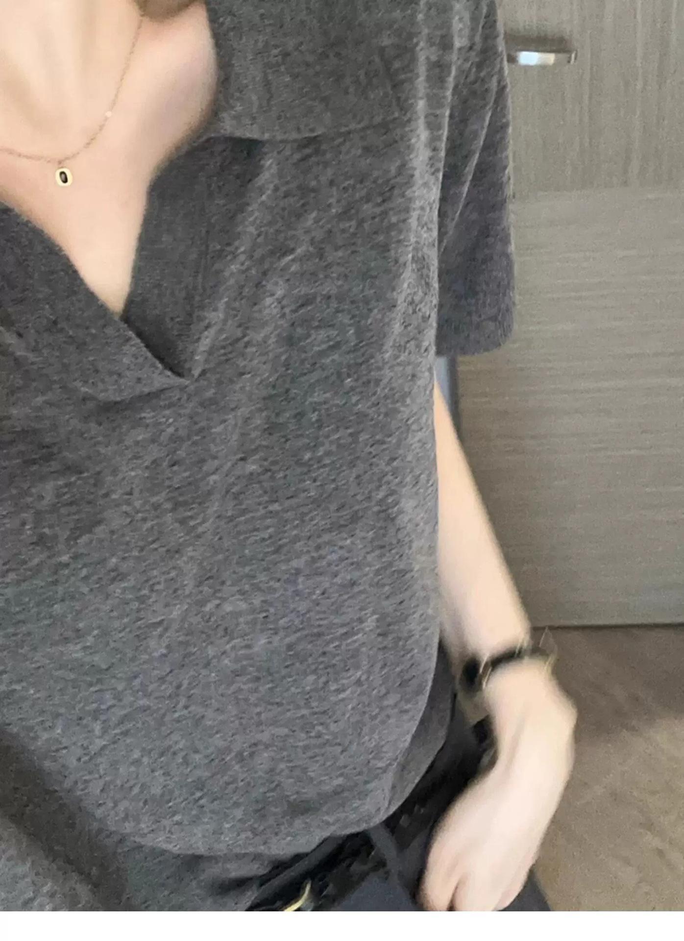 Camiseta de Manga Corta Estilo Francés para Mujer Verano Nuevo Estilo Lana Peinada Cuello Polo Camisa de Manga Corta para Mujer con Solapa Elegante Camisa de Manga Corta