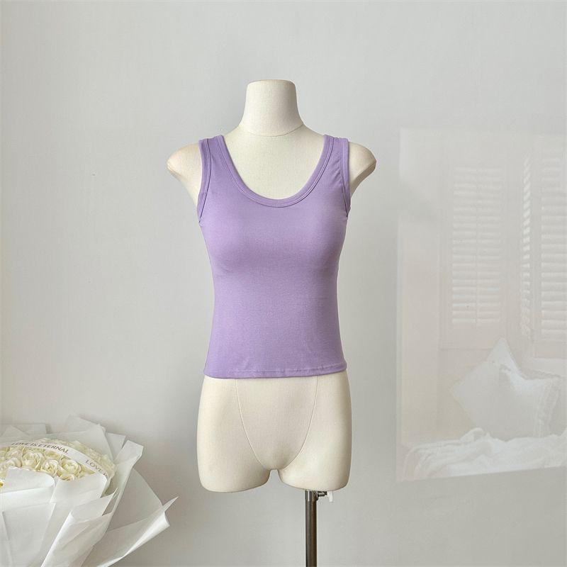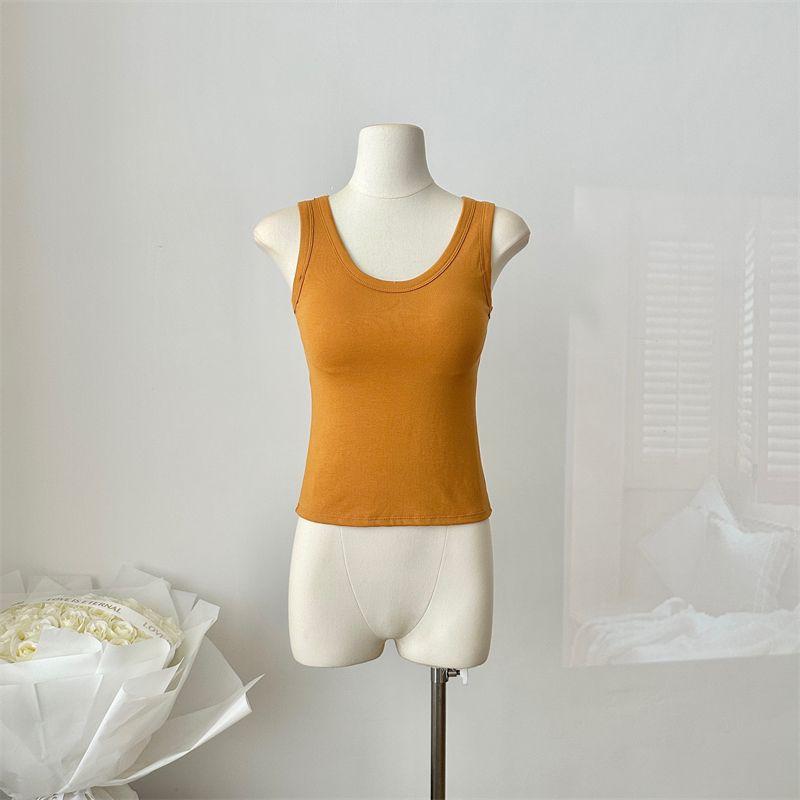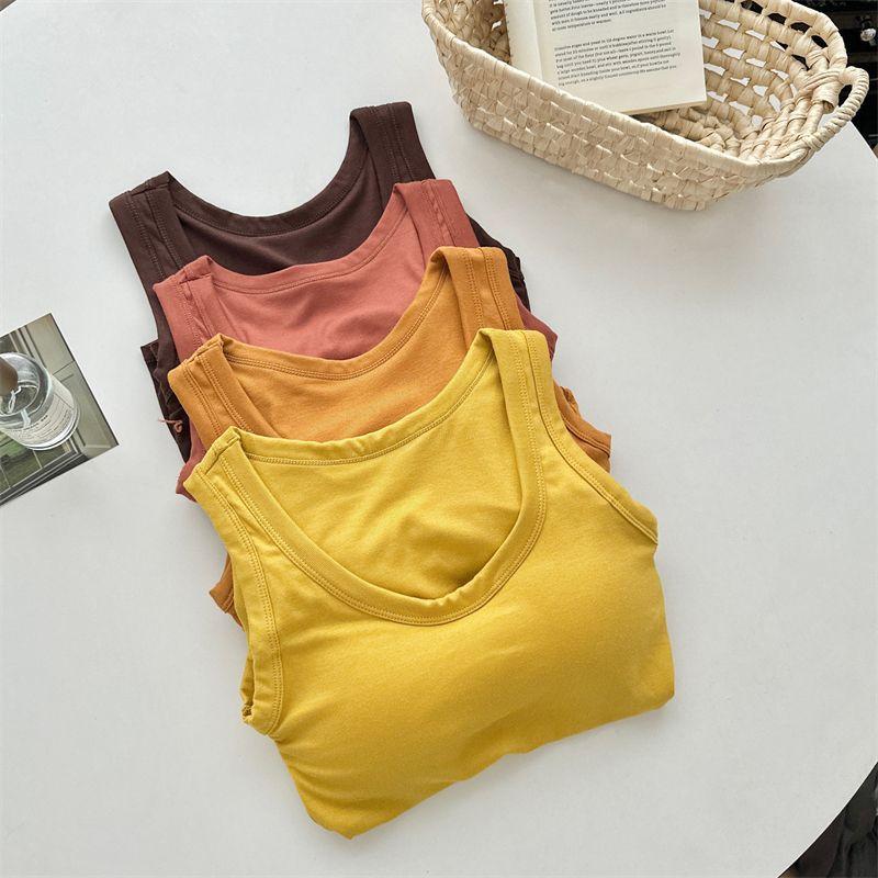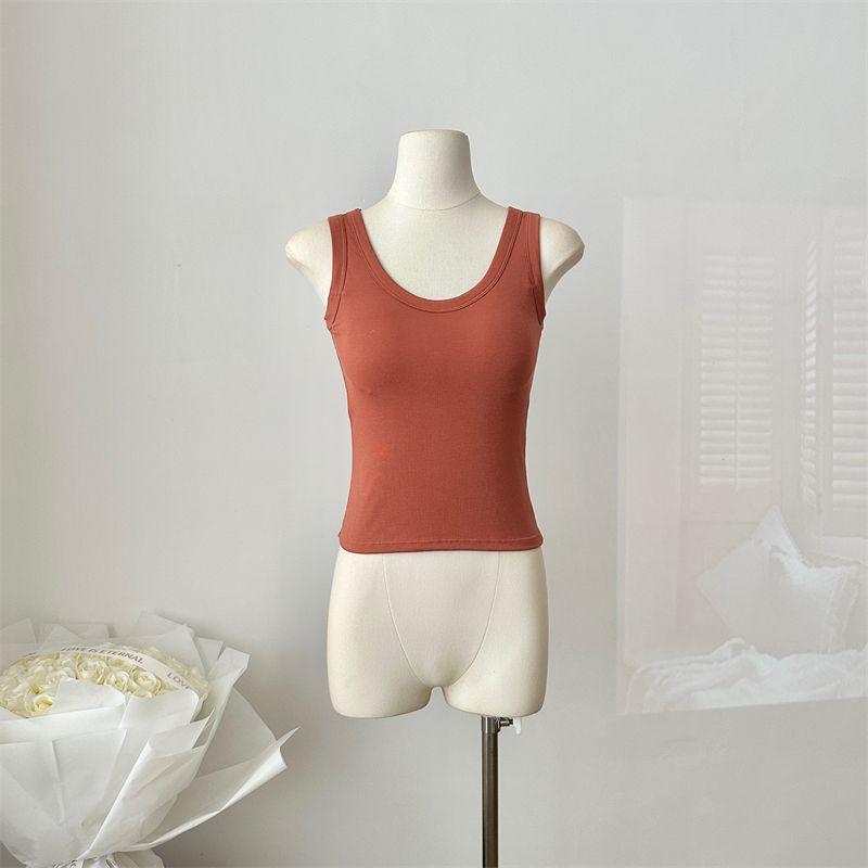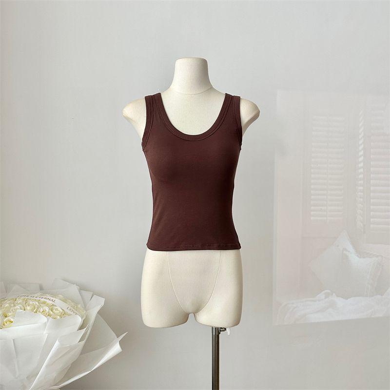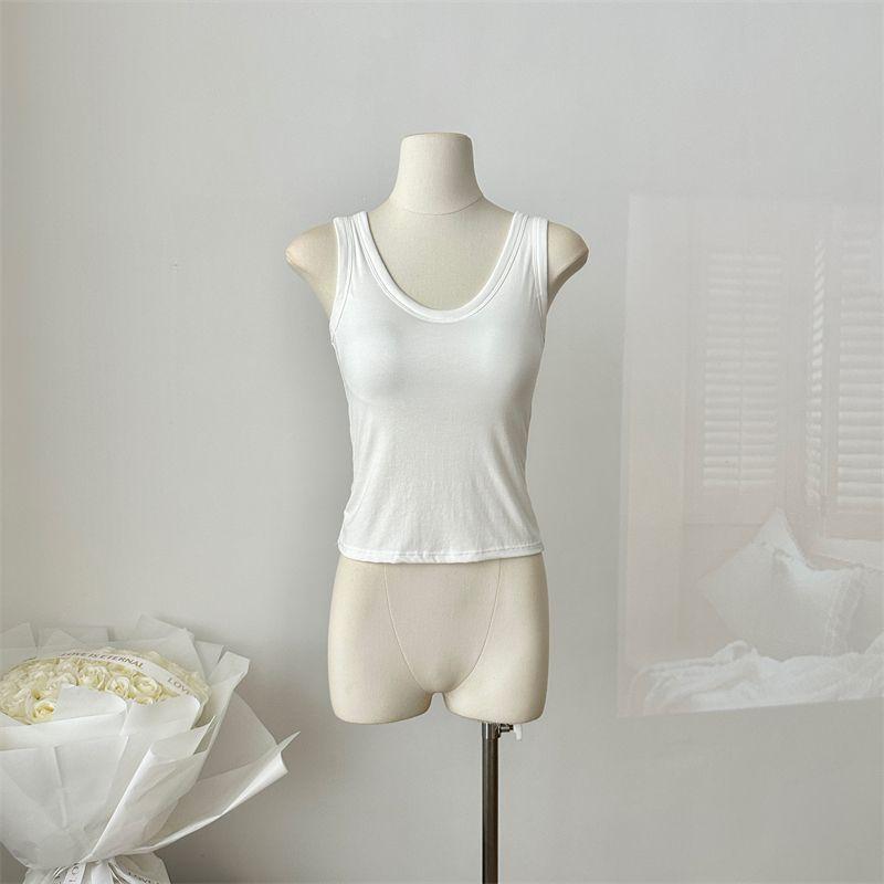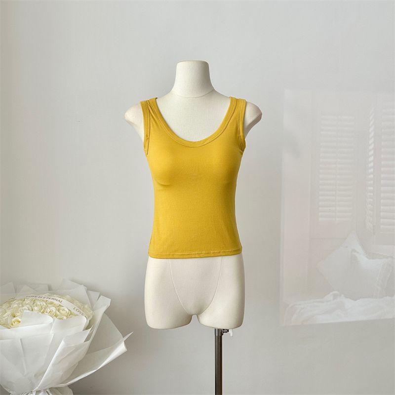 Camisola de Mujer Verano Nuevo Versátil Sin Mangas Camiseta Base Ajustada Ropa Exterior Adelgazante Top de Color Puro con Almohadilla en el Pecho Trendy