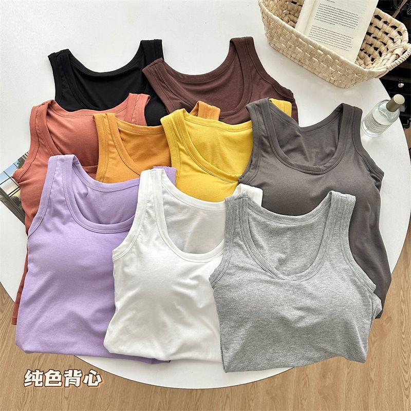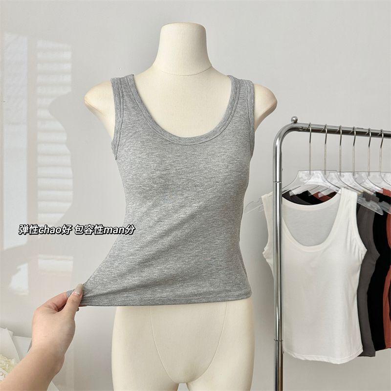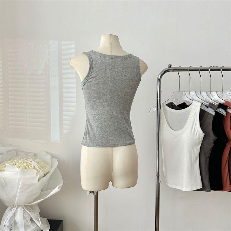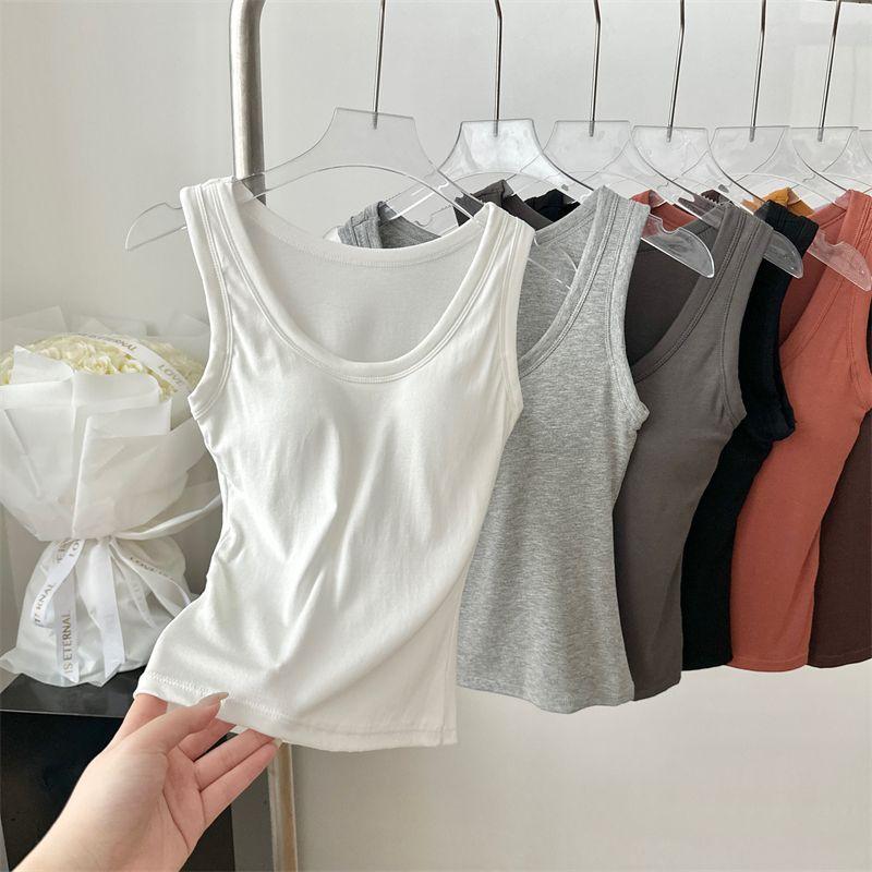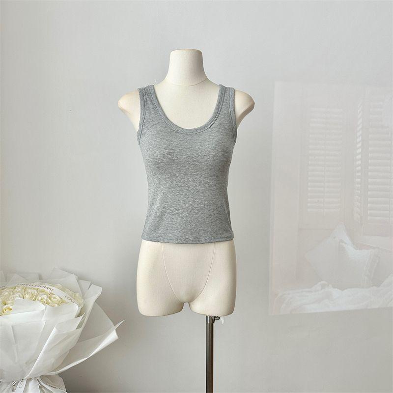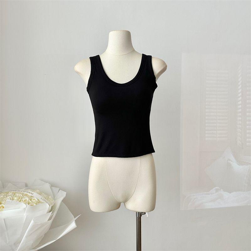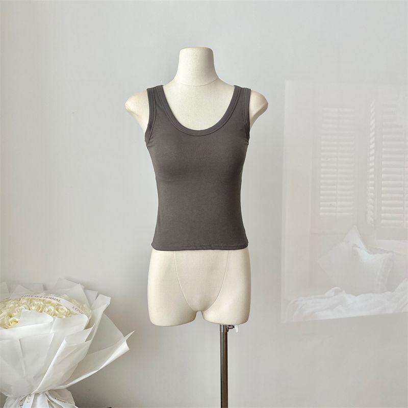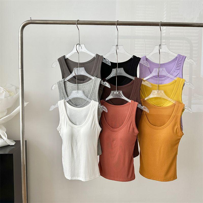 Camisola de Mujer Verano Nuevo Versátil Sin Mangas Camiseta Base Ajustada Ropa Exterior Adelgazante Top de Color Puro con Almohadilla en el Pecho Trendy