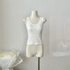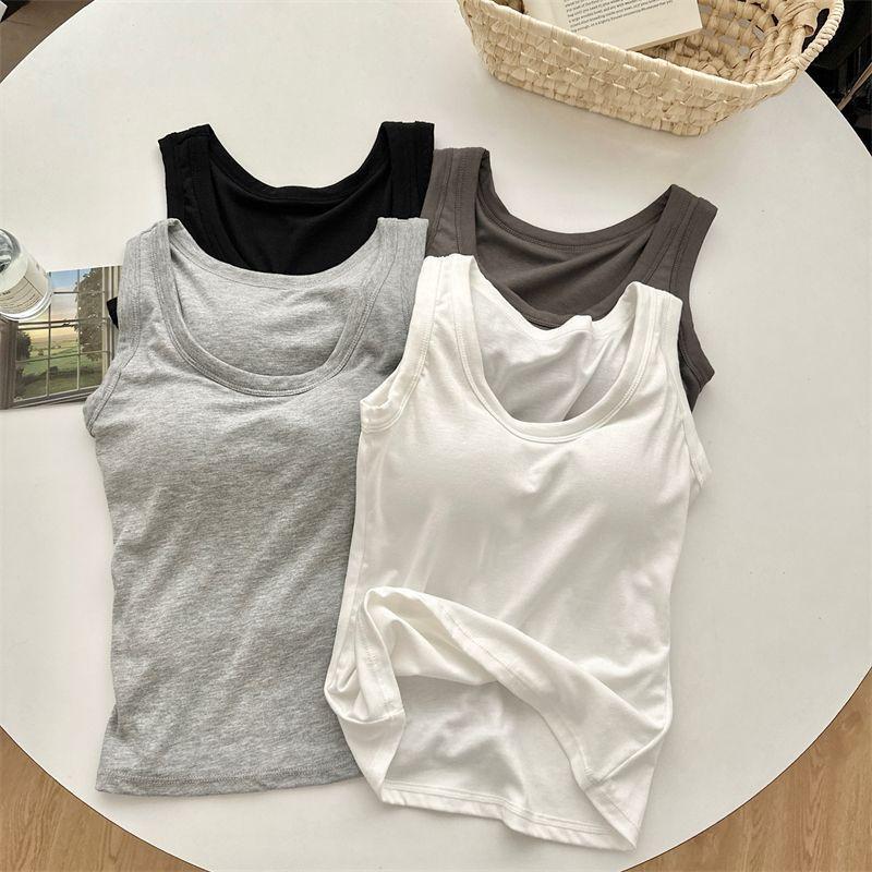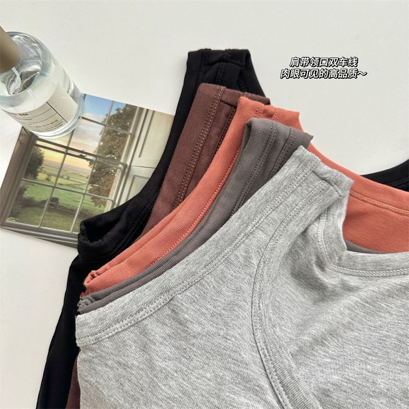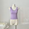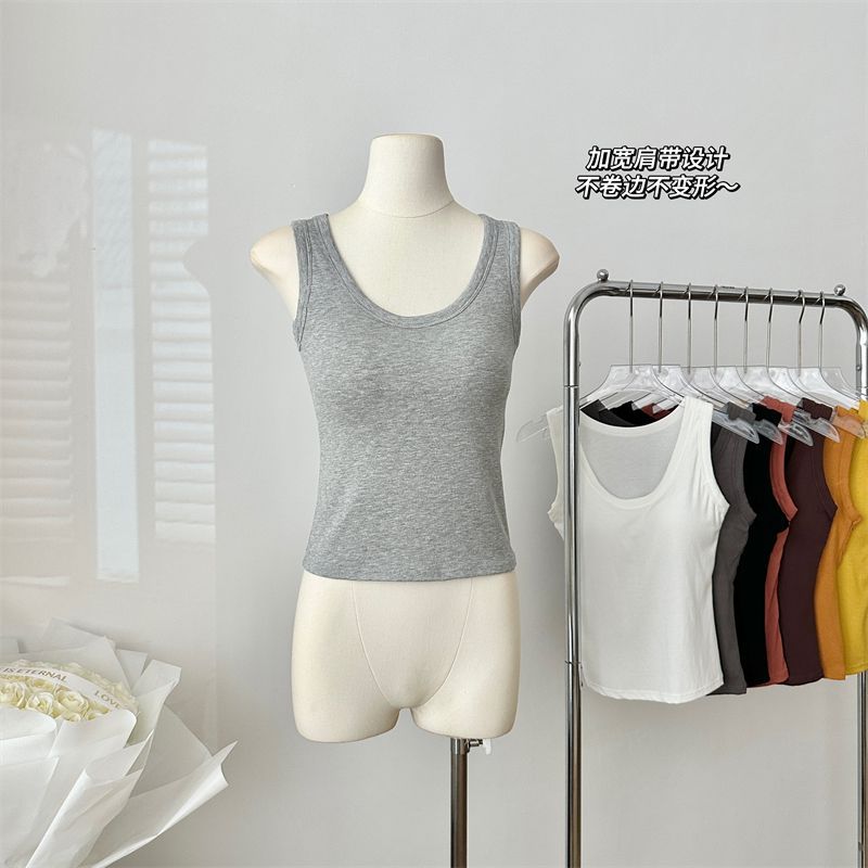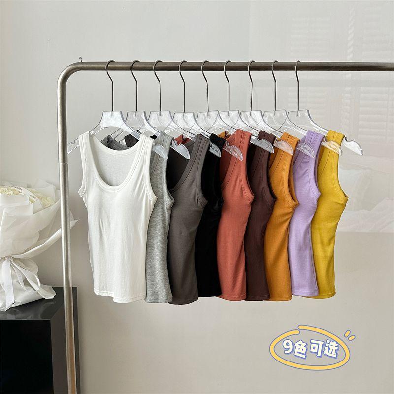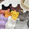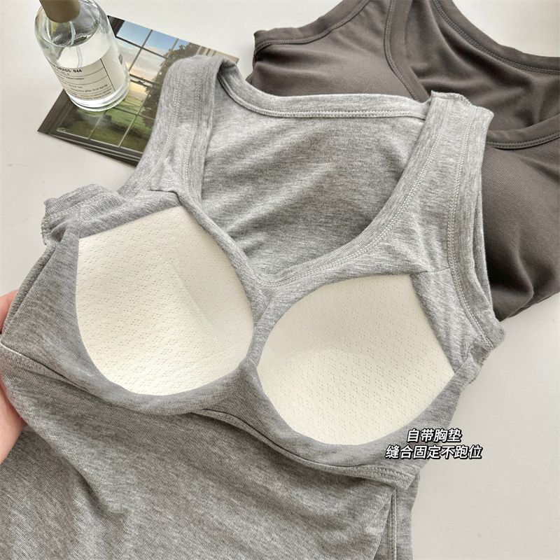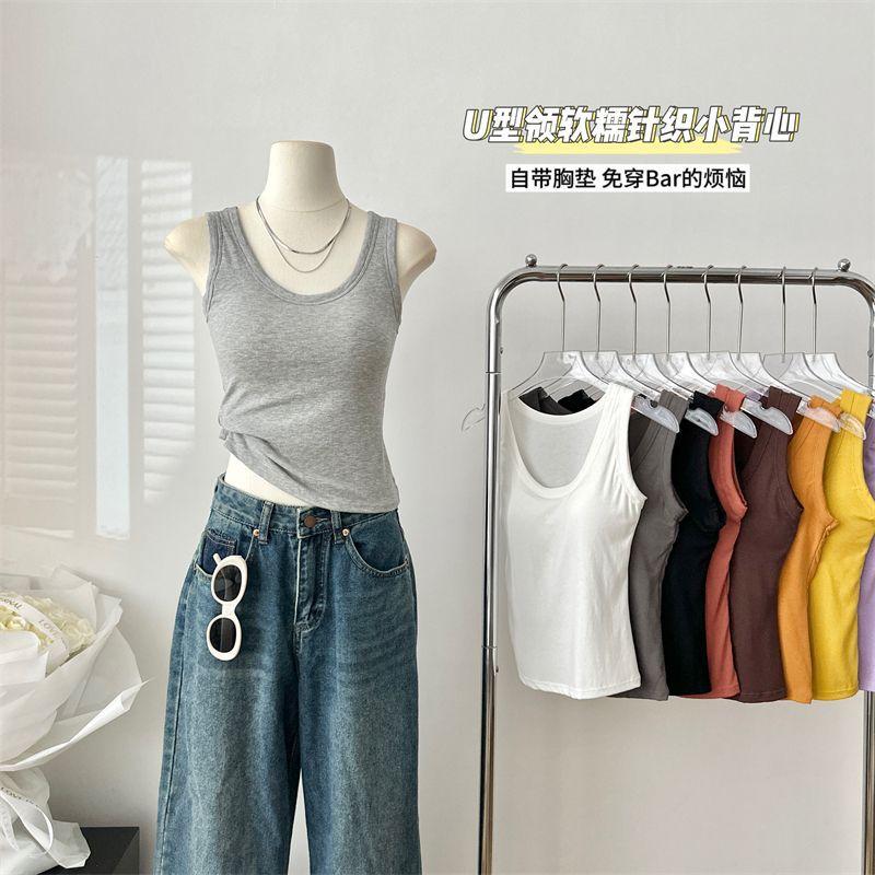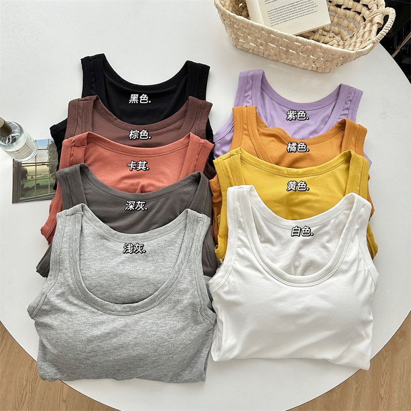Camisola de Mujer Verano Nuevo Versátil Sin Mangas Camiseta Base Ajustada Ropa Exterior Adelgazante Top de Color Puro con Almohadilla en el Pecho Trendy