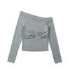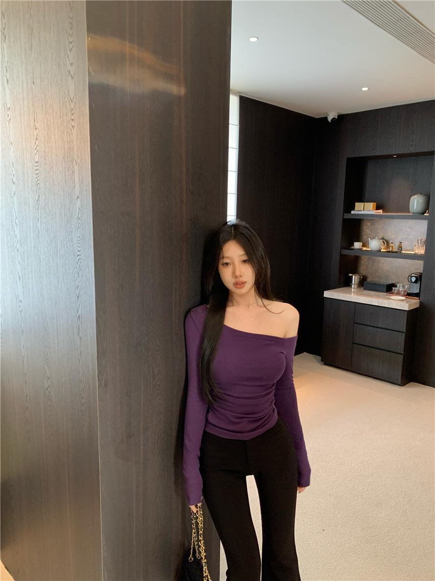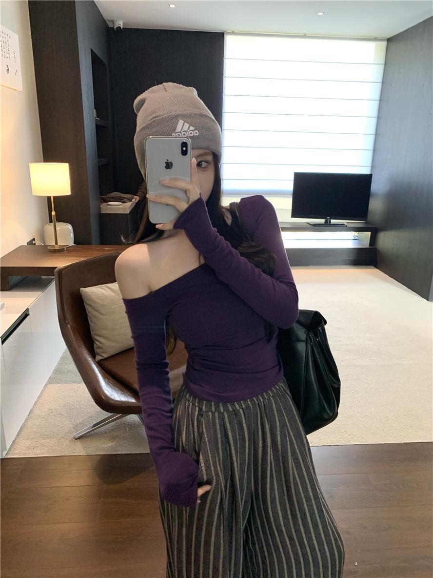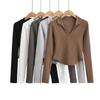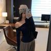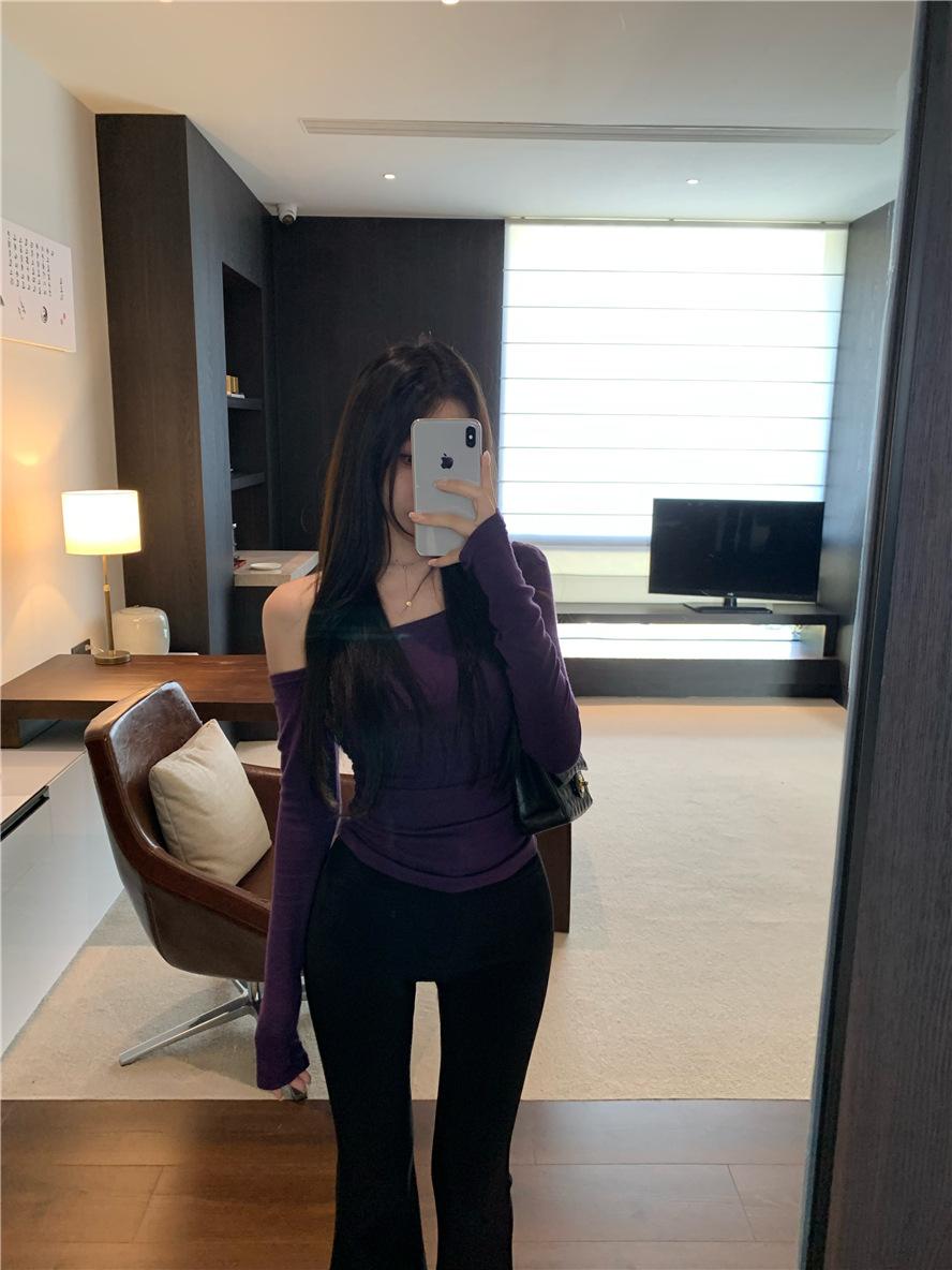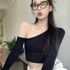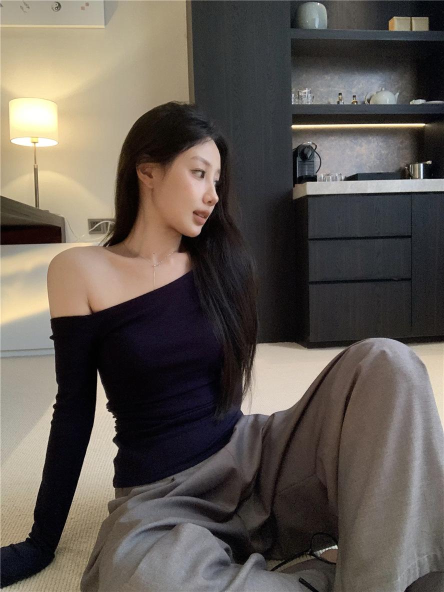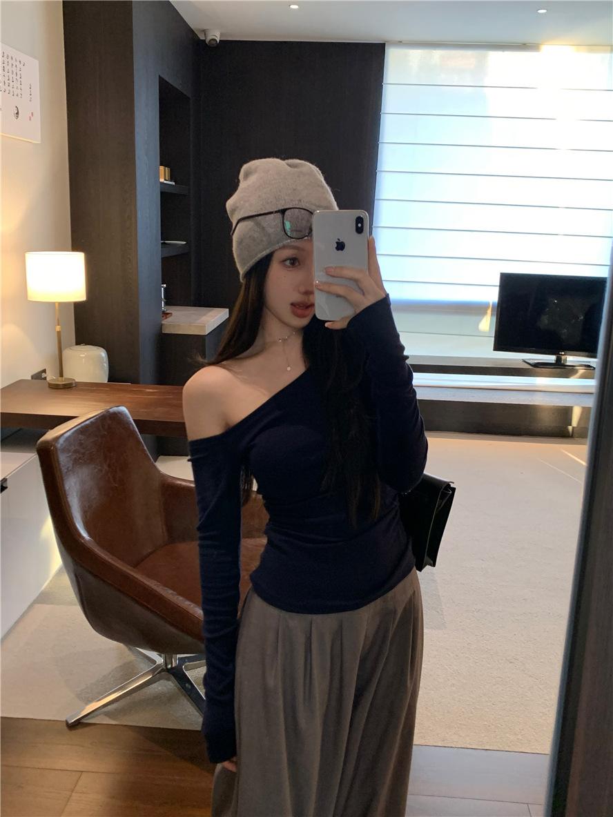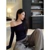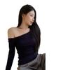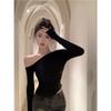 Camiseta de Manga Larga Ajustada al Cuerpo para Chicas Hot Otoño Temprano 2024 Nueva Moda Ajustada Nicho Combinación Total Top con Cuello Inclinado Mujeres Ins
