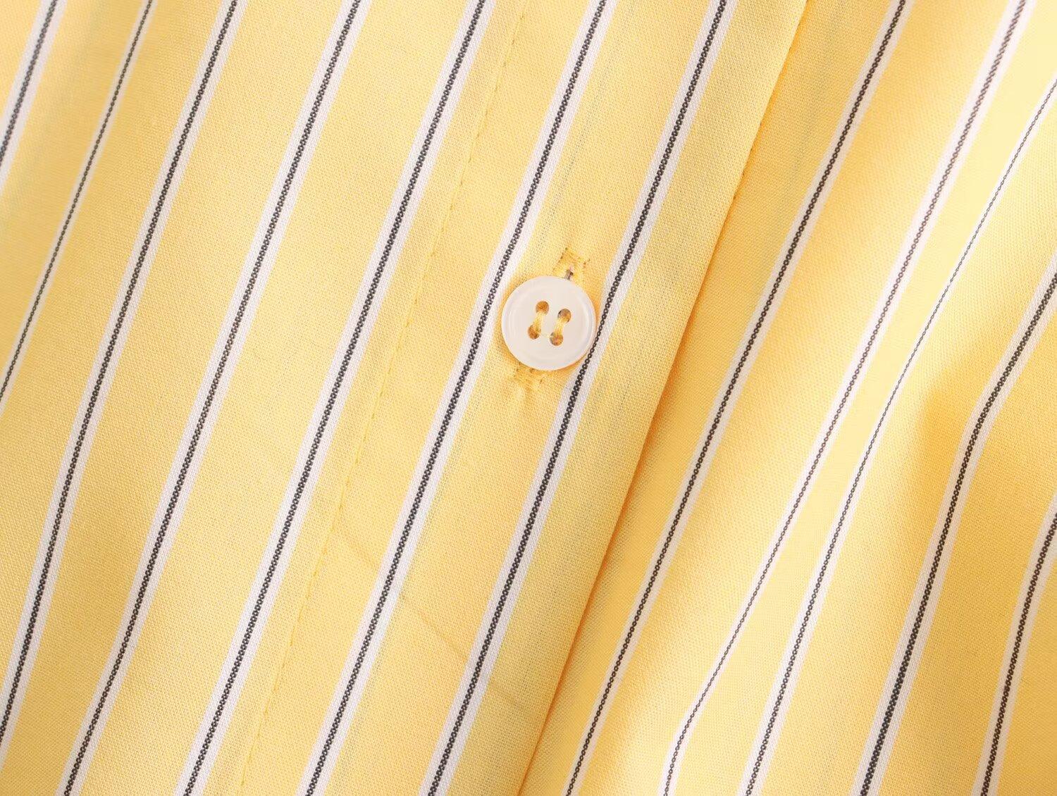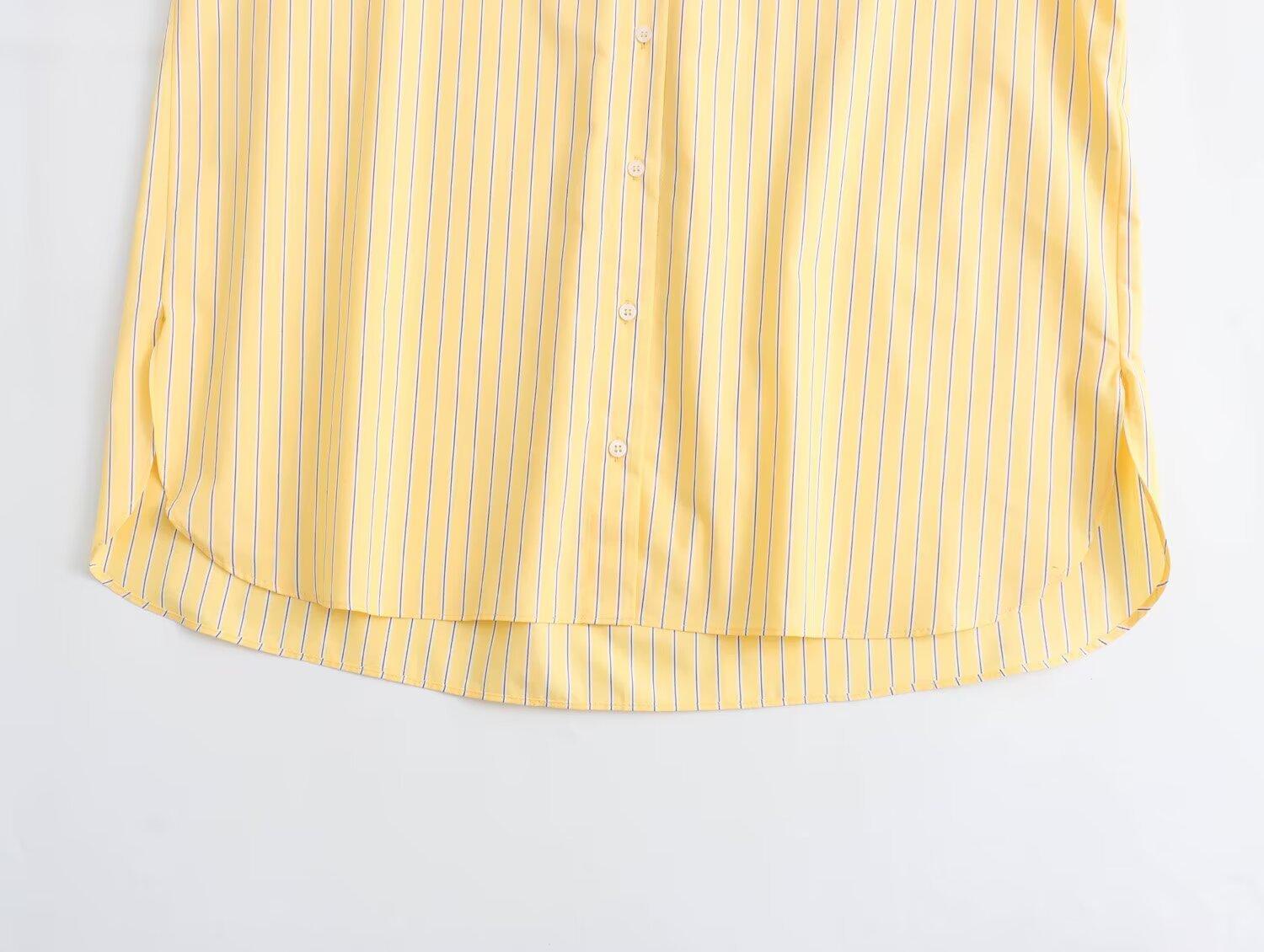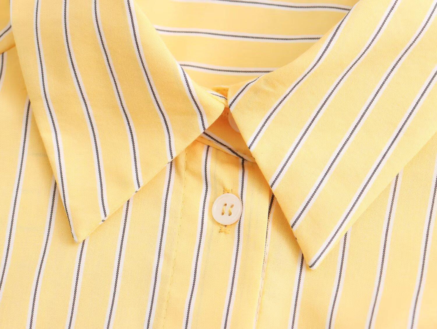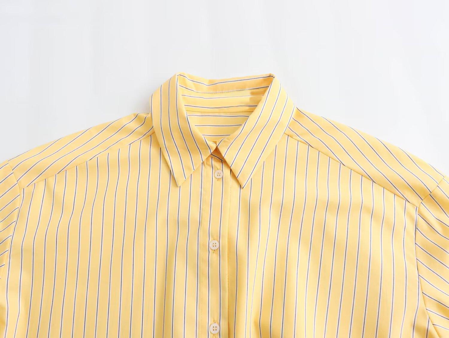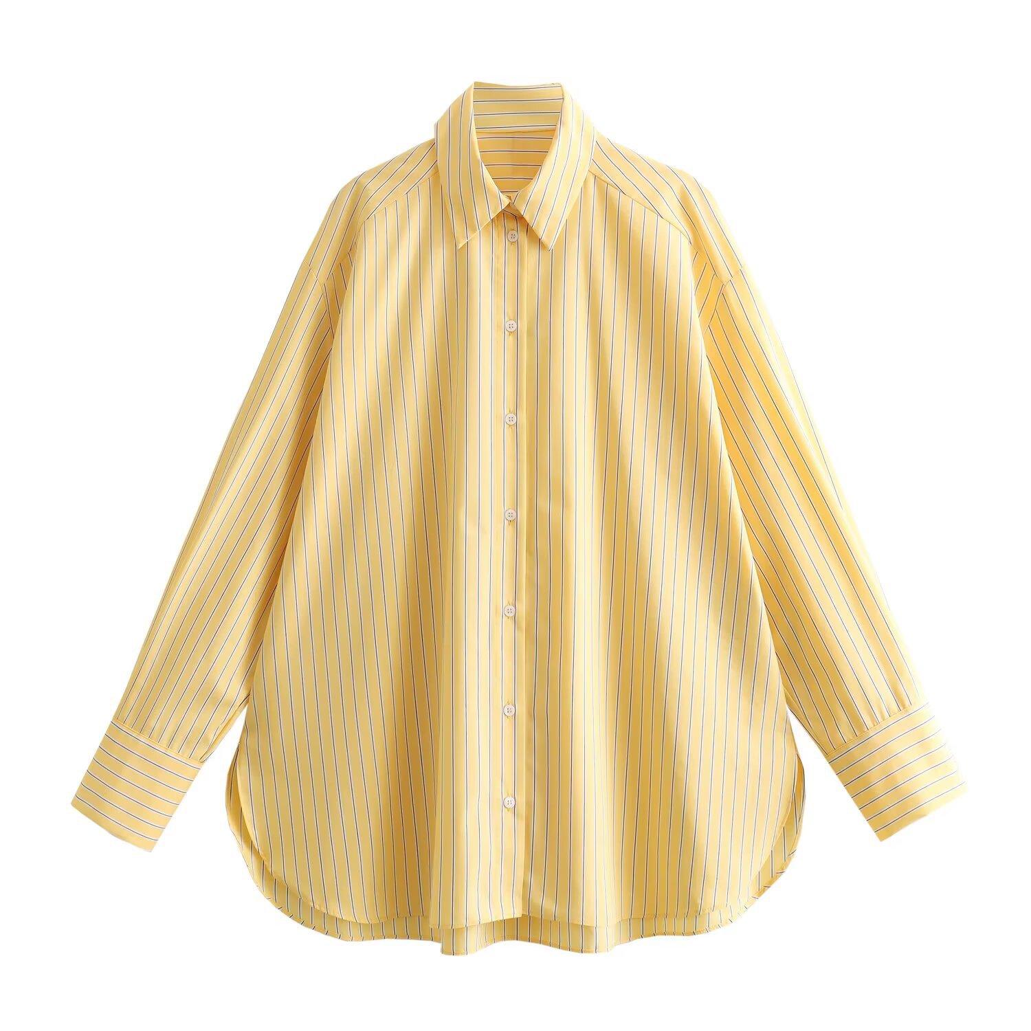 Exportación Transfronteriza Ropa de Mujer 2025 Verano Estilo Europeo y Americano Holgada Casual Solapa Manga Larga Camisa a Rayas Tops para Mujer K52436