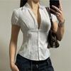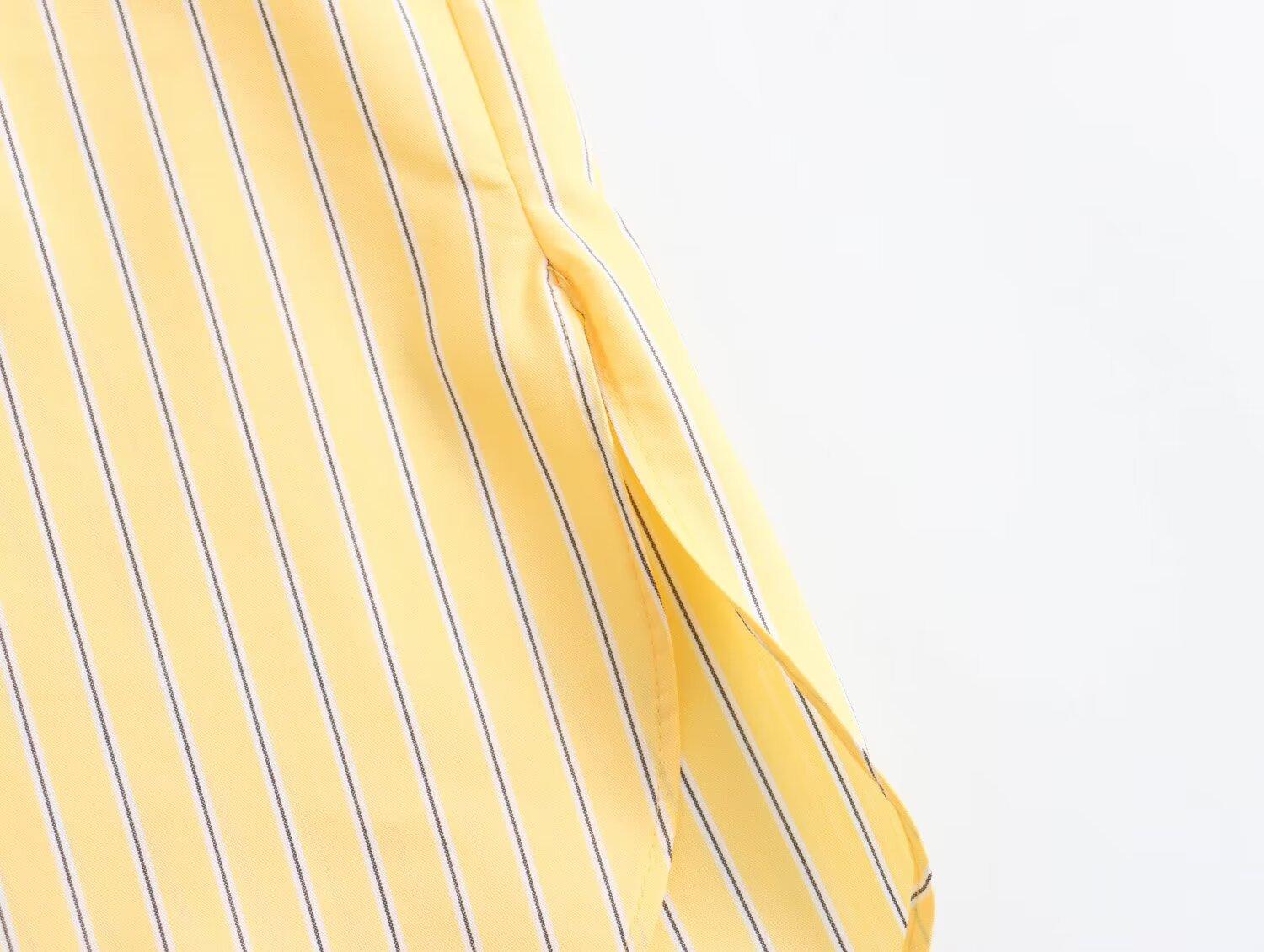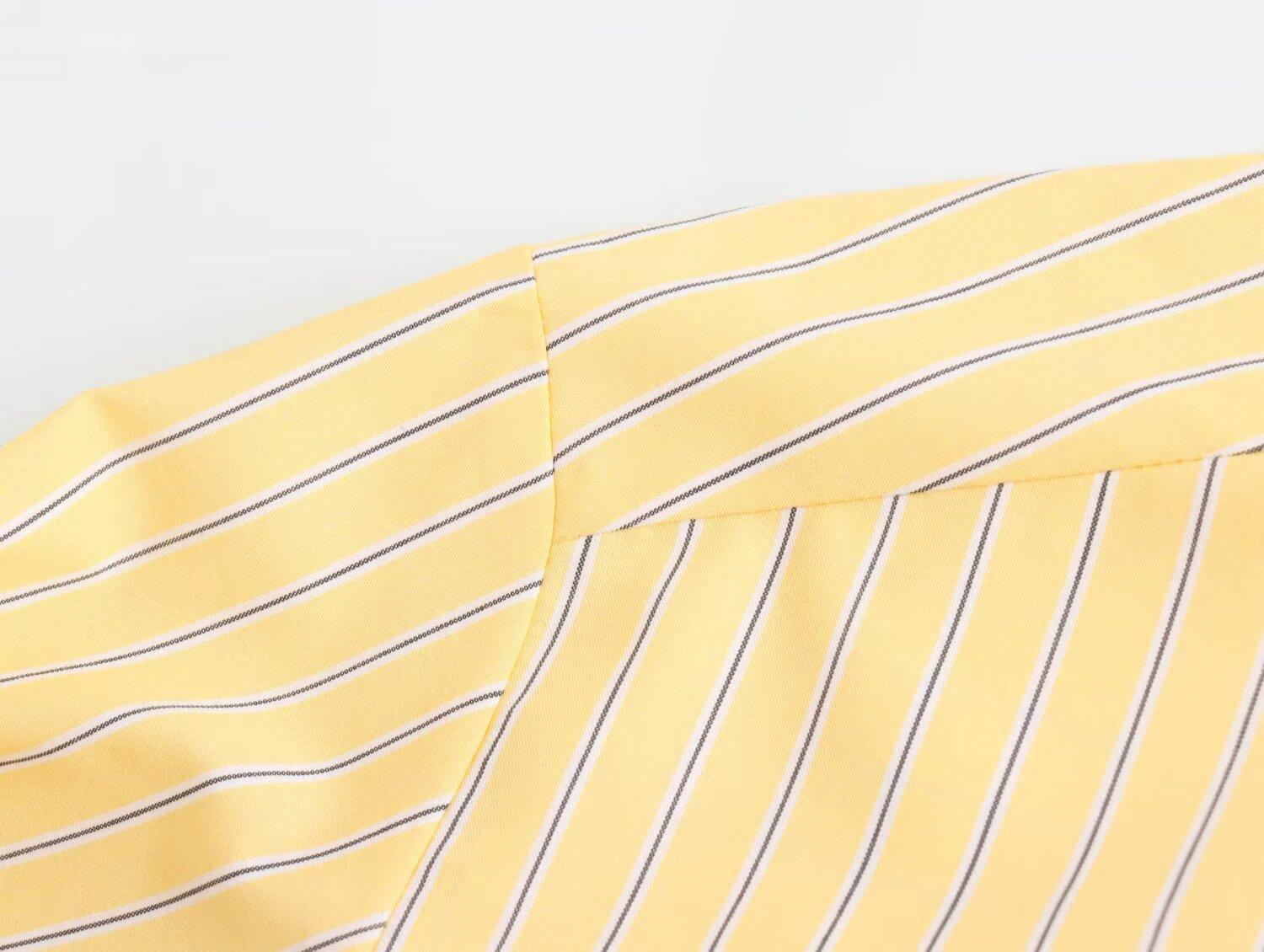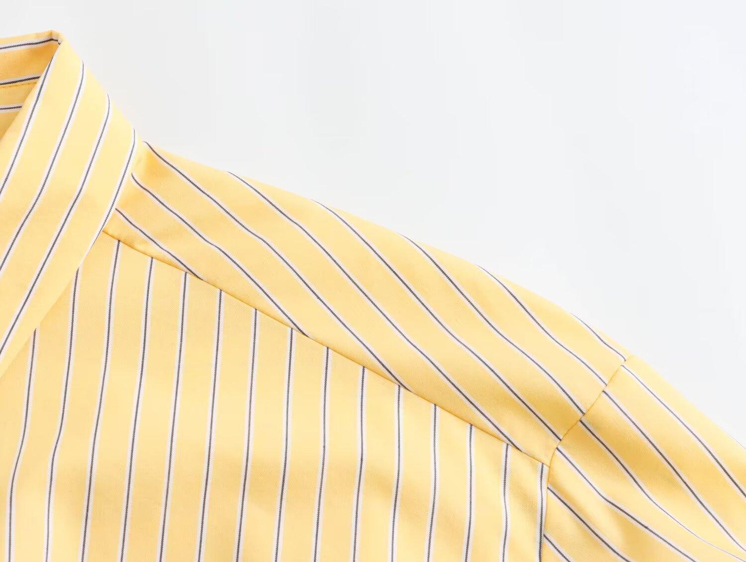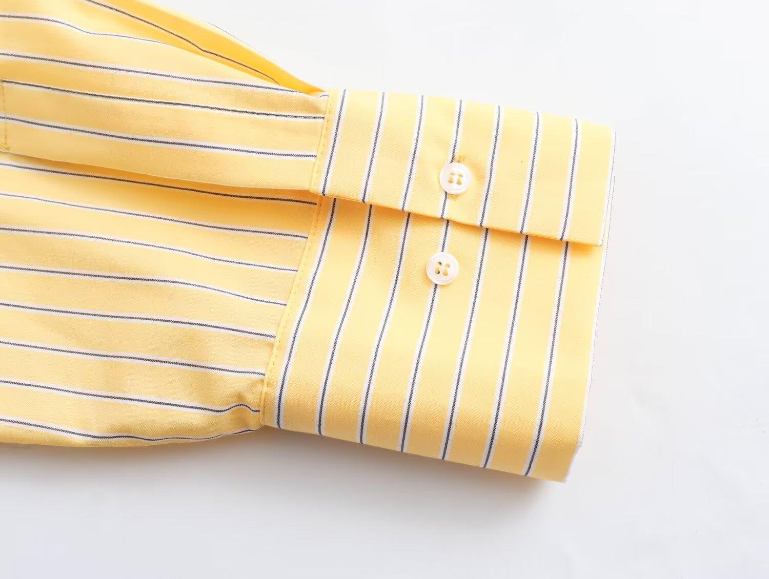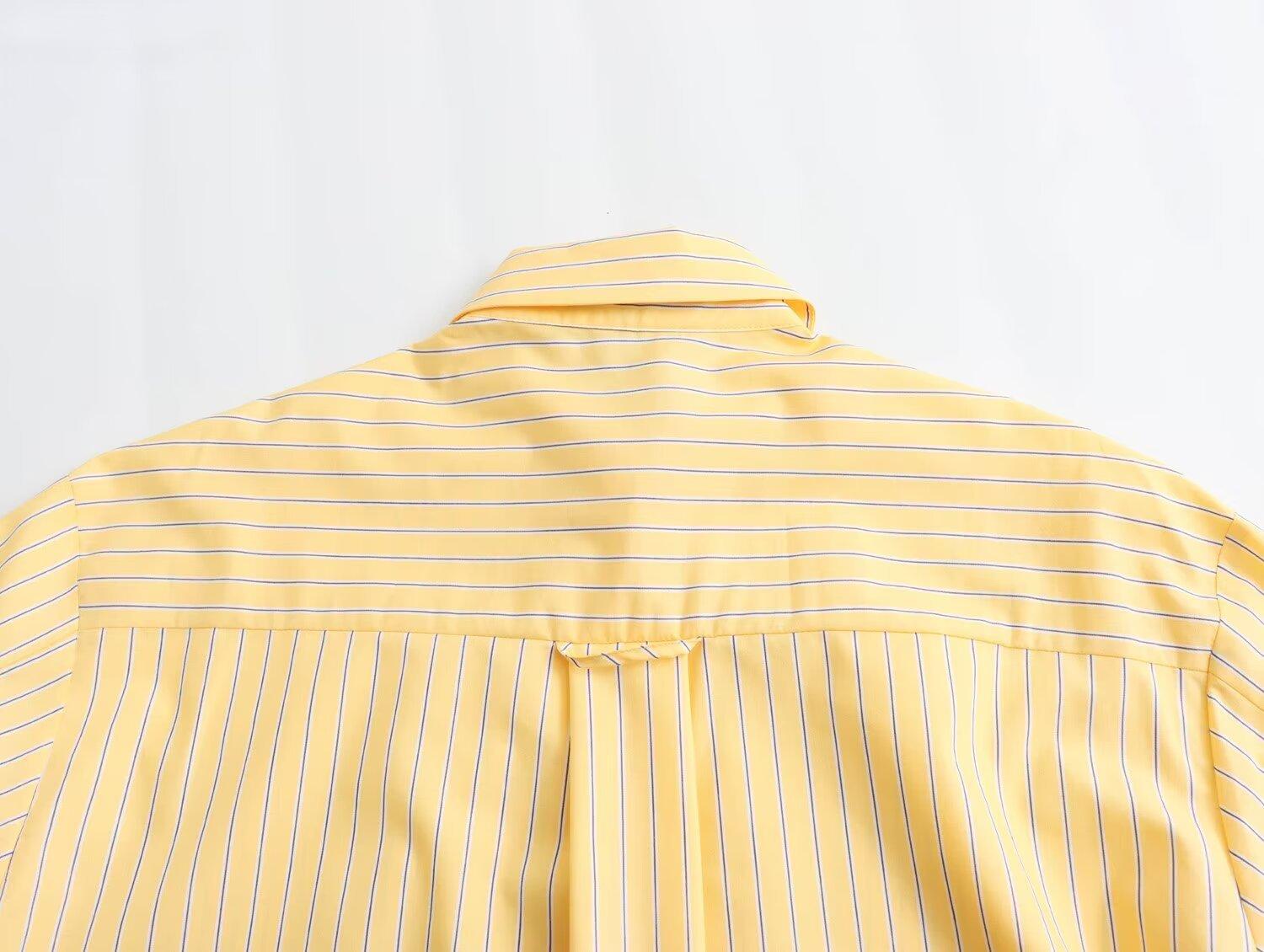 Exportación Transfronteriza Ropa de Mujer 2025 Verano Estilo Europeo y Americano Holgada Casual Solapa Manga Larga Camisa a Rayas Tops para Mujer K52436