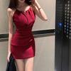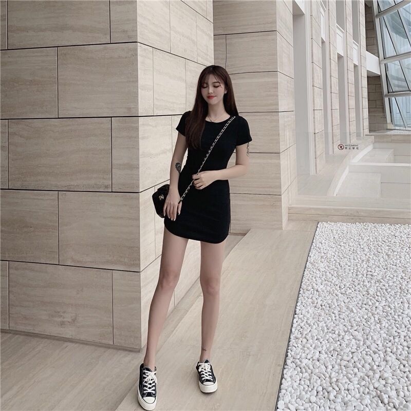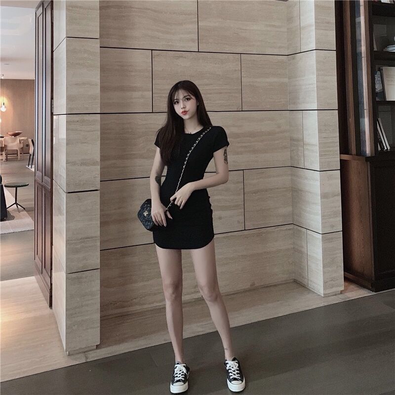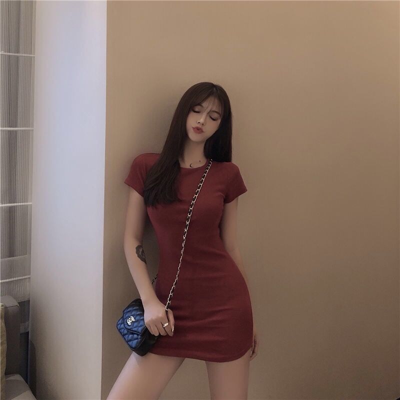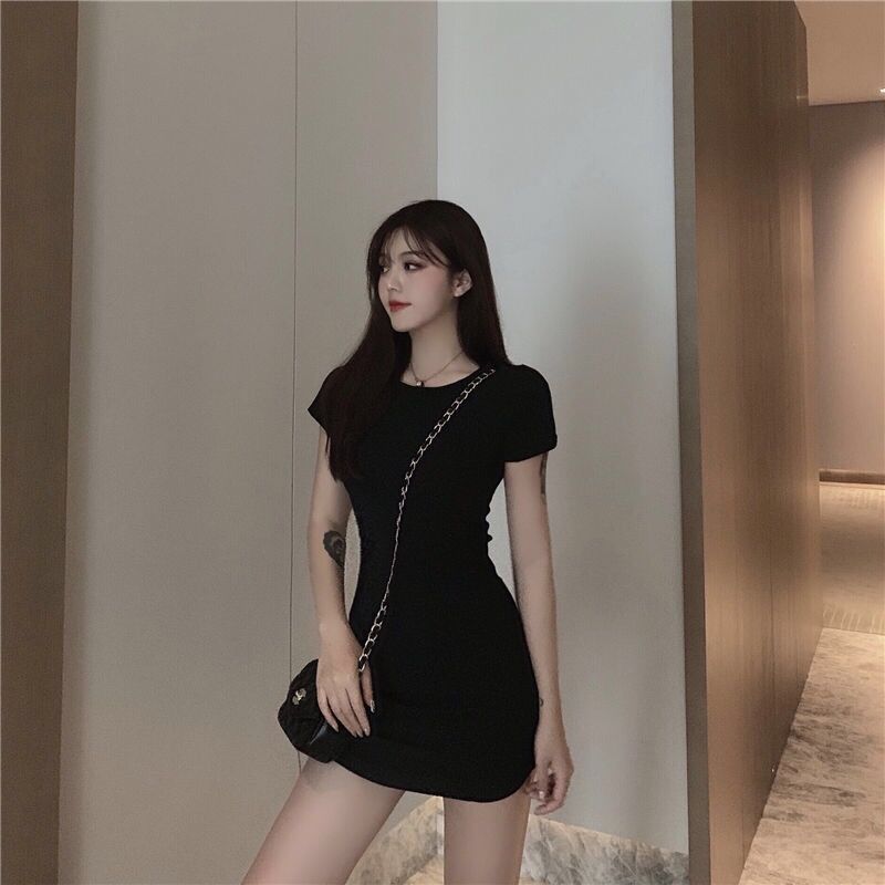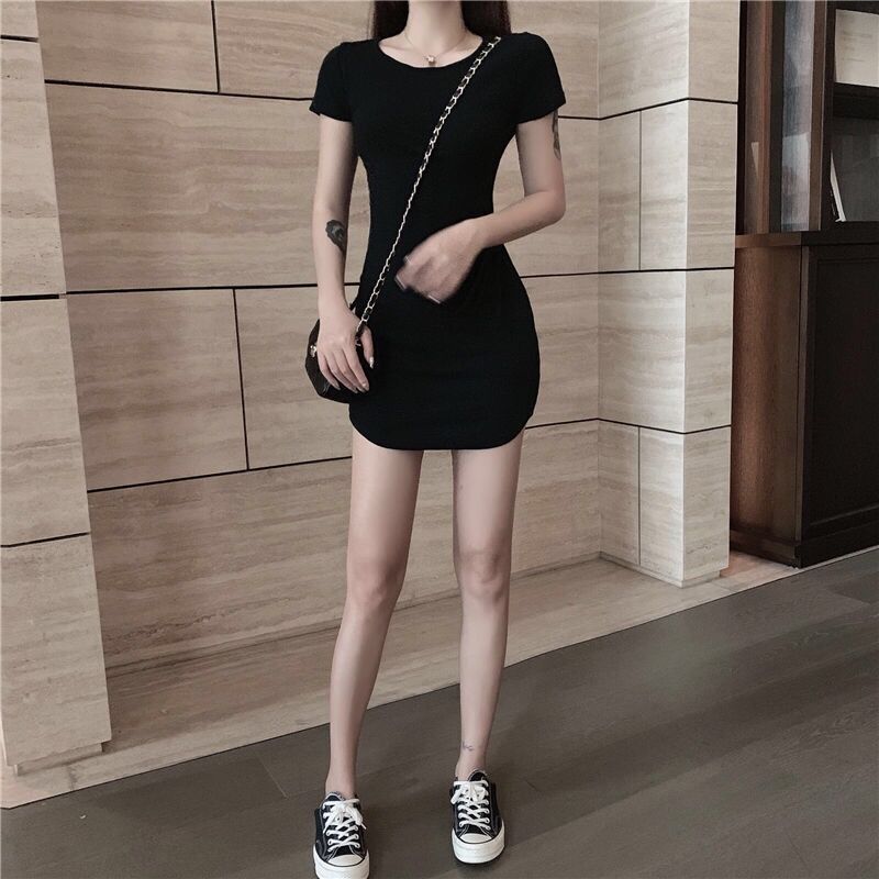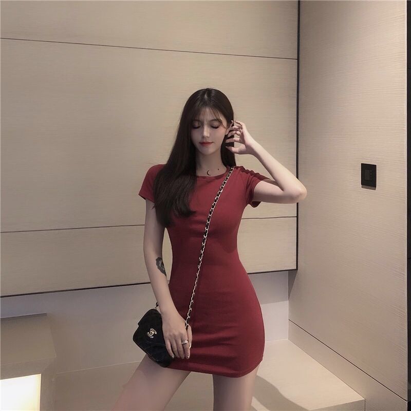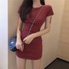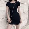 Vestido estilo Yujie 2024 nuevo verano delgado fondo falda de cadera cuello redondo manga corta elegante falda sexy moda