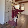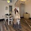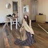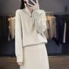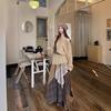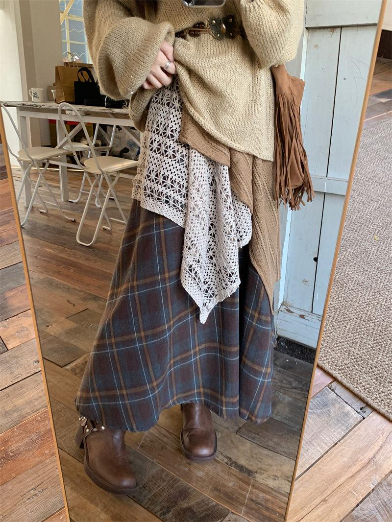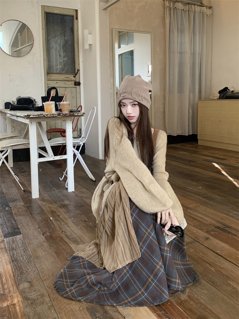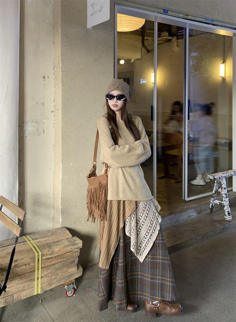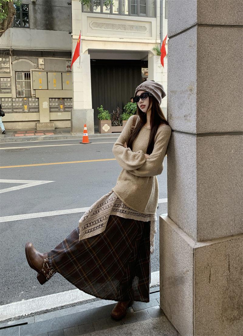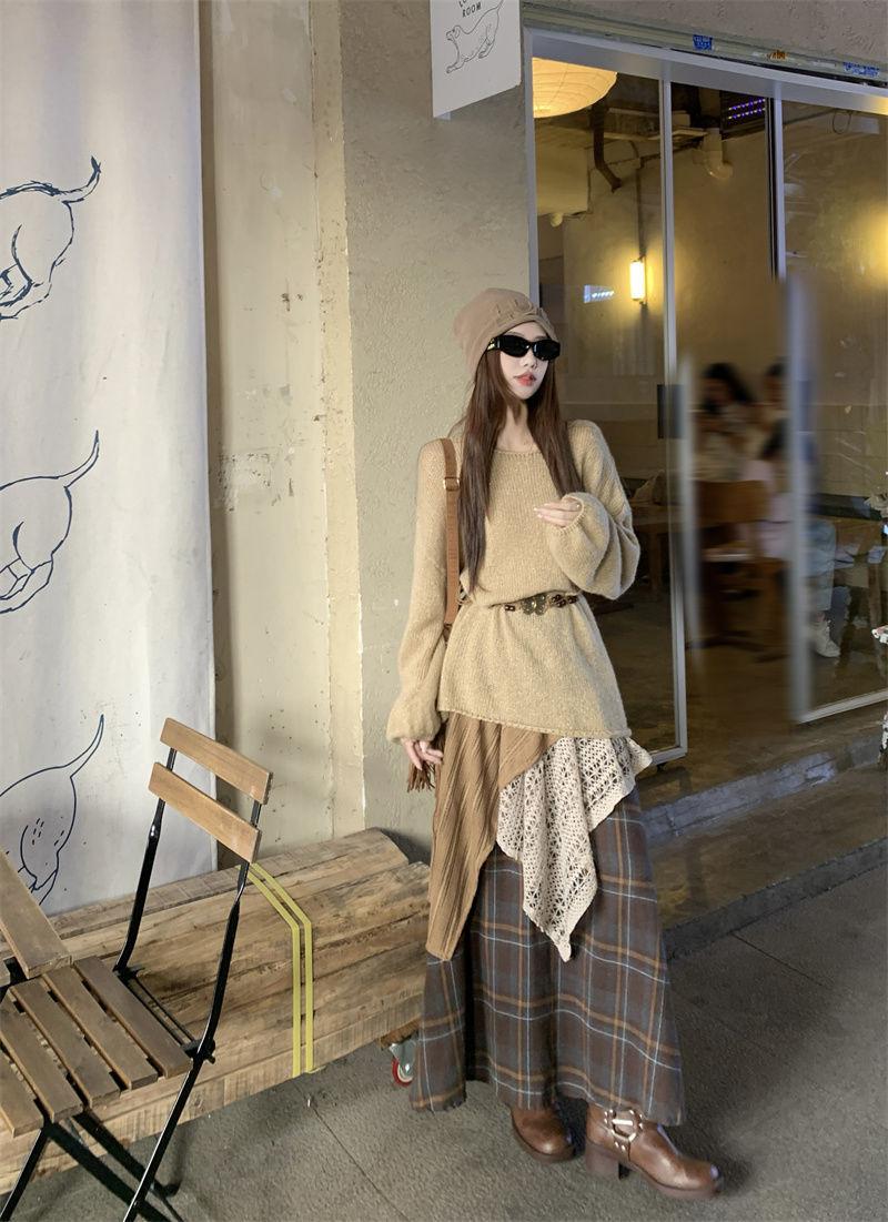 Traje de Moda Estilo Lazy Tejido de Punto Suéter Suéter Irregular Estampado a Cuadros Costuras Falda Conjunto de Dos Piezas para Mujer Primavera Temprana