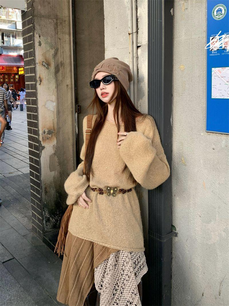 Sweater [selected by flowers for good quality], Skirt [hua duoduo selects good quality], Belt [hua duoduo sele...