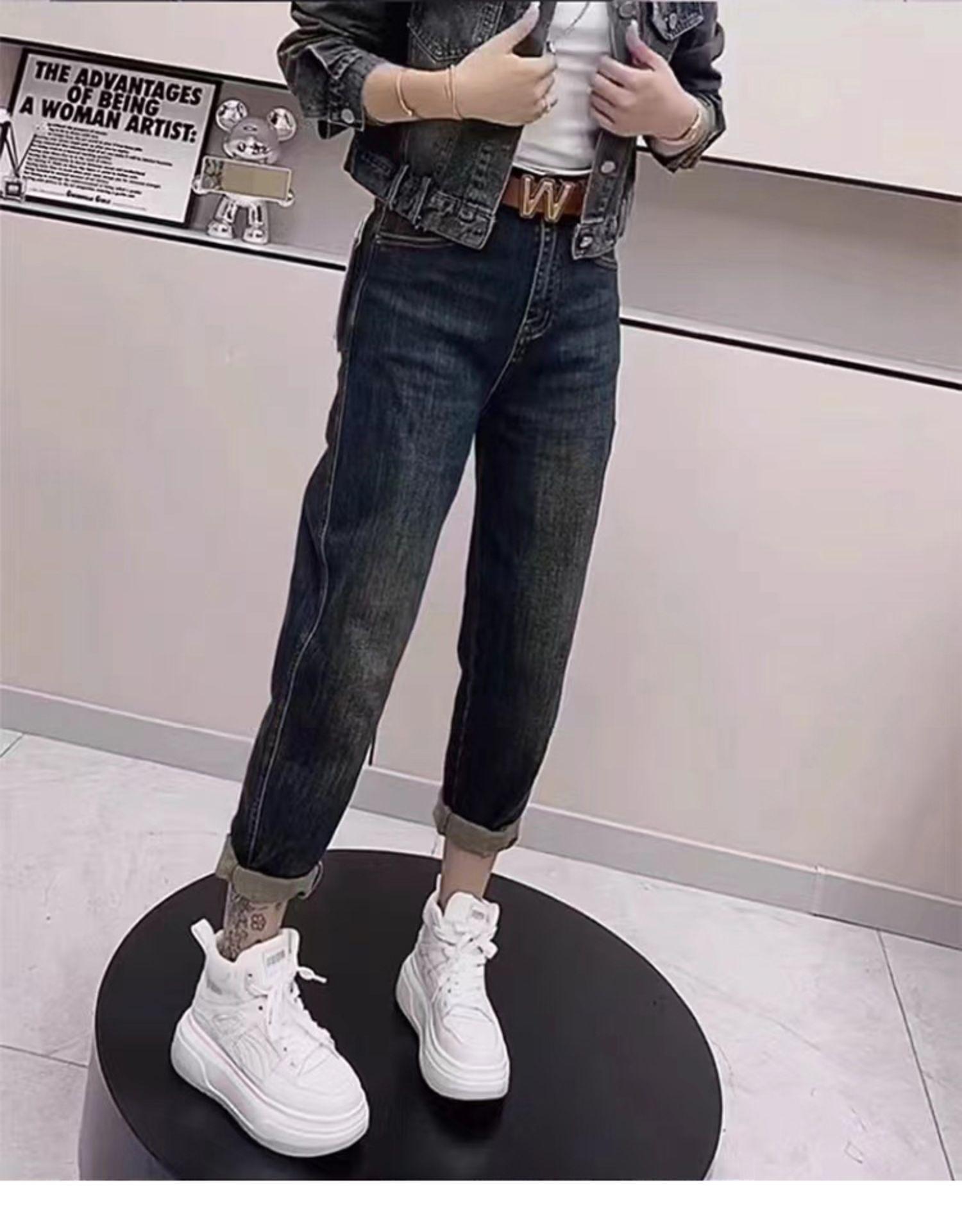 Chica gordita talla grande Jeans Harlan Mujer Otoño 2024 Nuevo Cintura Alta Adelgazantes Elásticos Pantalones Rectos