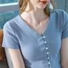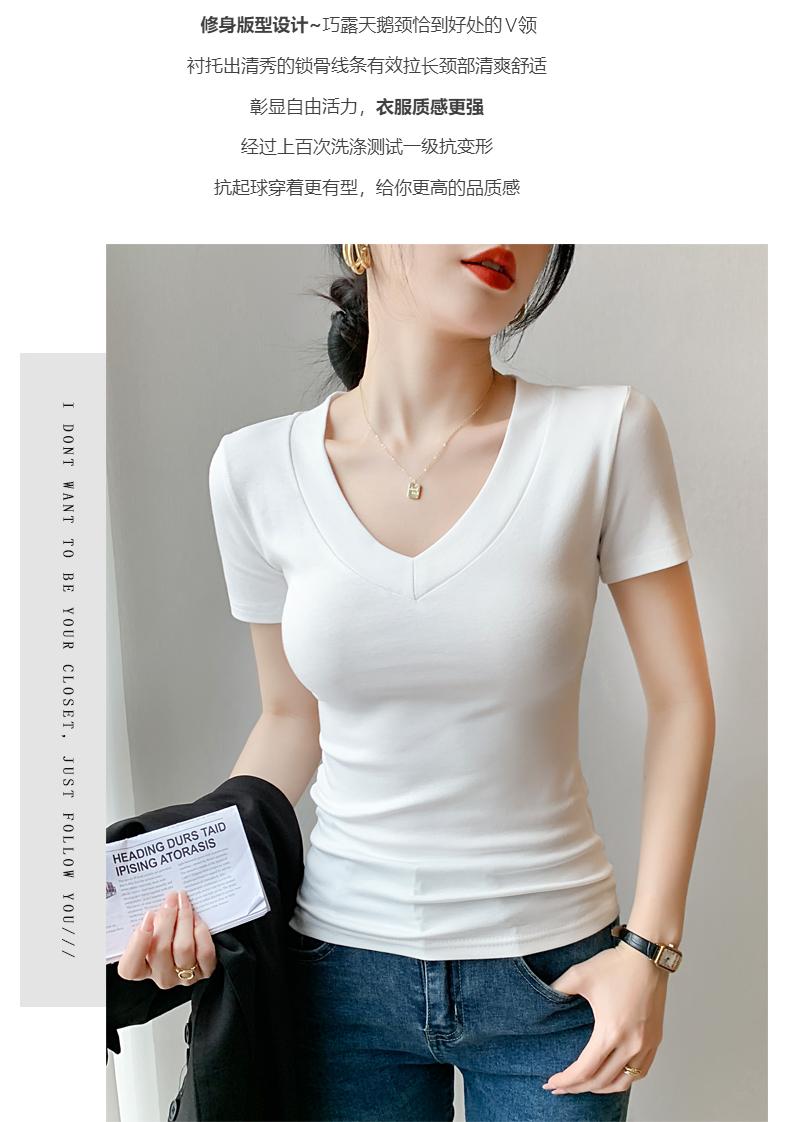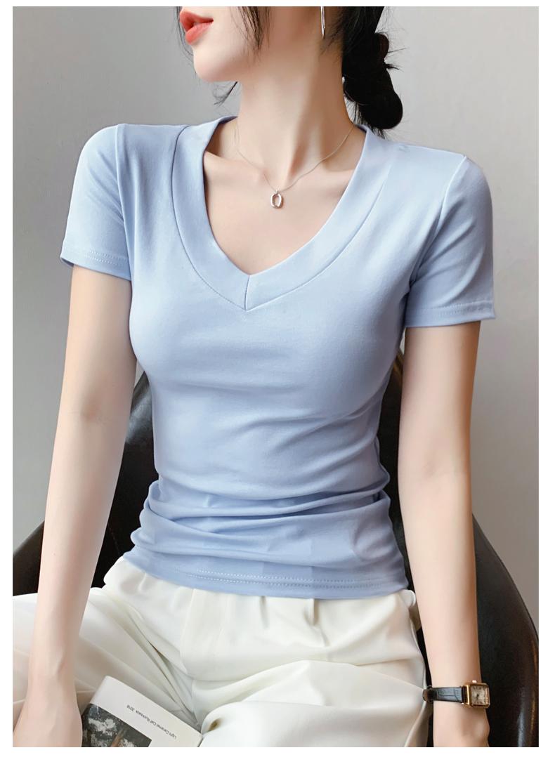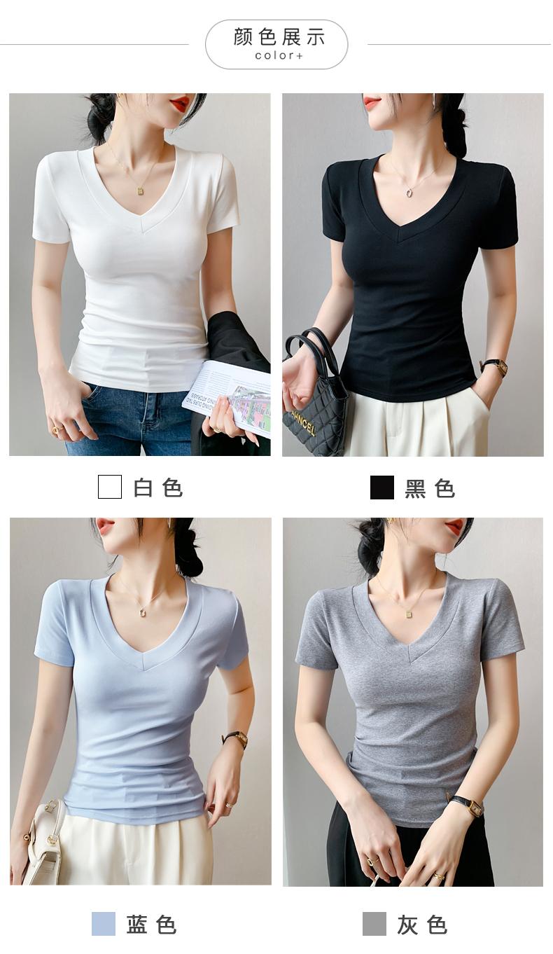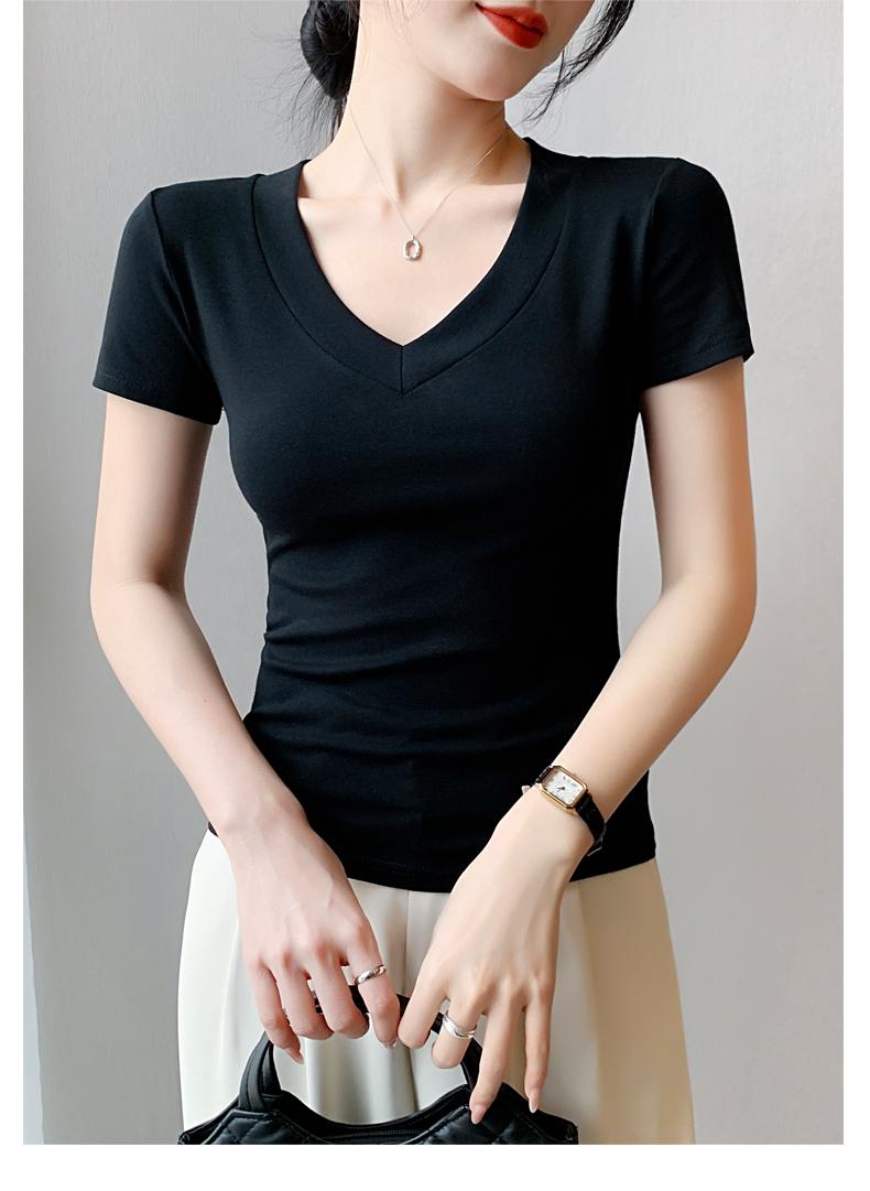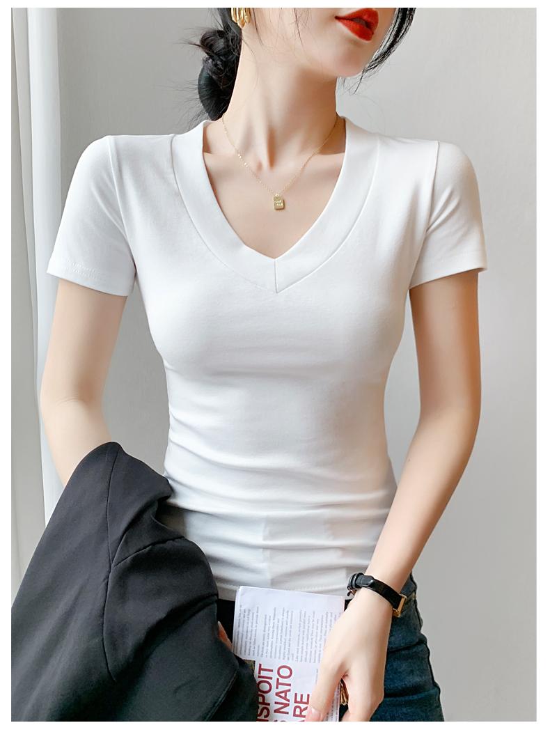Playera de Cuello en V para Mujer Manga Corta Verano 2025 Nuevo Diseño Hombro Derecho Cintura Entallada Look Adelgazante Versátil Top de Camiseta