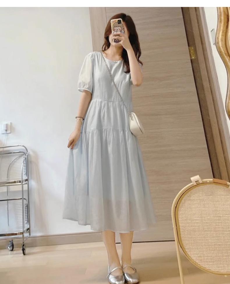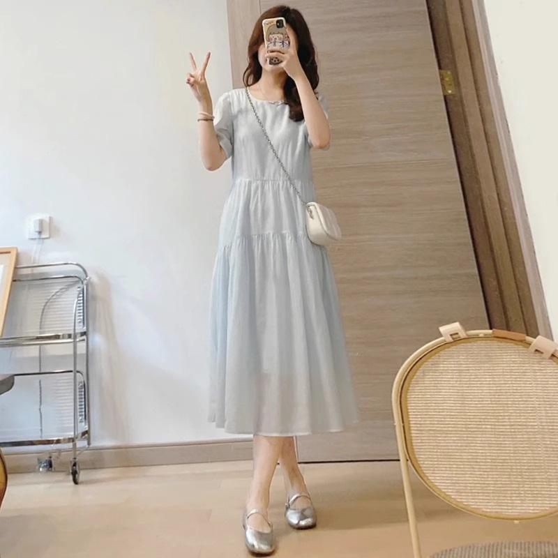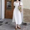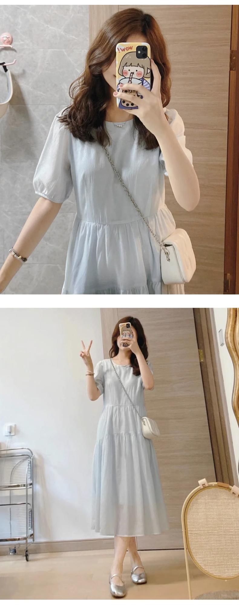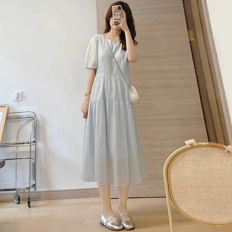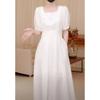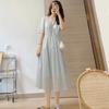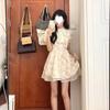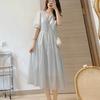 Vestido Azul de Alta Calidad Verano Nuevo Estilo Suave Hora del Té Manga Farol Francesa Cintura Vestido Elegante de Hada