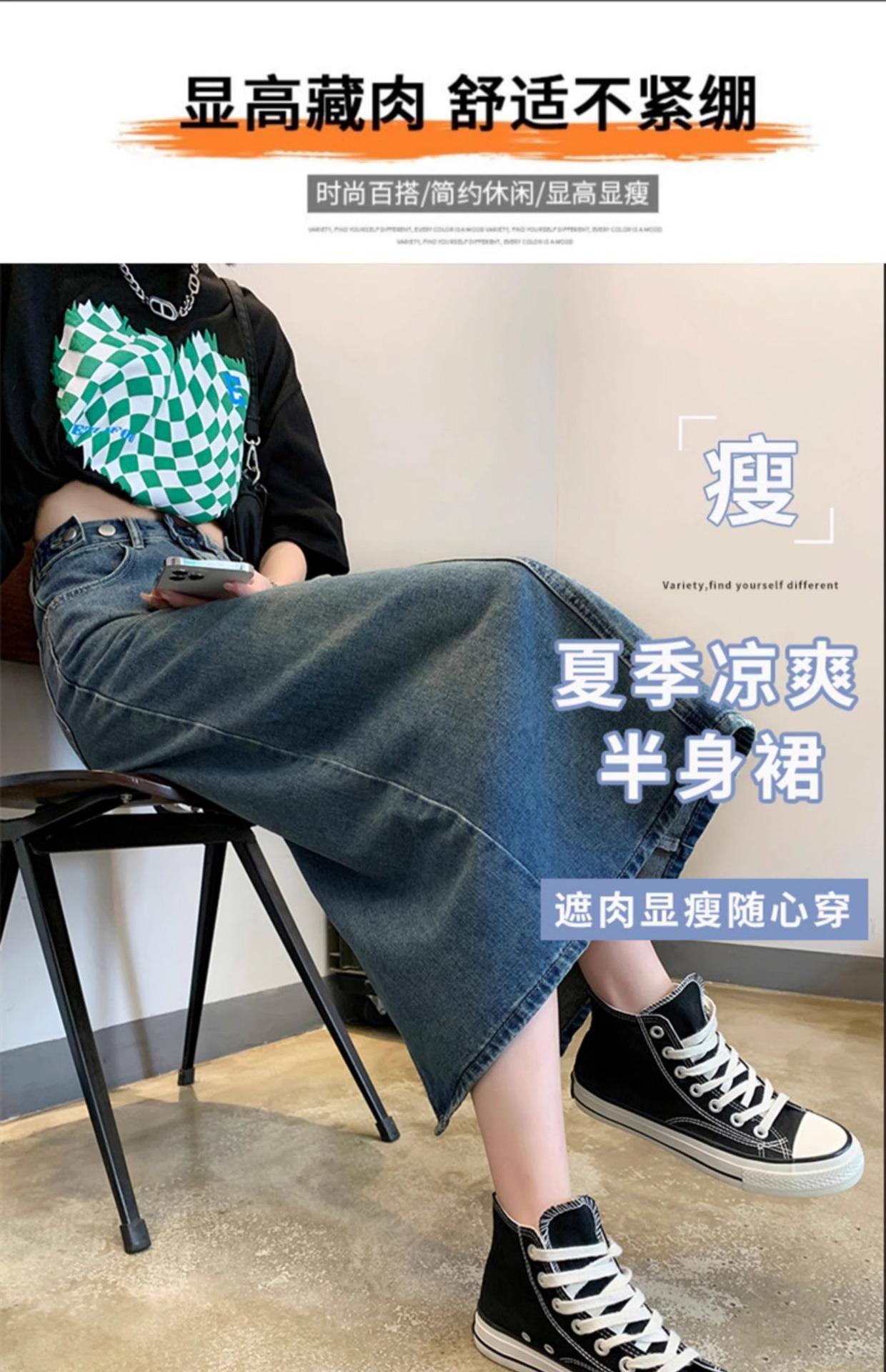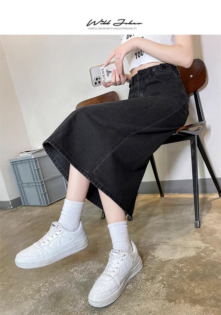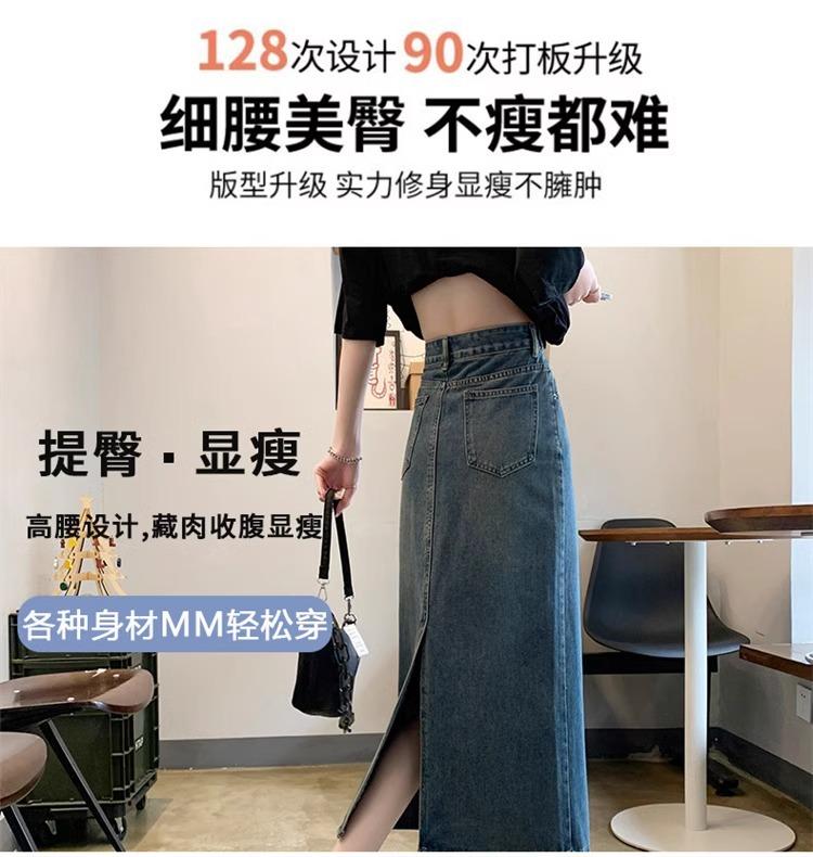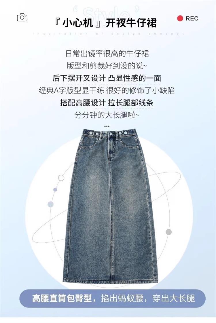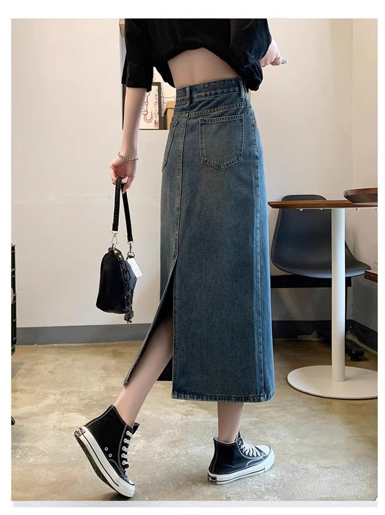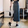 Falda Vaquera Azul Vintage con Abertura para Mujer 2024 Nueva Cintura Alta Cubre Caderas Adelgazante Media Longitud Línea A Falda de Cadera