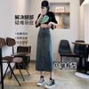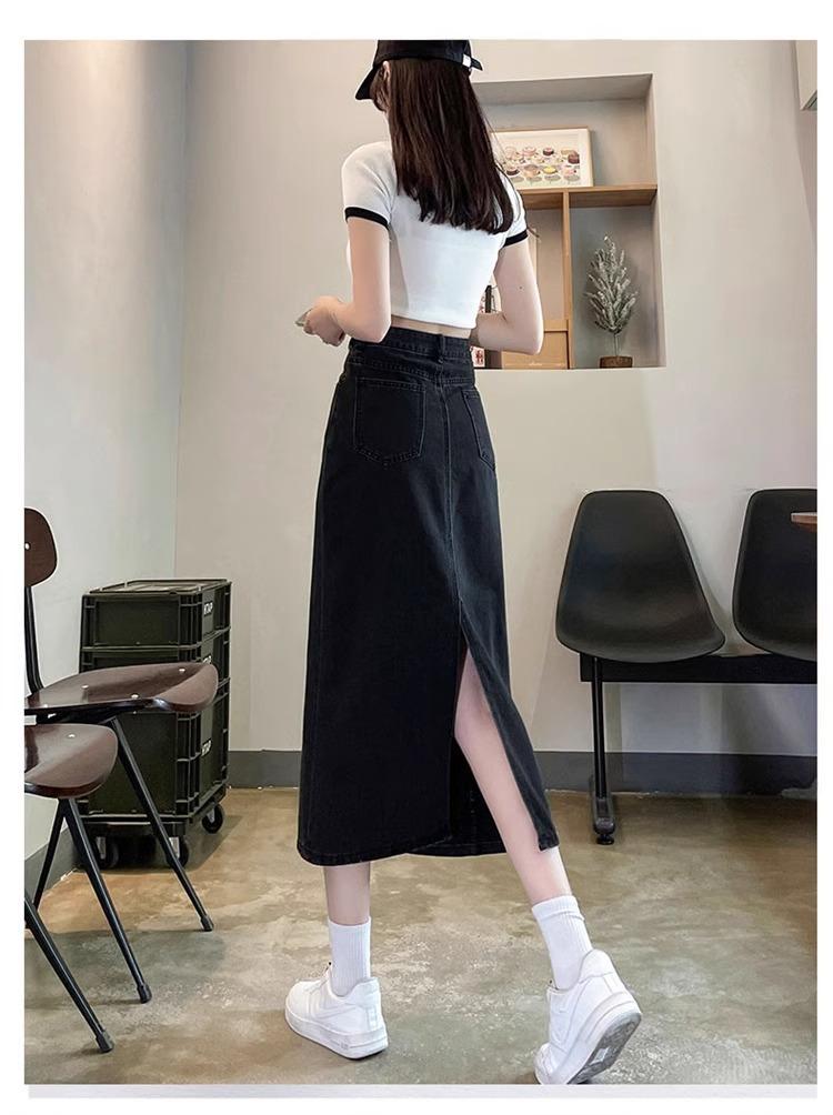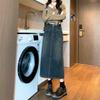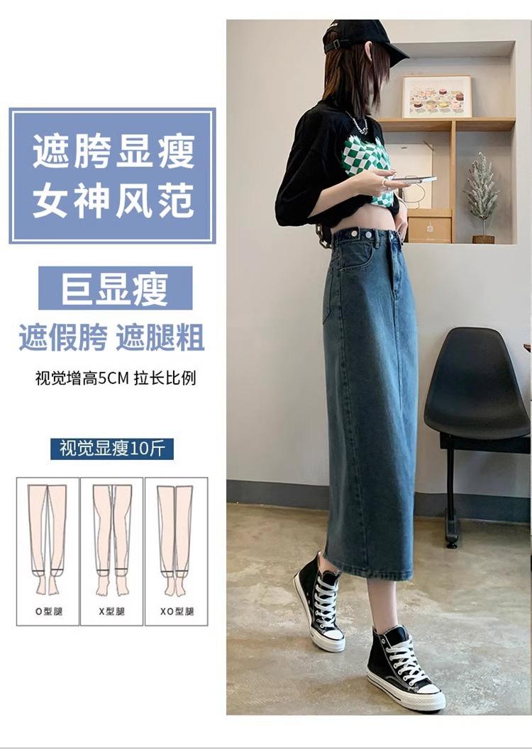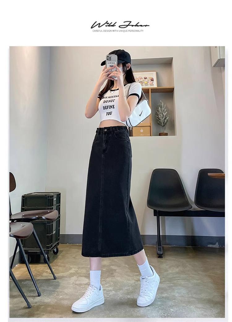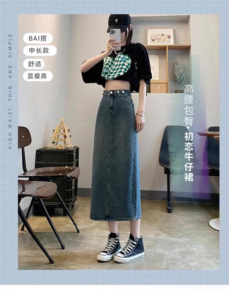 Falda Vaquera Azul Vintage con Abertura para Mujer 2024 Nueva Cintura Alta Cubre Caderas Adelgazante Media Longitud Línea A Falda de Cadera