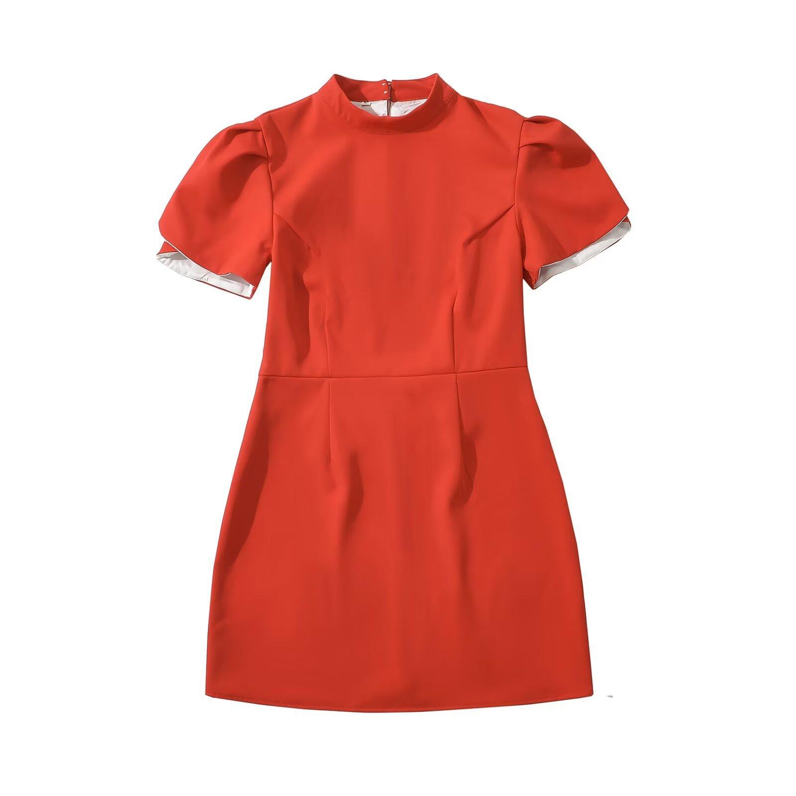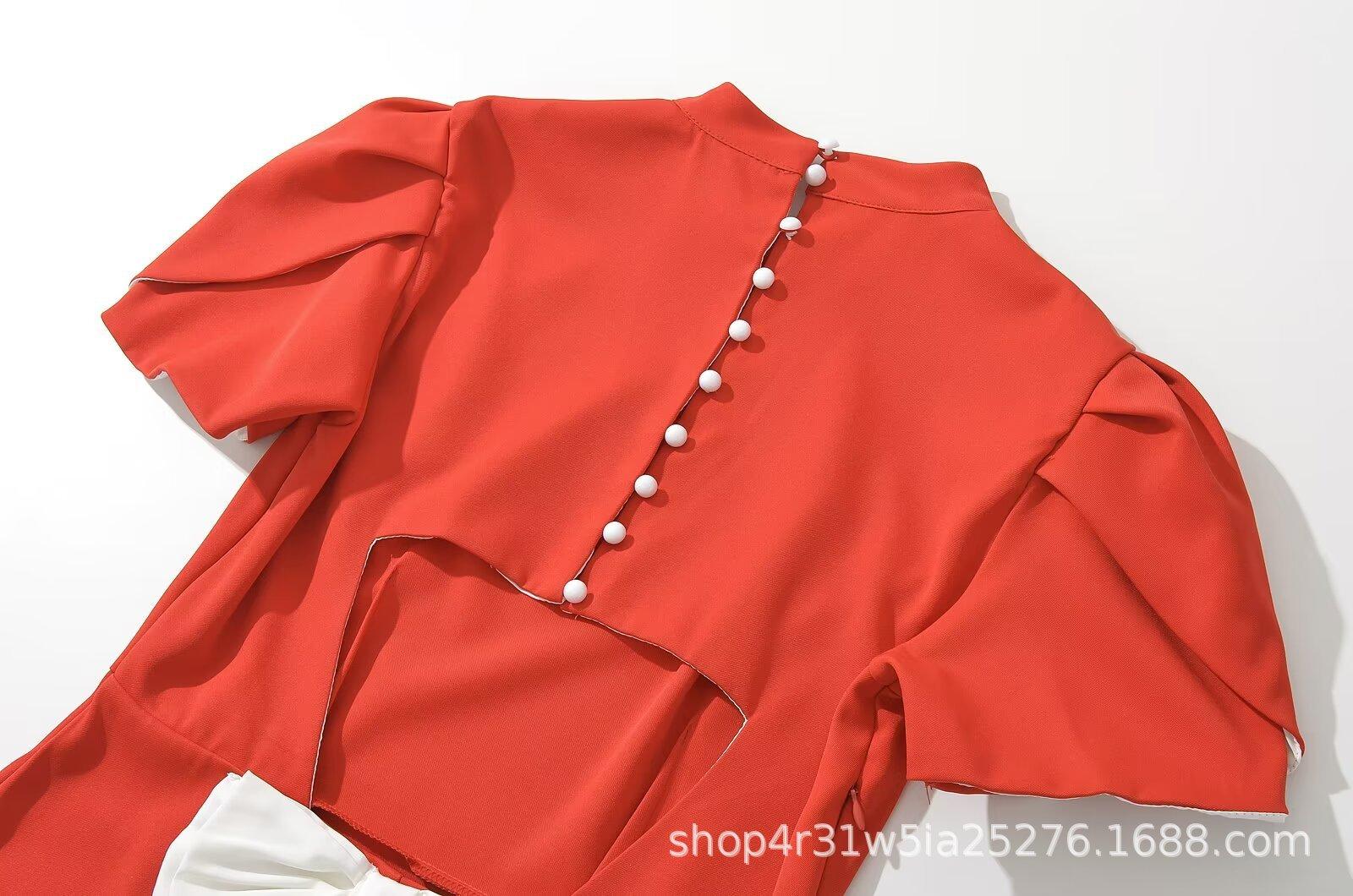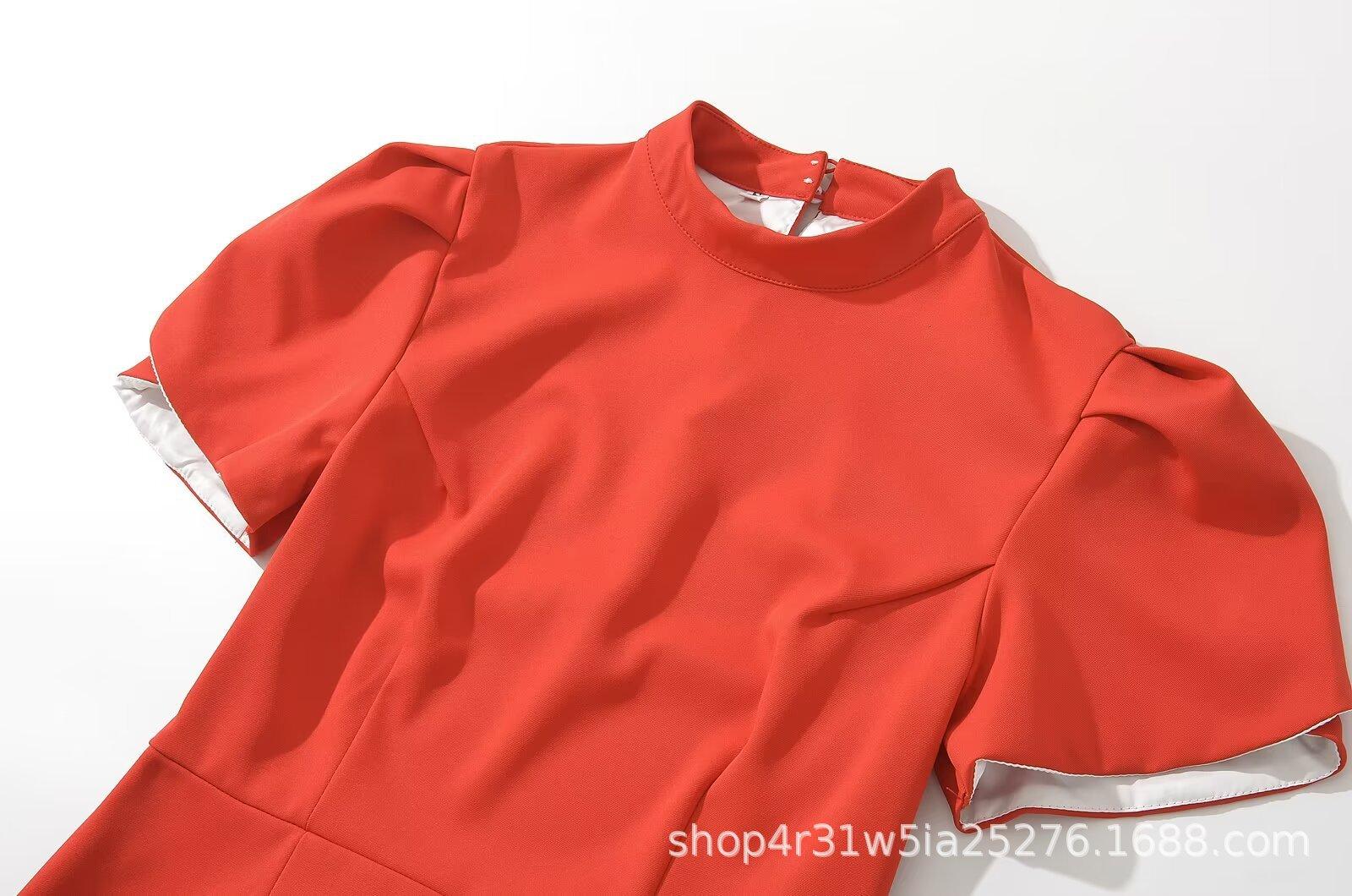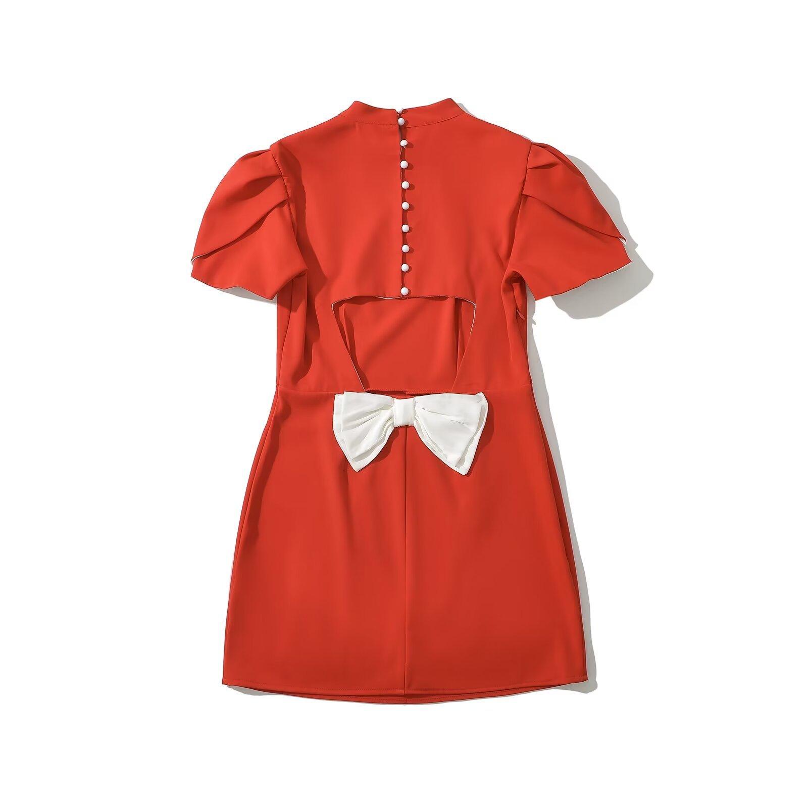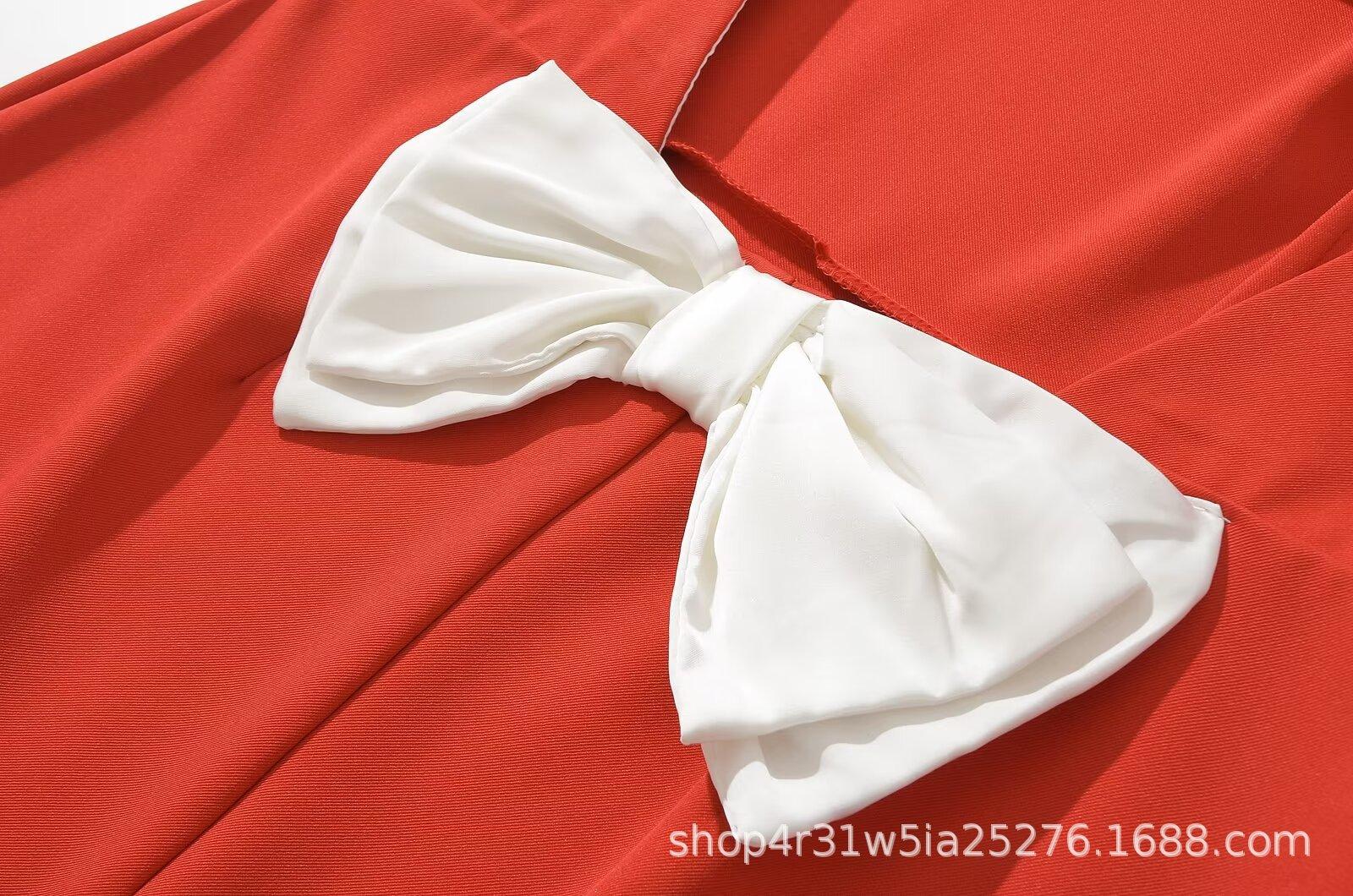 Estilo Europeo y Americano Nuevo 2024 Moda Vestido Adelgazante de Manga Corta Decorado con Lazo al por Mayor