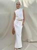 Conjunto de Dos Piezas Blanco Casual Simple Transfronterizo Europeo y Americano con Falda Larga para Mujer Verano 2026 Amazon Conjunto de Falda de Algodón y Lino