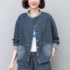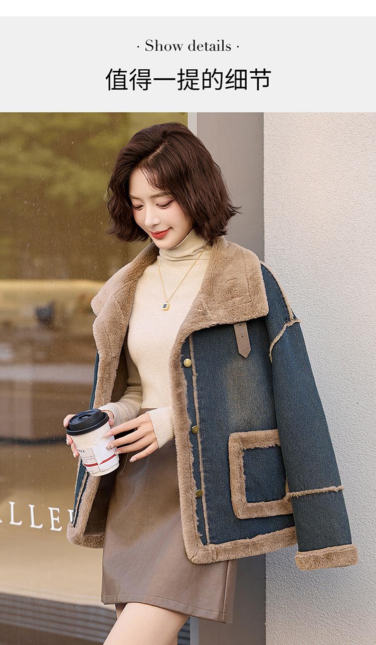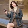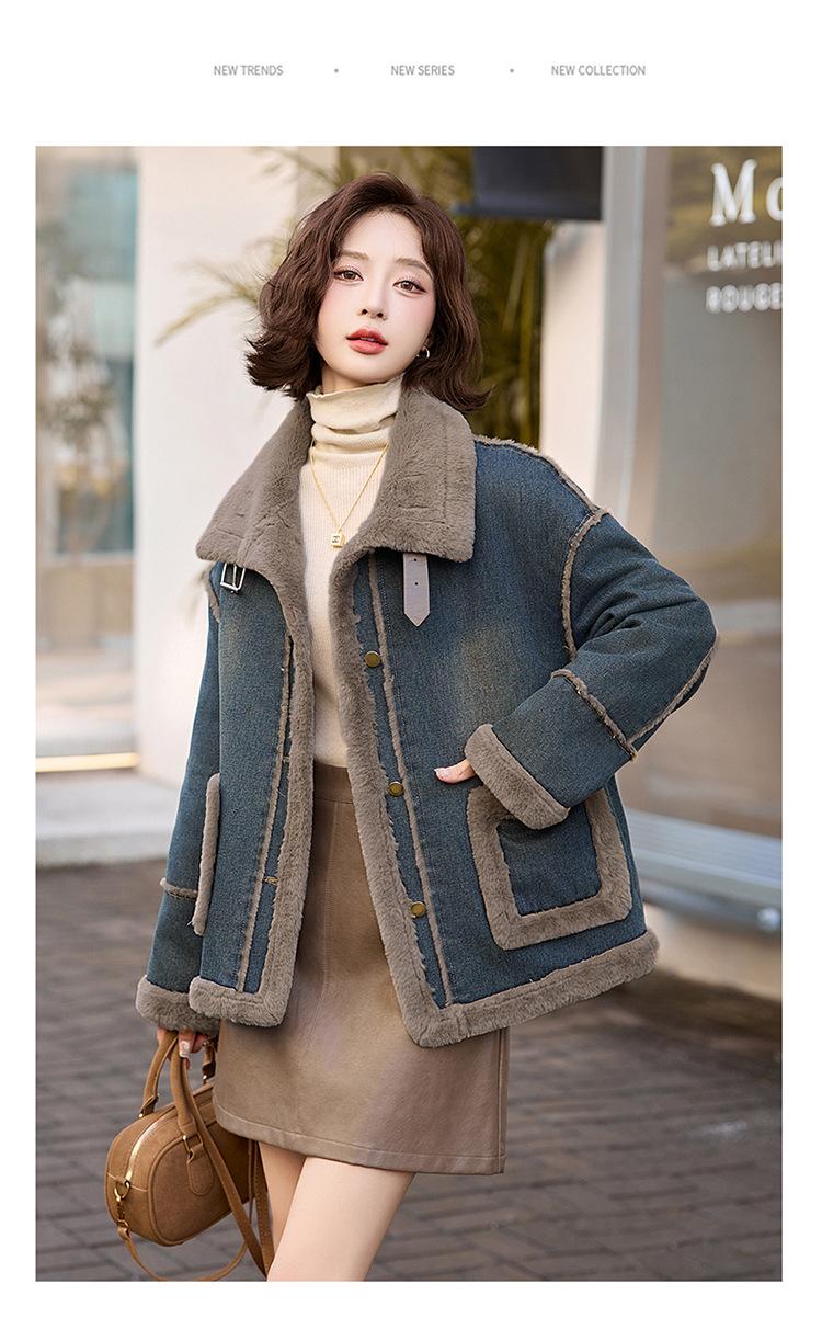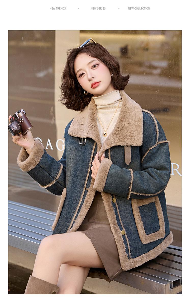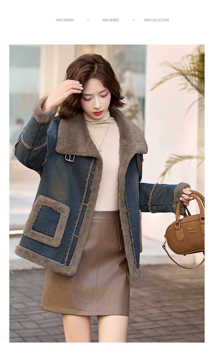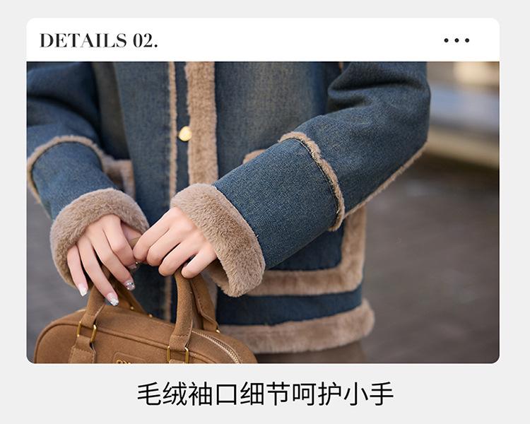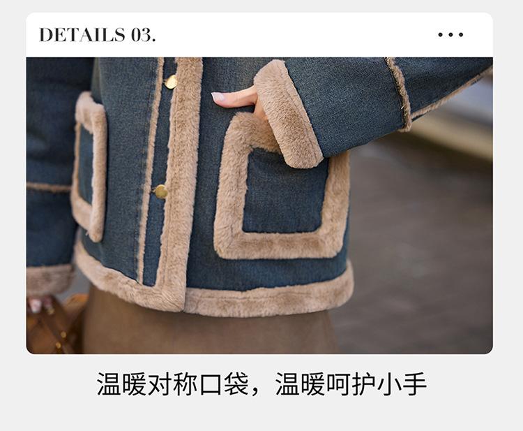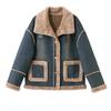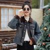 Moda Invierno 2025 Casual Terciopelo Denim Tops Temperamento Solapa Bordado Denim Top Tops