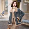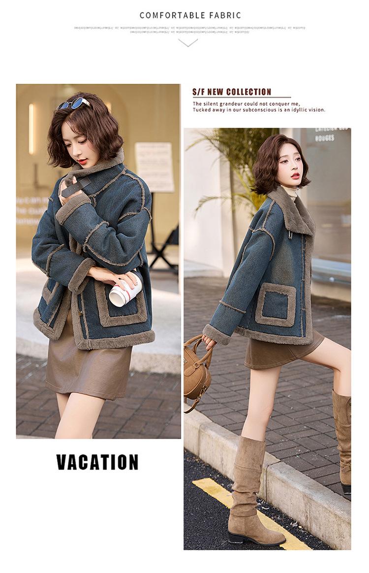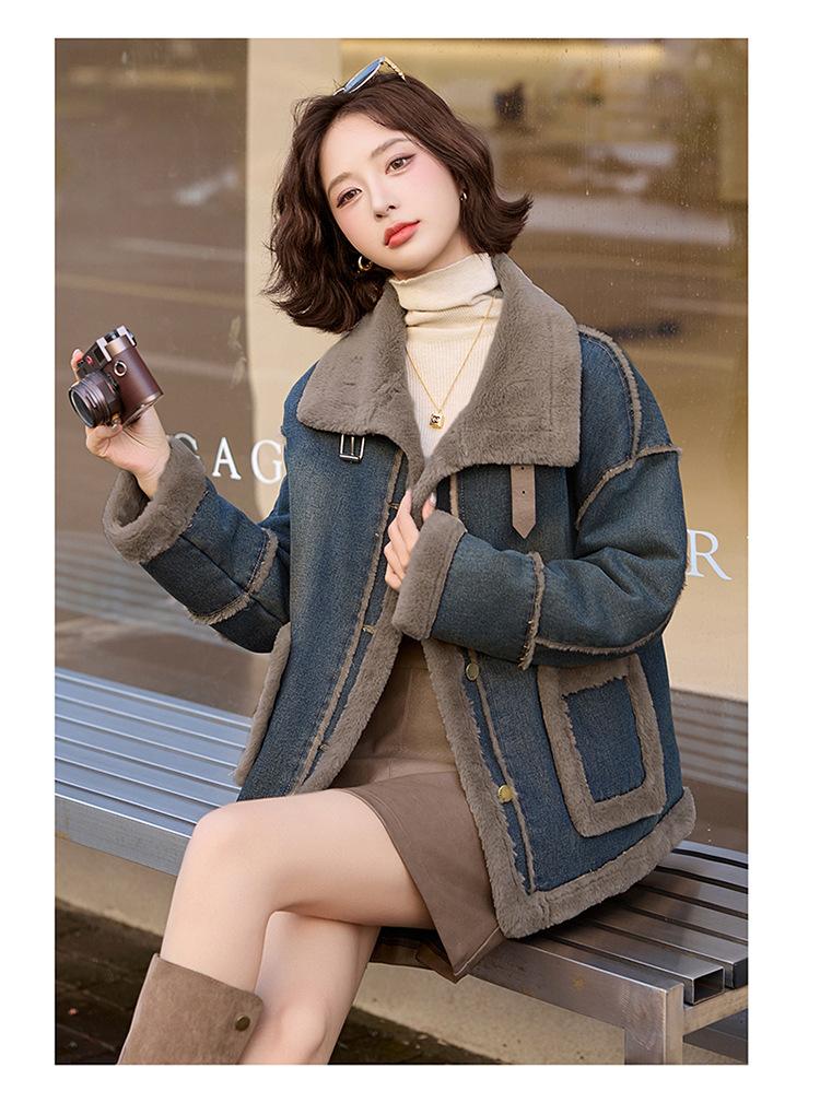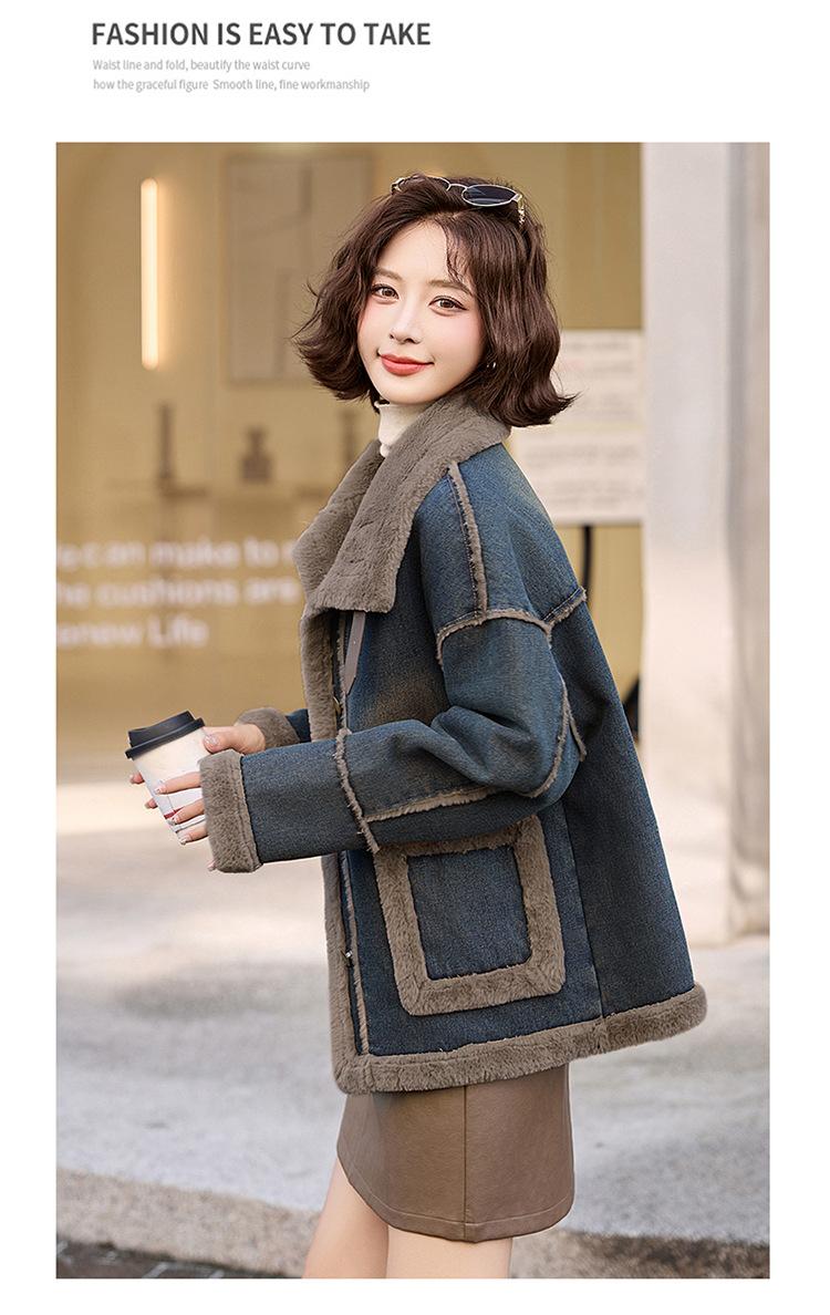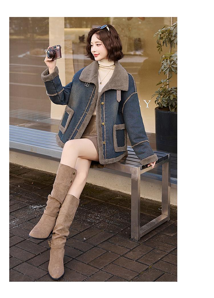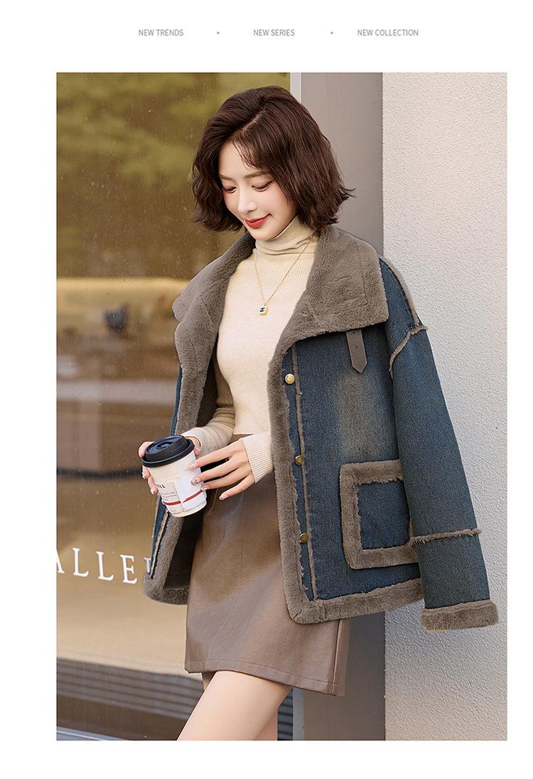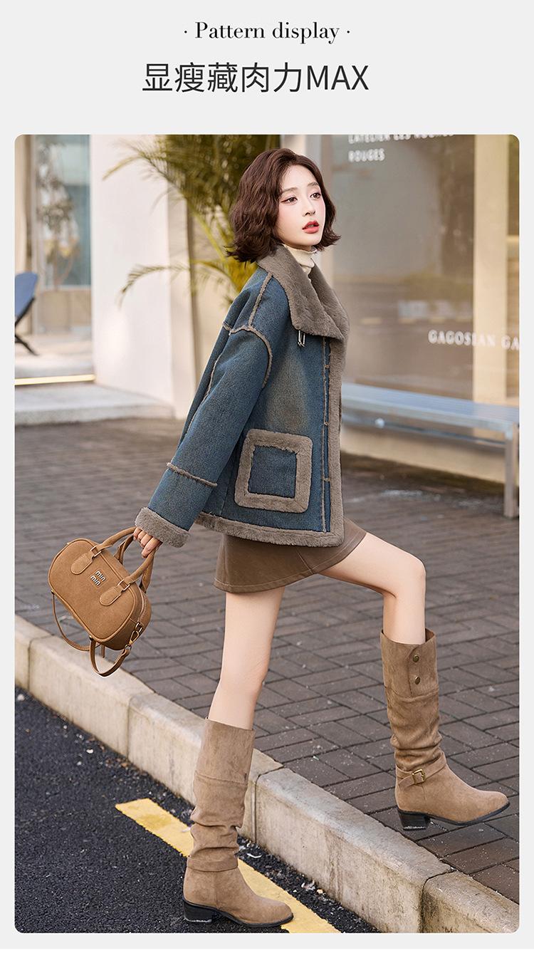 Moda Invierno 2025 Casual Terciopelo Denim Tops Temperamento Solapa Bordado Denim Top Tops