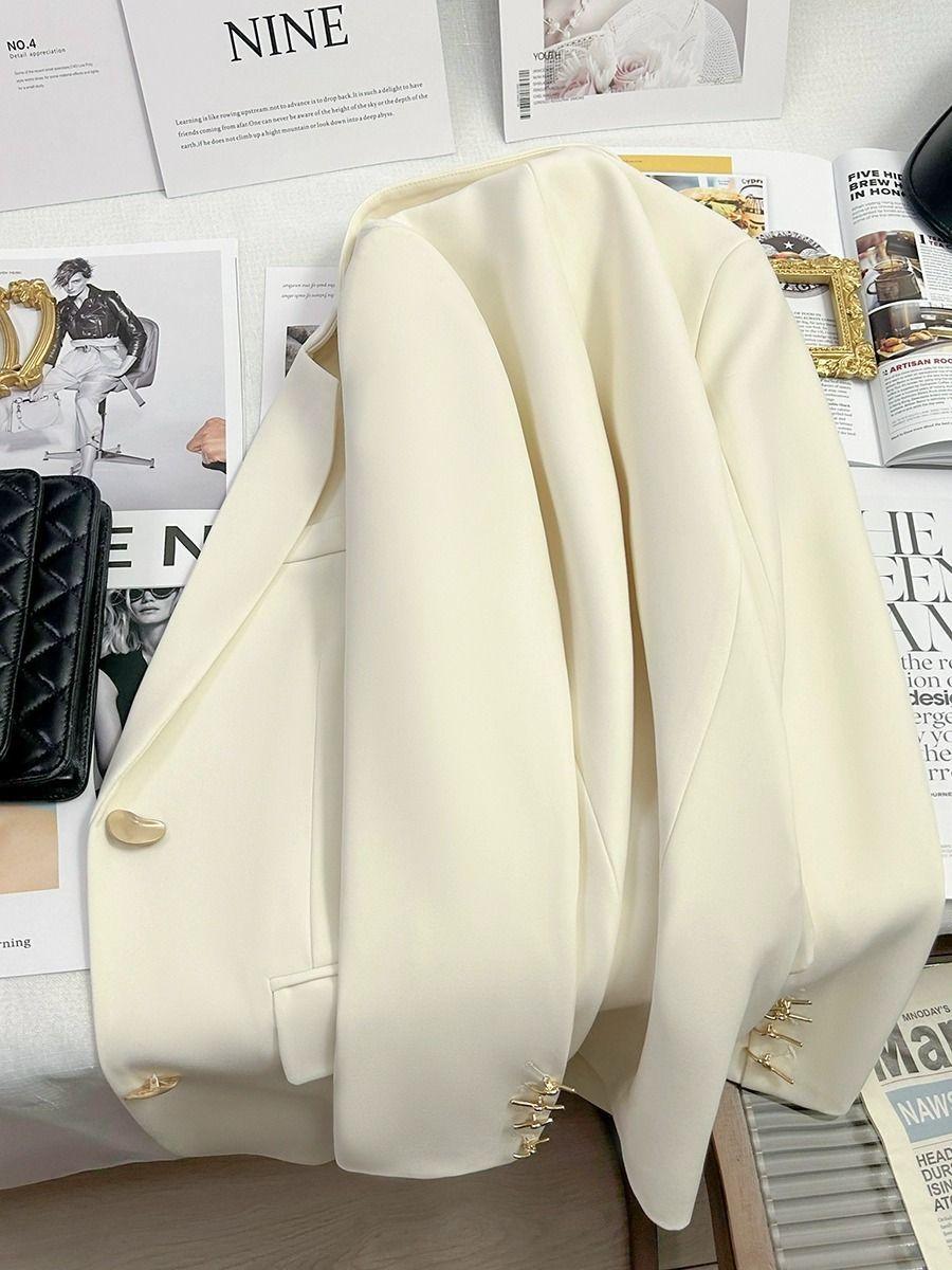 Traje Chaqueta Polvo Durazno Blanco Mujer 2025 Primavera Nuevo Pequeño Alto Sentido Estilo Diosa Casual Elegante Traje Pequeño