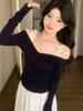 Camiseta de Manga Larga con Hombro de Encaje Chic Estilo Francés Otoño Temprano Nuevo Sentido del Diseño Top Nicho Mujeres Ins