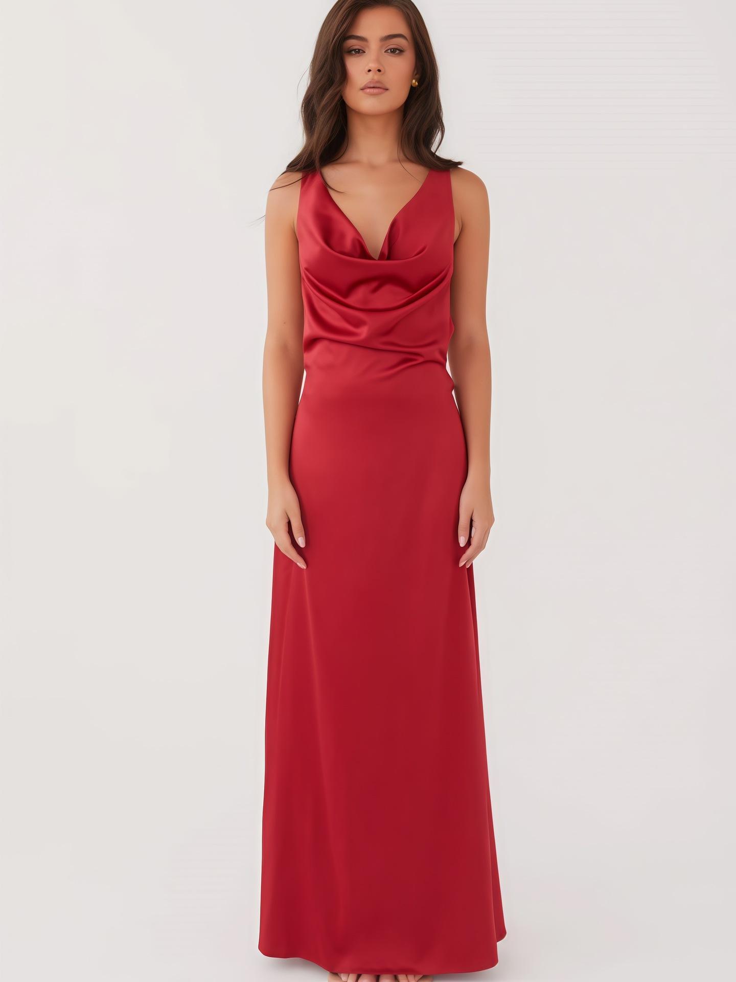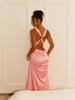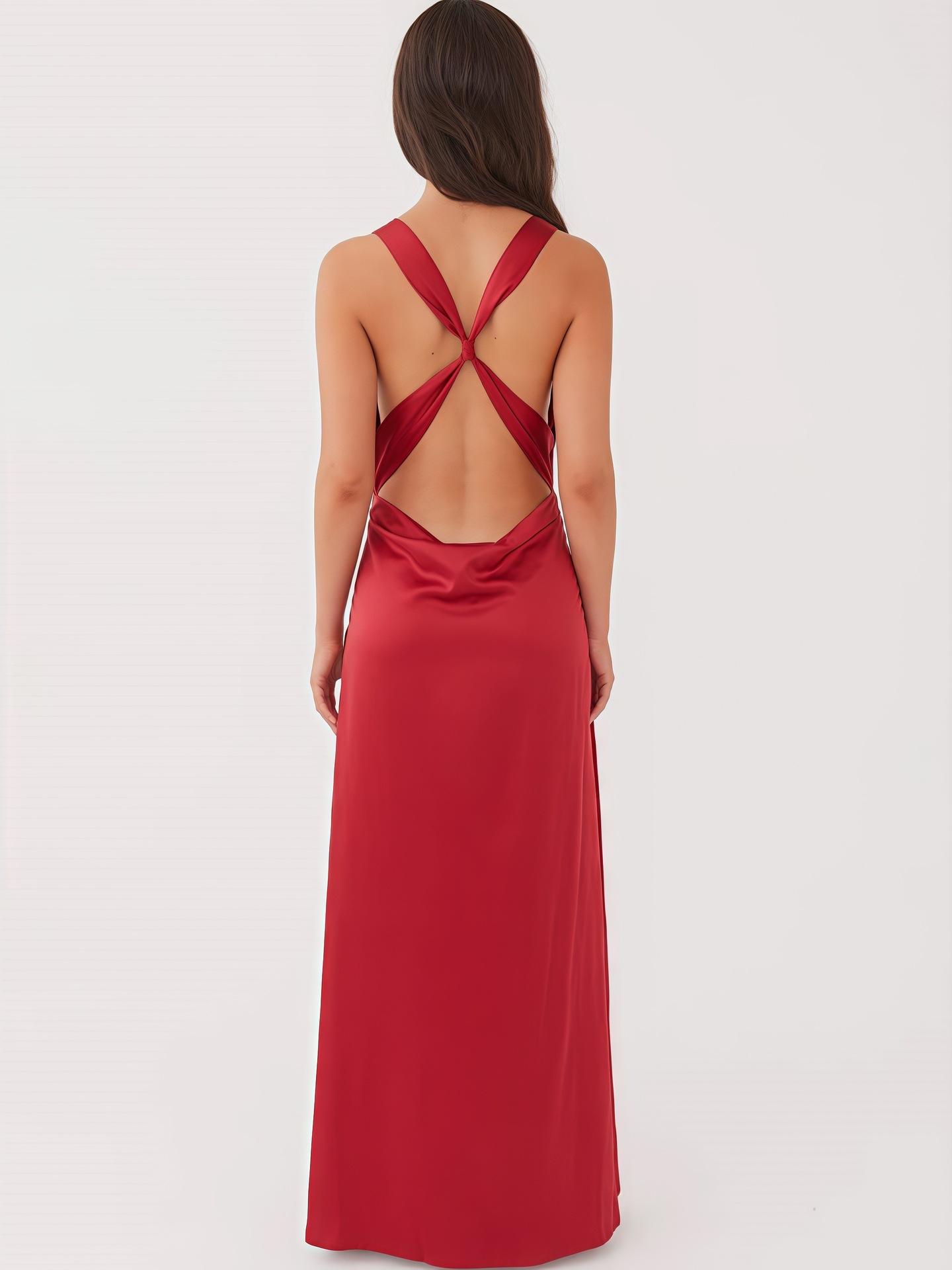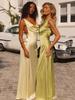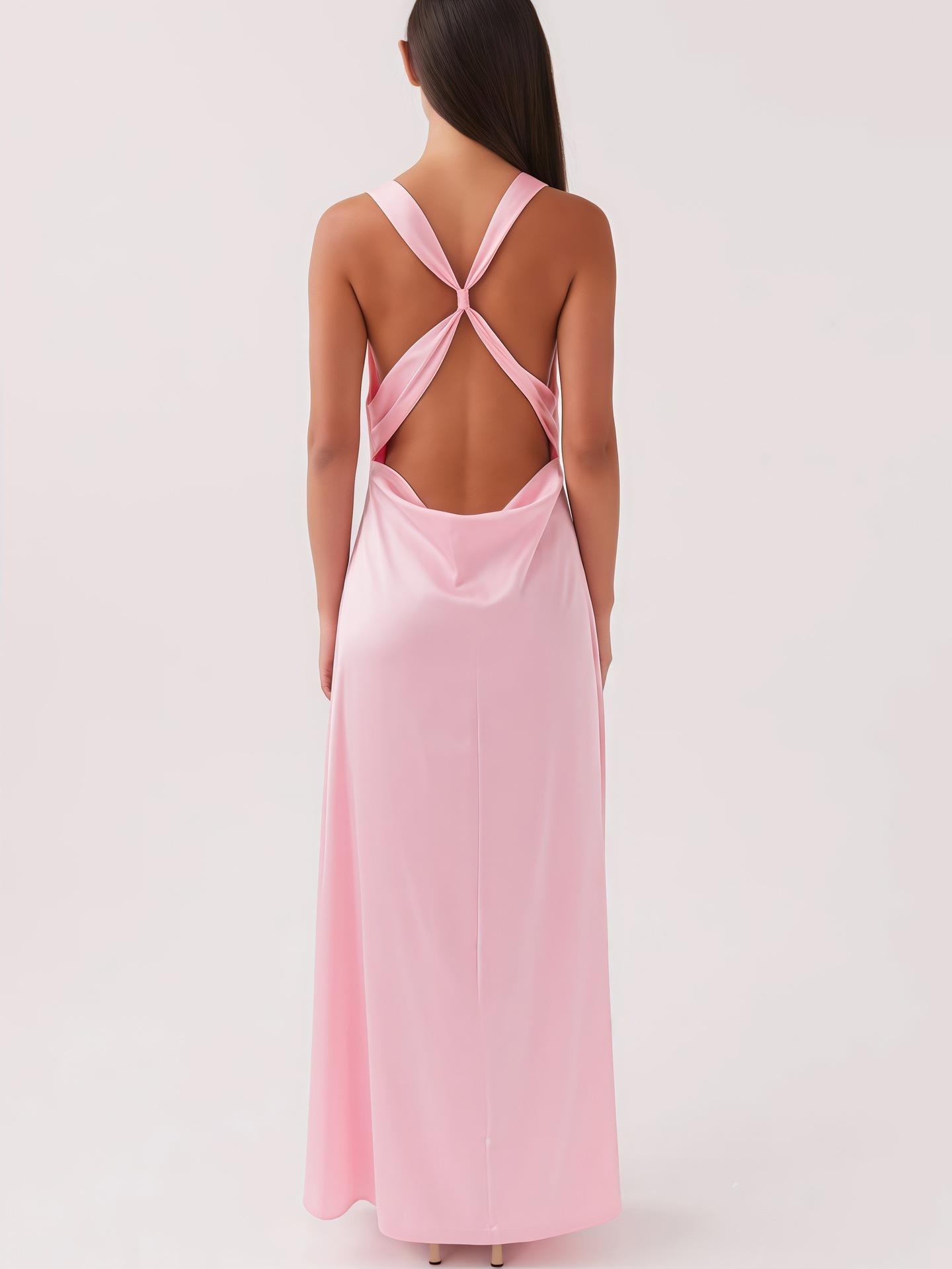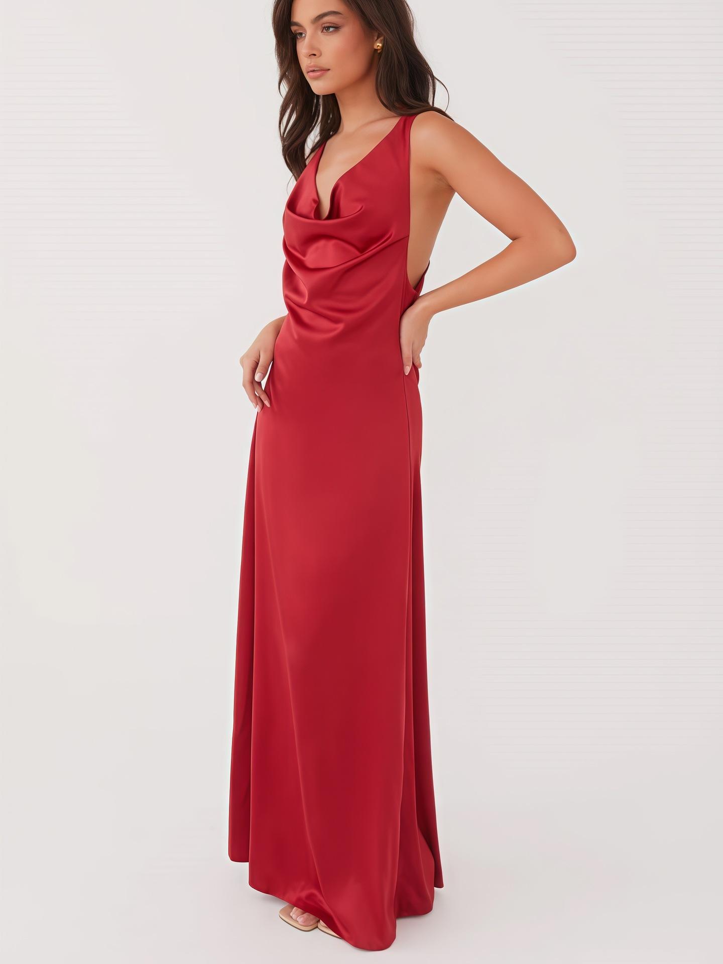 Europeo y Americano 2025 Nuevo Color Puro Sexy Cuello Oscilante Satén Brillante Fiesta Fiesta Vestido de Tirantes Falda Larga