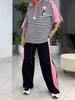 2025 Europa y Estados Unidos comercio exterior transfronterizo nuevo top holgado de manga corta con costuras Joker, traje de pantalones holgados a rayas, ropa de mujer